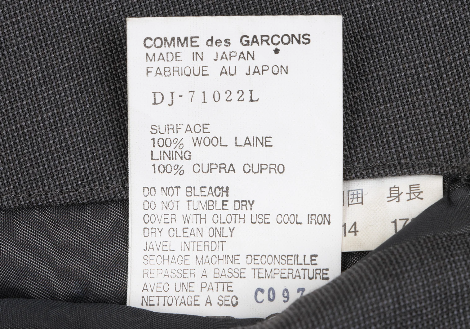 100% Wool Lining 100% Cupra |