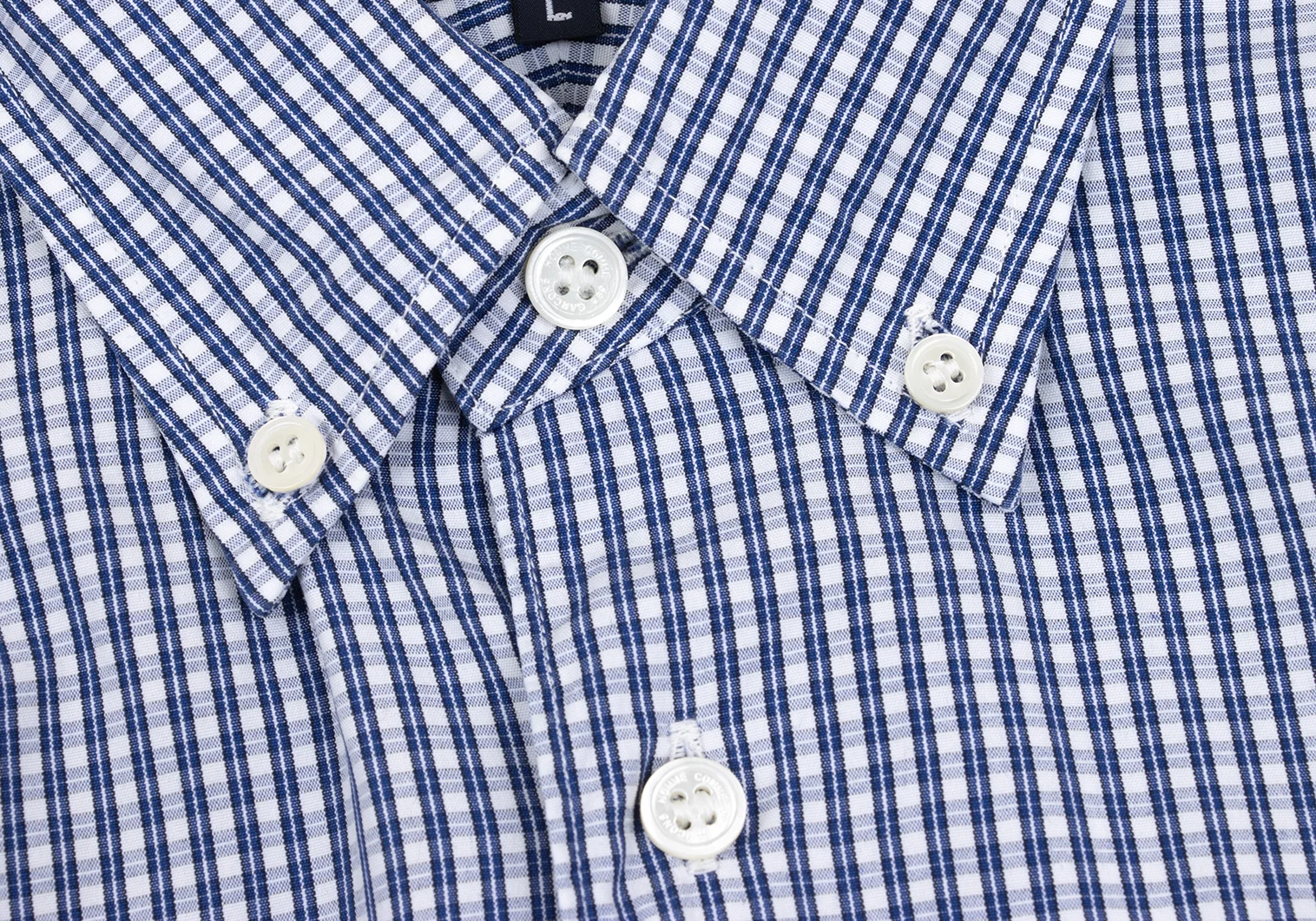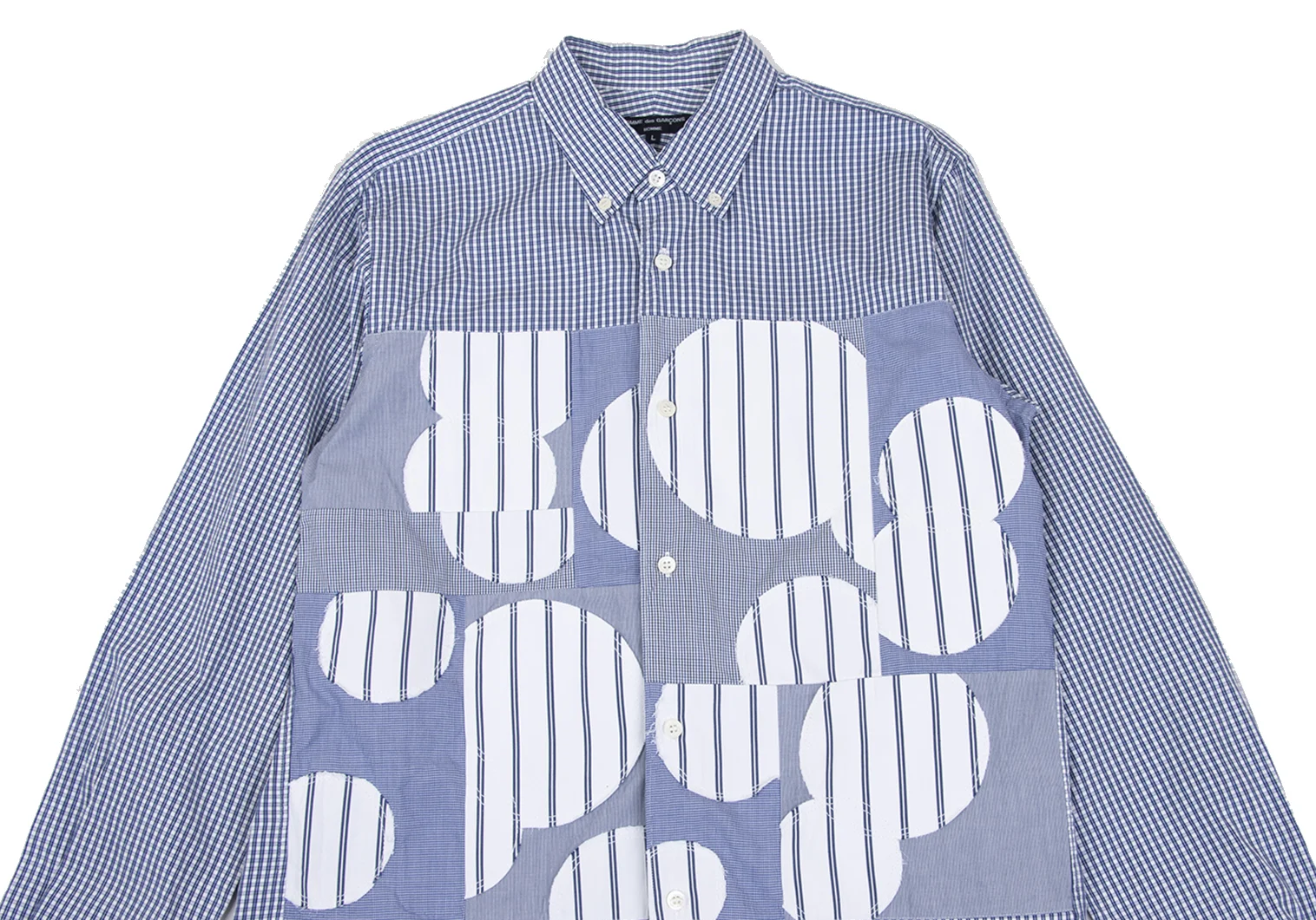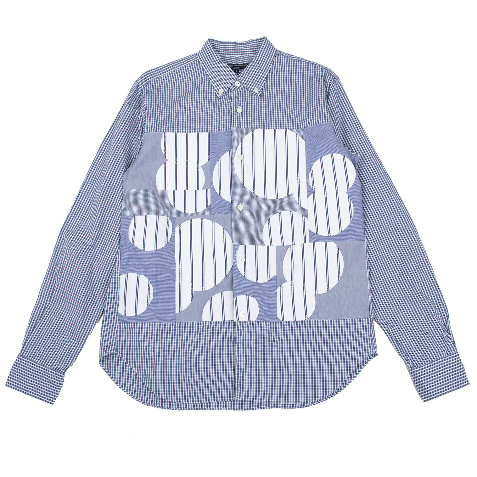 COMME des GARCONS HOMME Front Dot Patch Check Long-sleeve Button Down Shirt Blue,White L