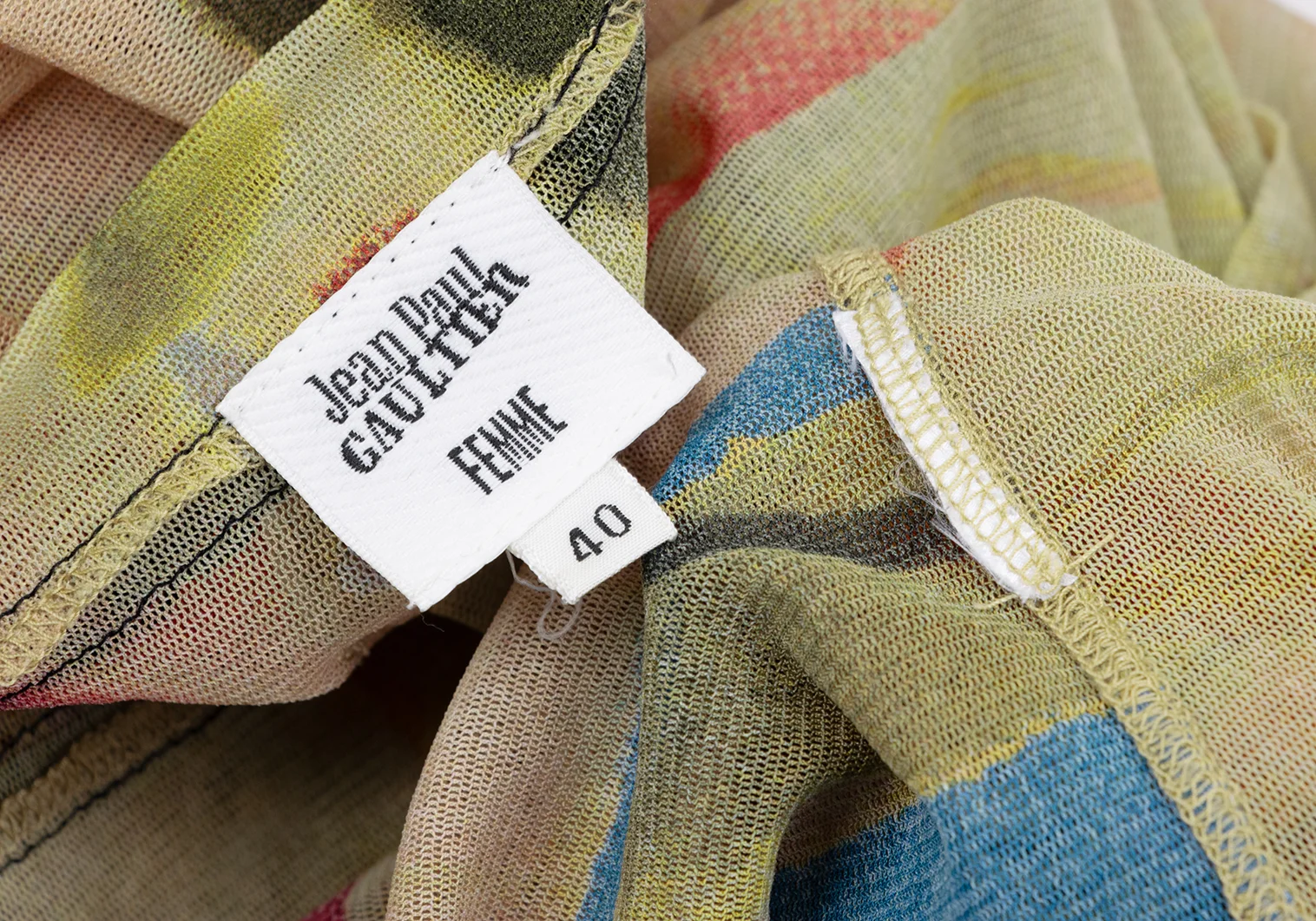 Jean Paul GAULTIER FEMME Floral Watercolor Printed Mesh Sleeveless Tunic Light Green 40