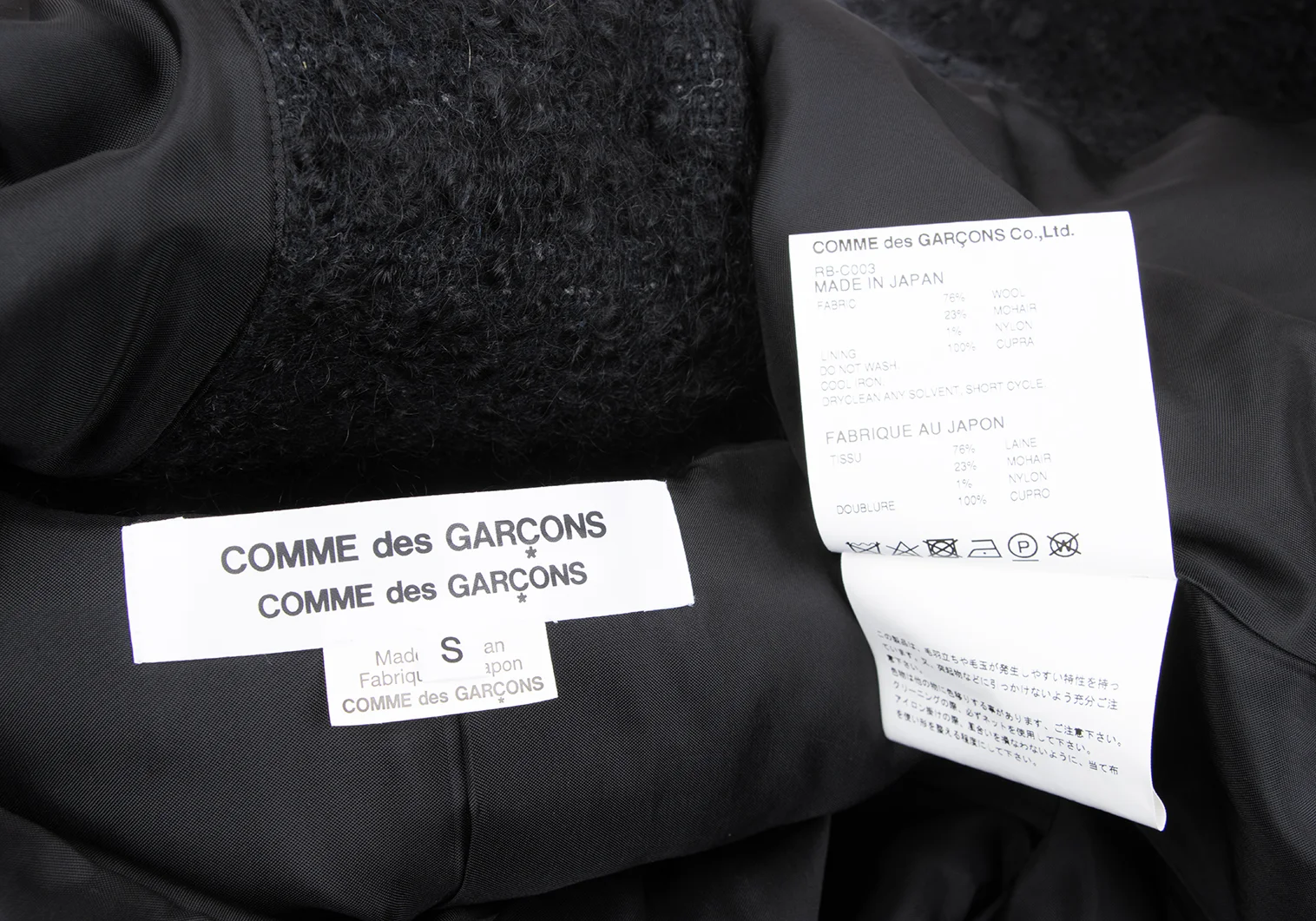 76% Wool 23% Mohair 1% Nylon Lining 100% Cupra |