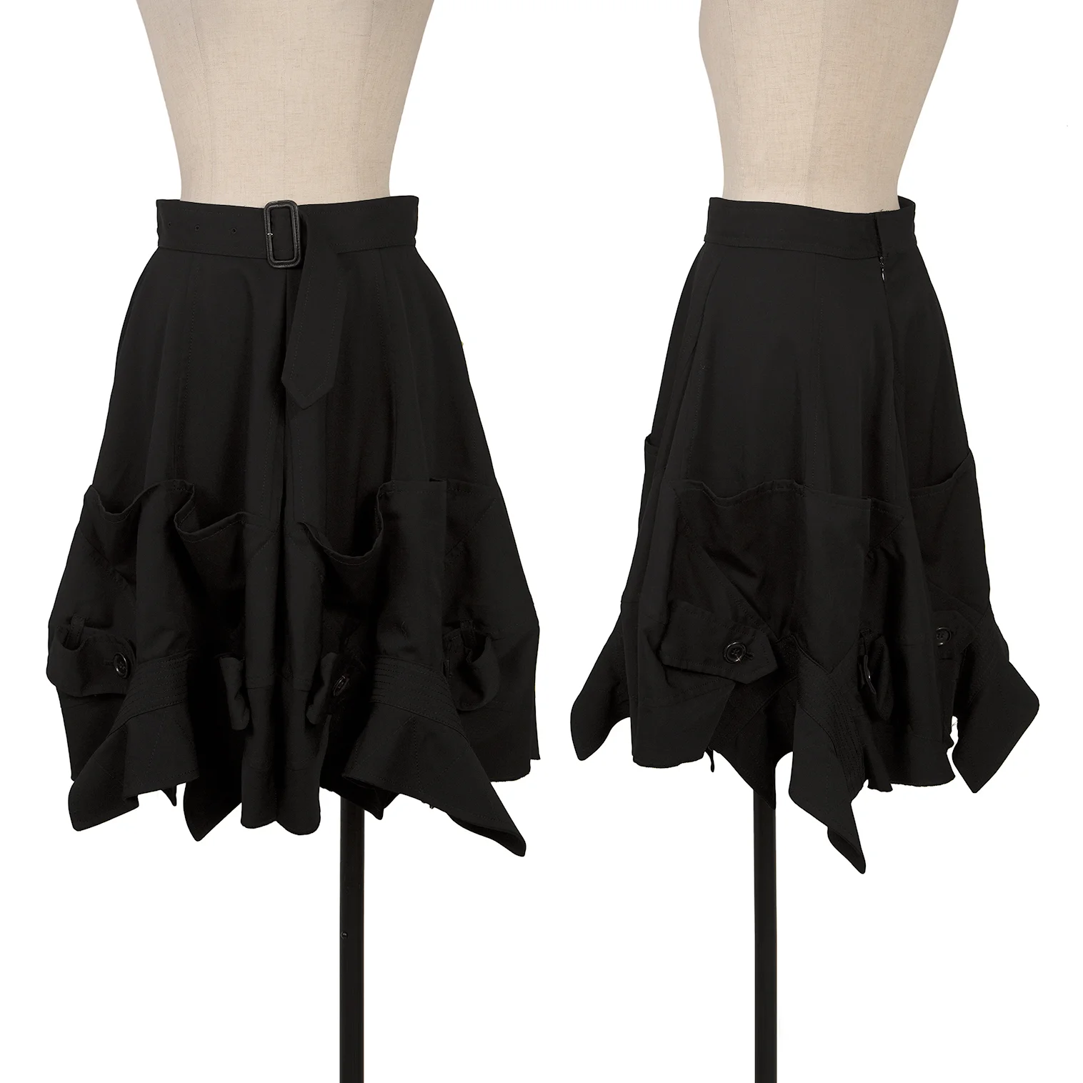 JUNYA WATANABE COMME des GARCONS Wool Gaba Trench Reconstructed Flared Skirt Black SS