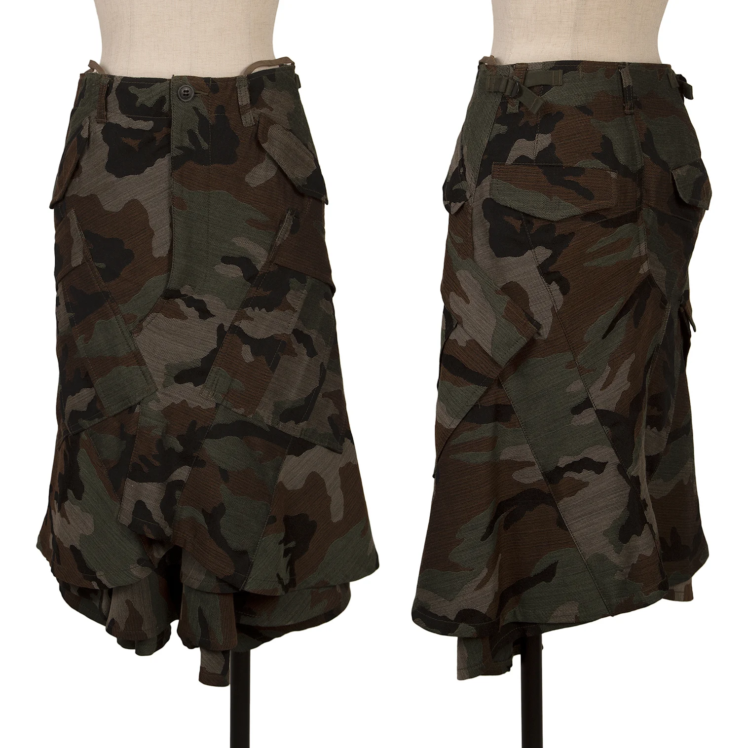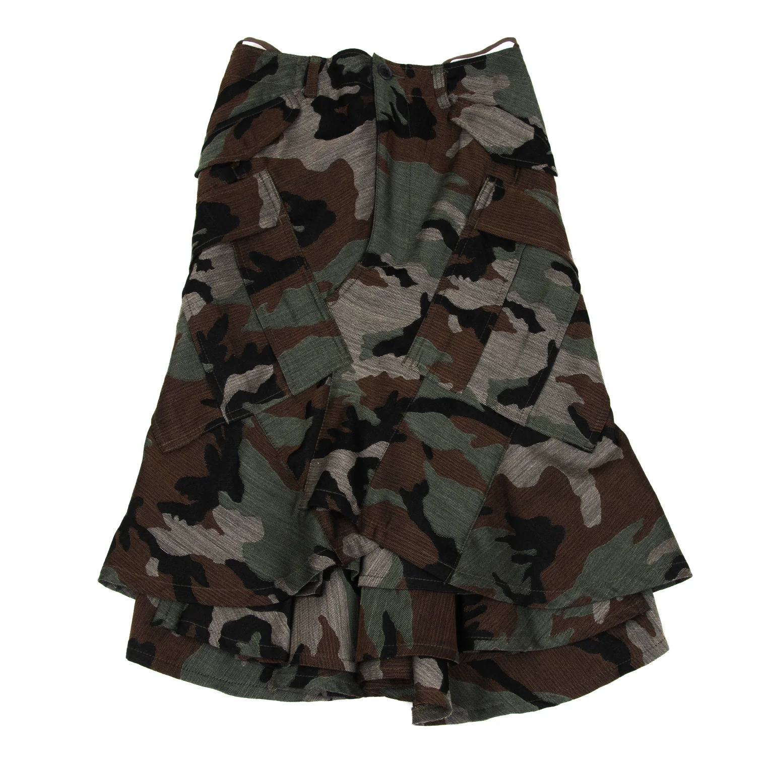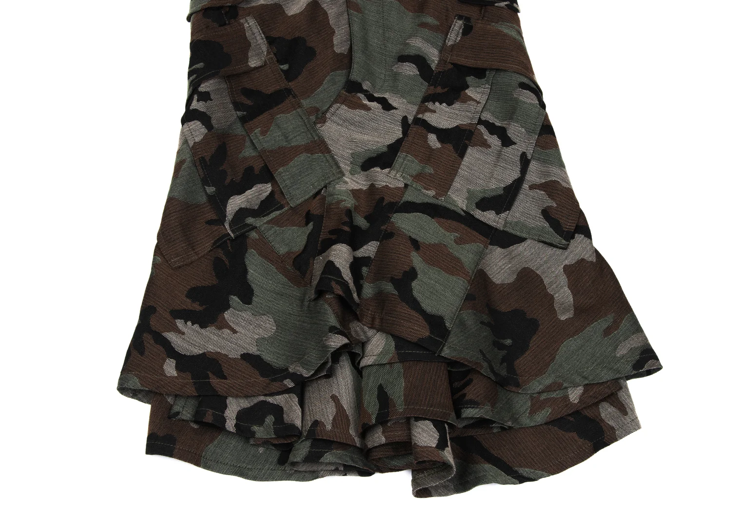 JUNYA WATANABE COMME des GARCONS Wool Camo Woven Ruffle Layered Skirt Khaki,Brown XS