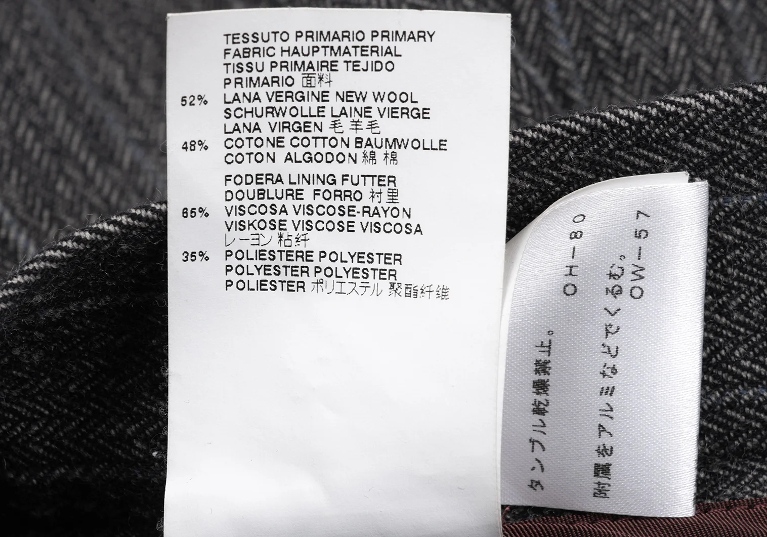 52% Wool 48% Cotton Lining 65% Rayon 35% Polyester |