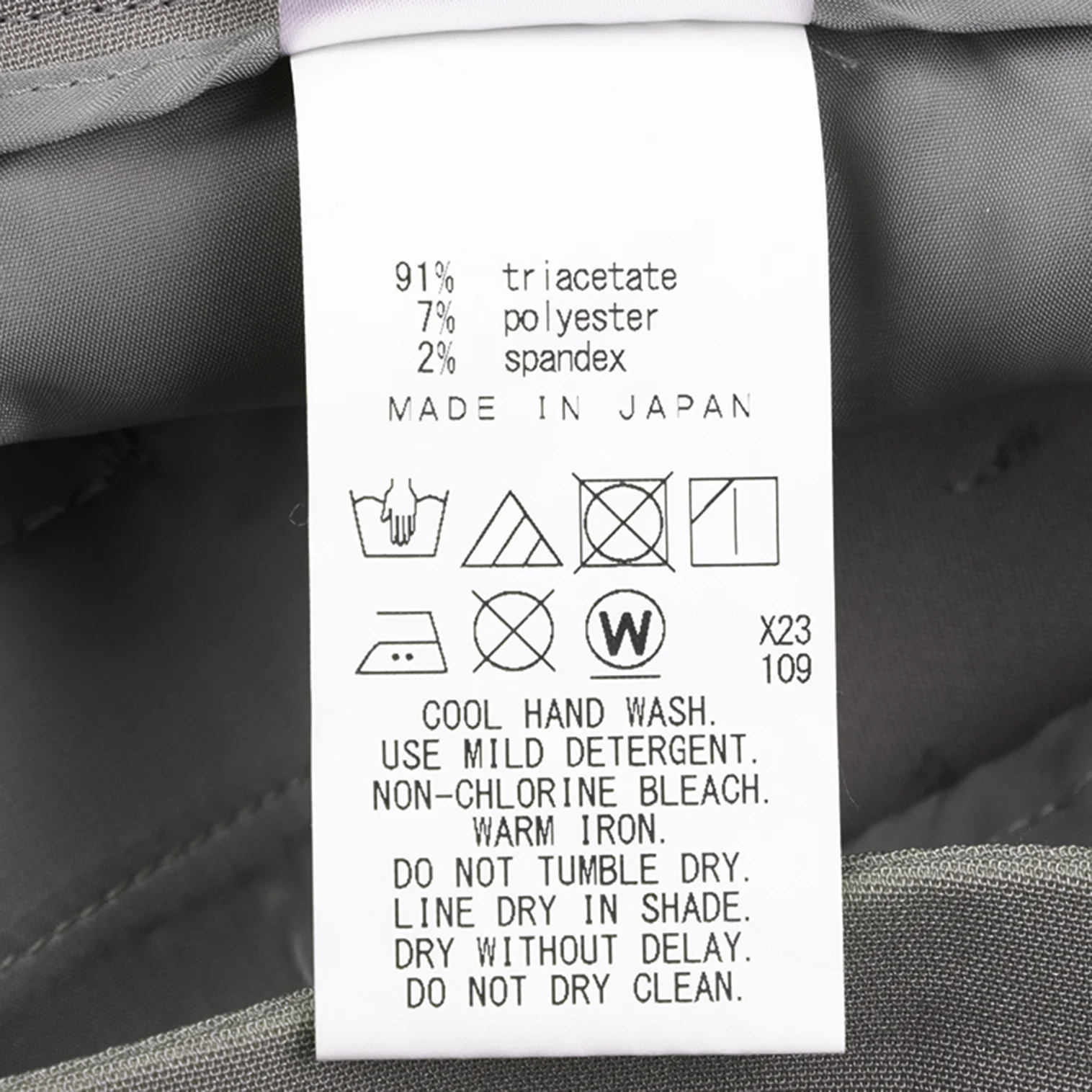 91% Triacetate 7% Polyester 2% Polyurethane |