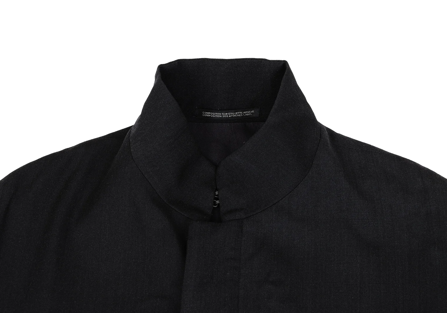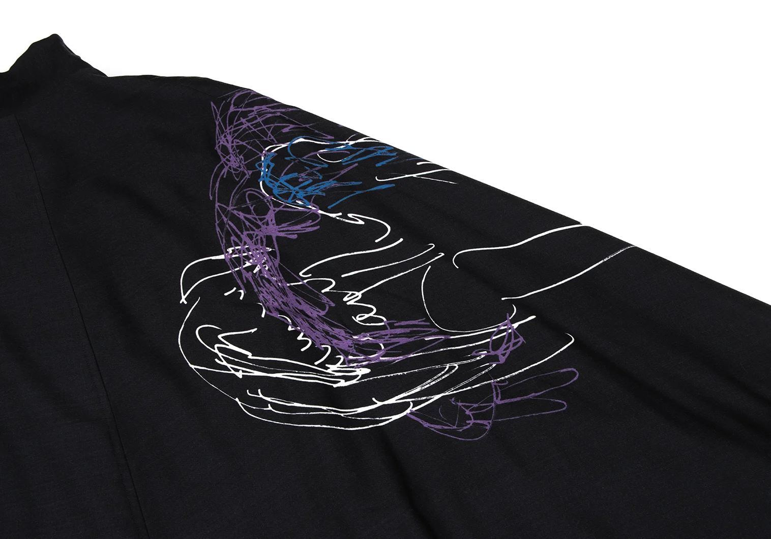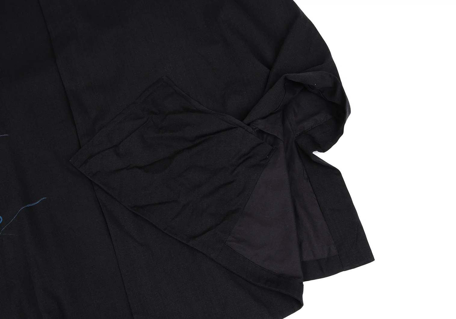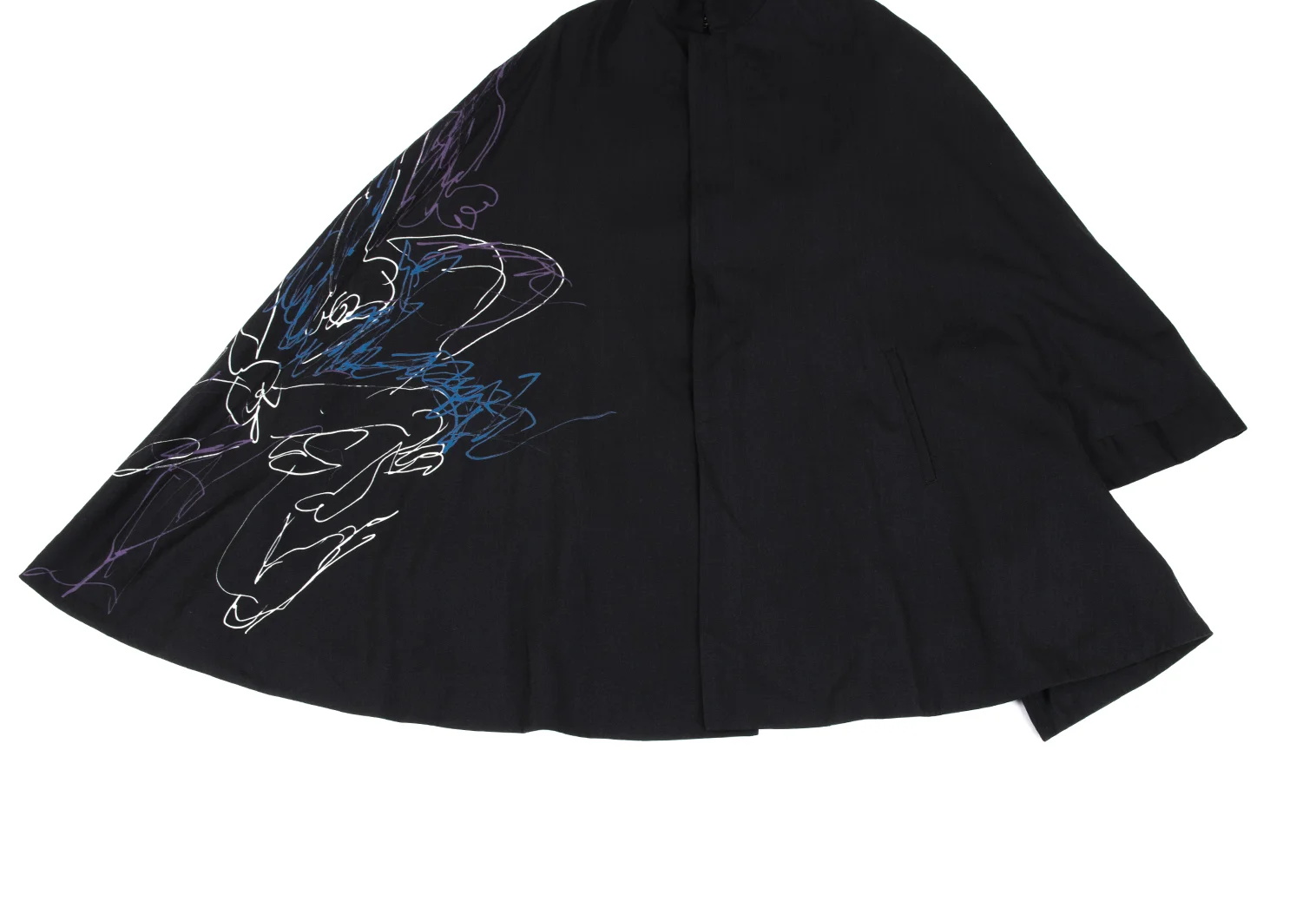 Yohji Yamamoto NOIR Wool Gabardine Drawing Print Stand Collar Poncho Coat Charcoal S-M