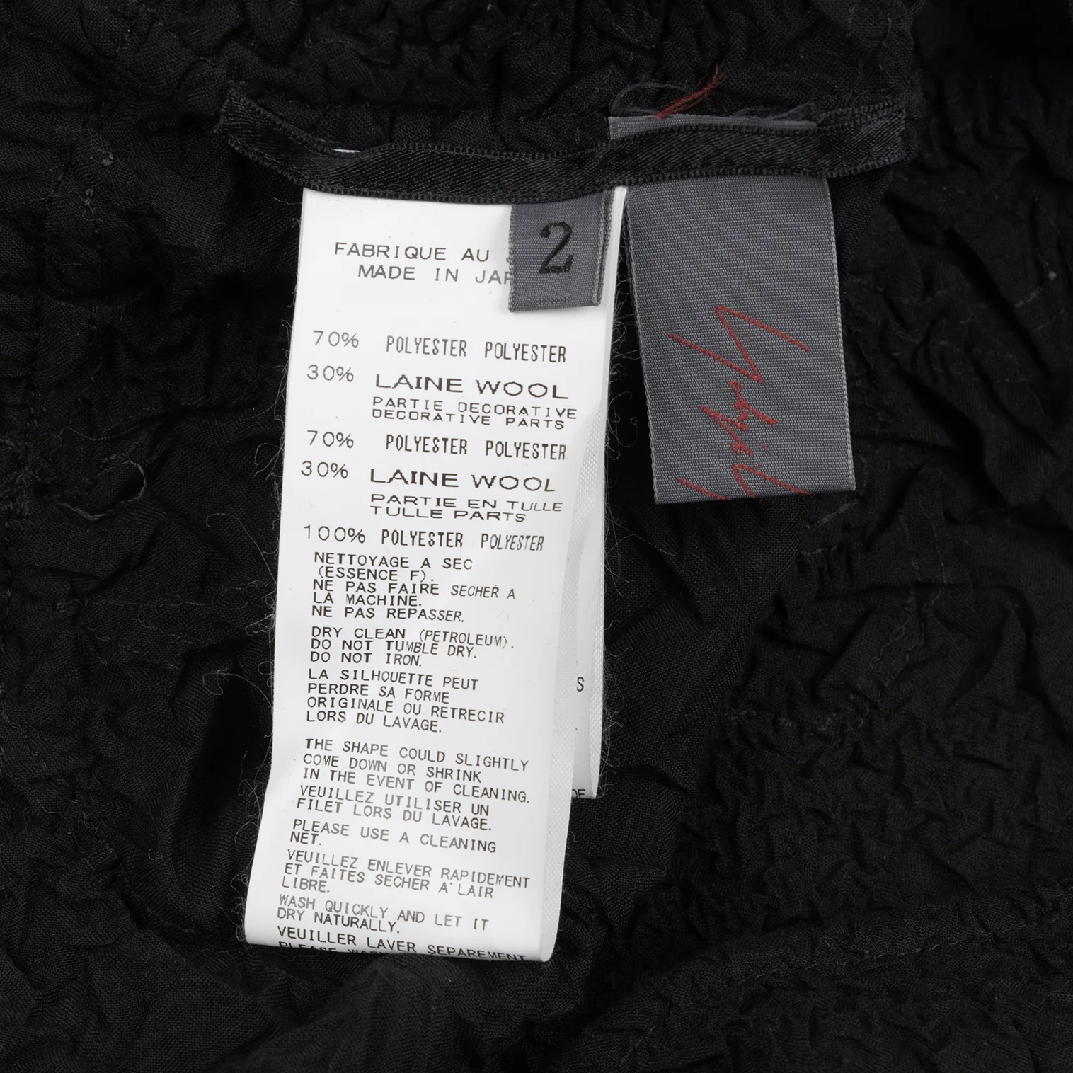 70% Polyester 30% Wool Tulle 100% Polyester |