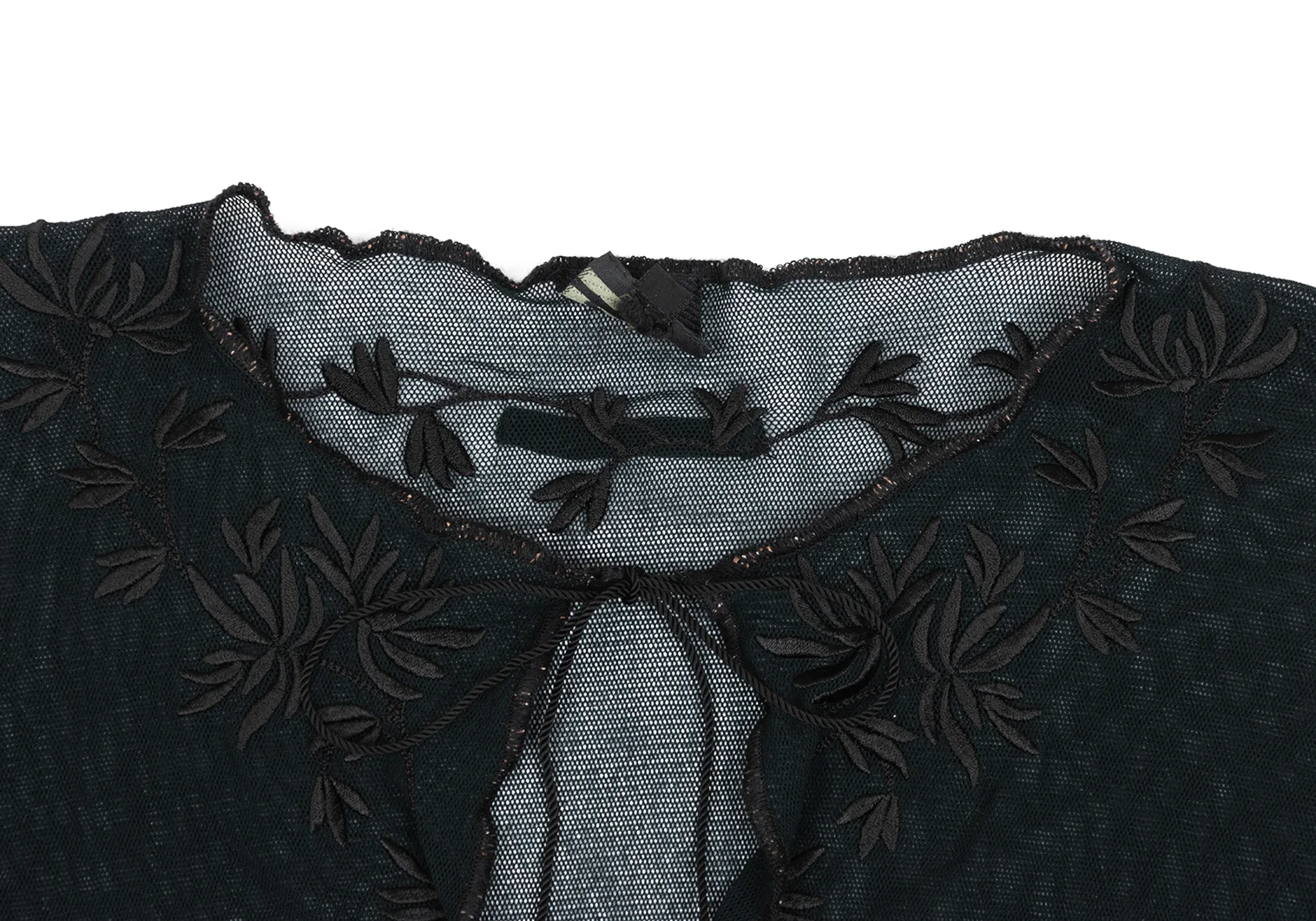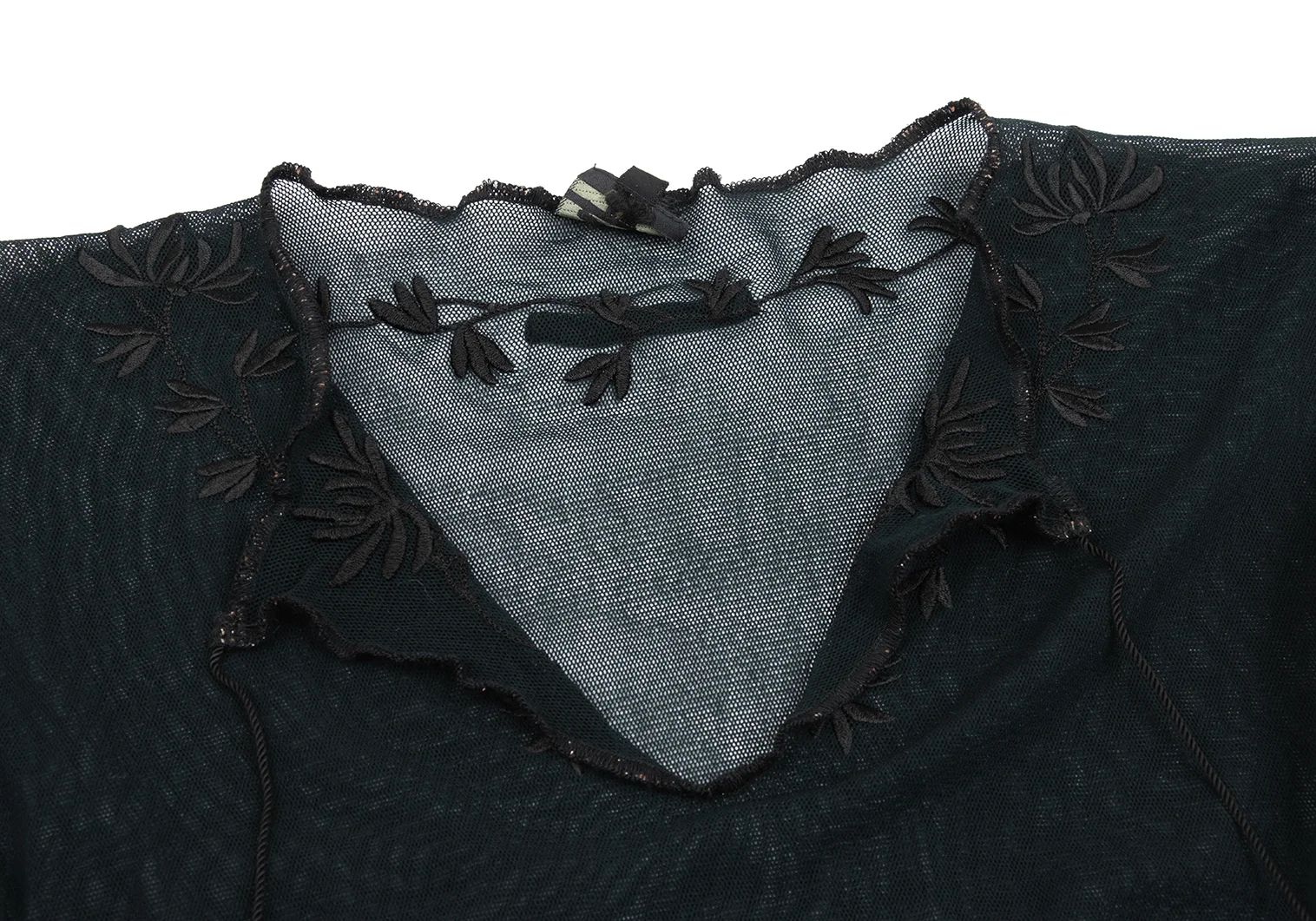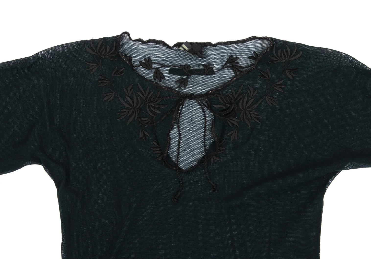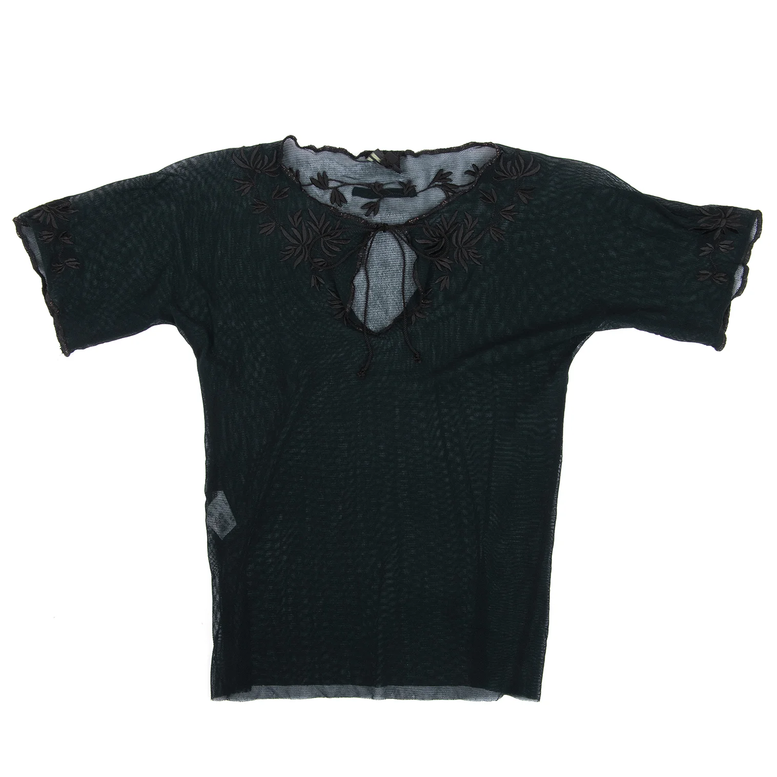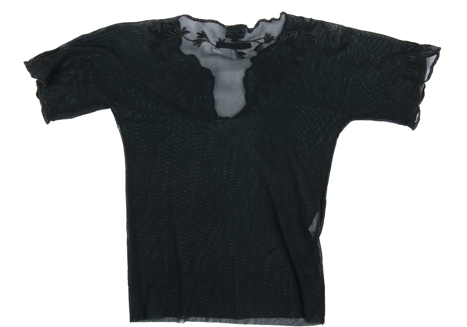 Jean Paul GAULTIER HOMME Nylon Botanical Embroidery Mesh Skipper T-shirt Black 48