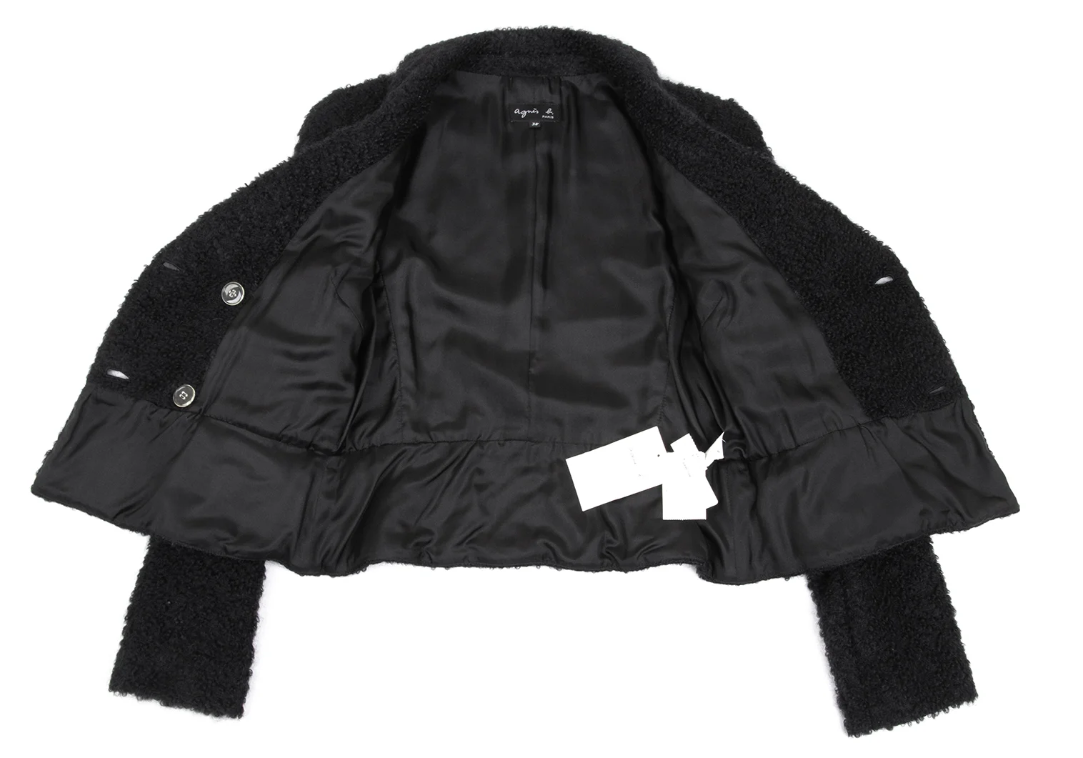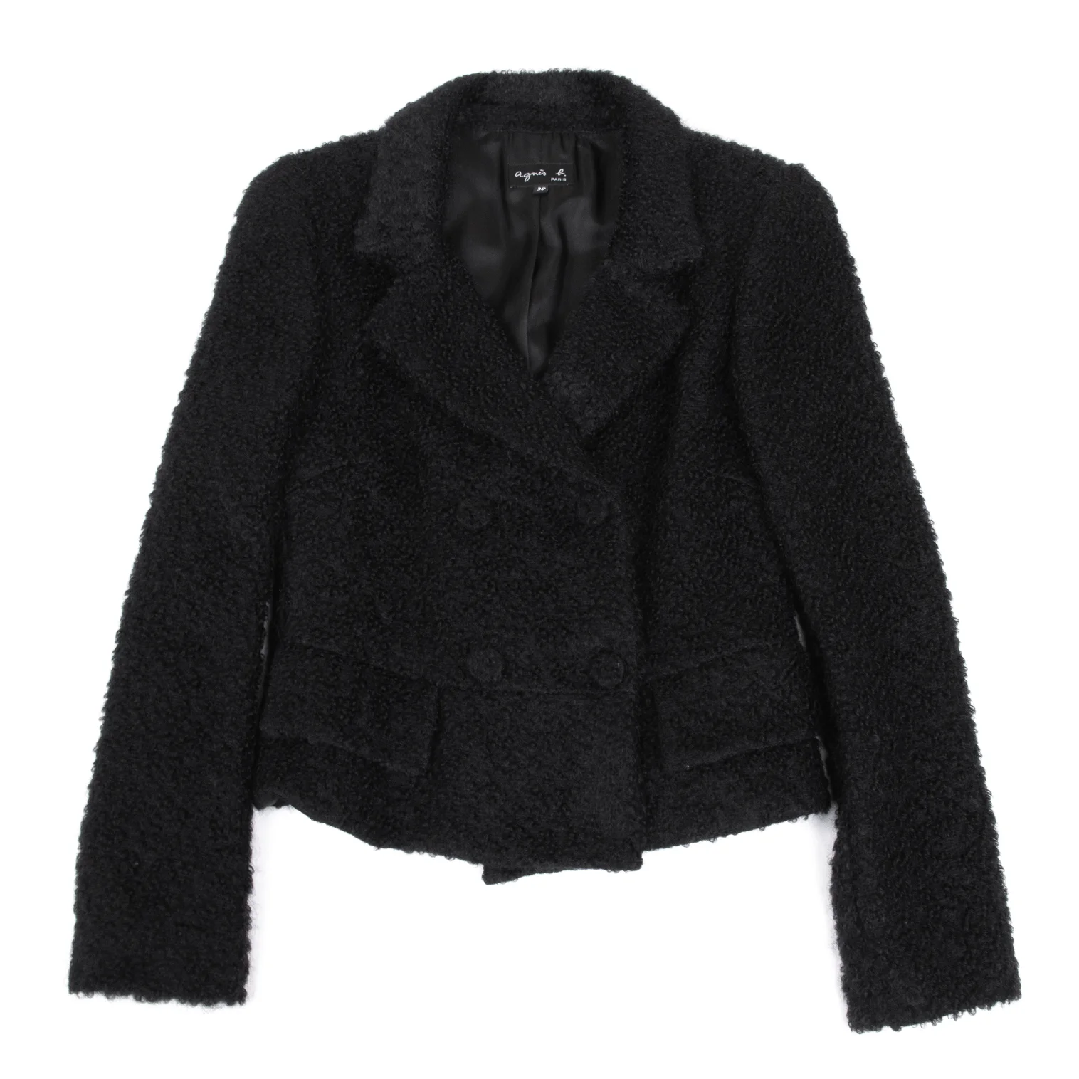 agnes b. Mohair Wool Loop Tweed Jacket Black 38