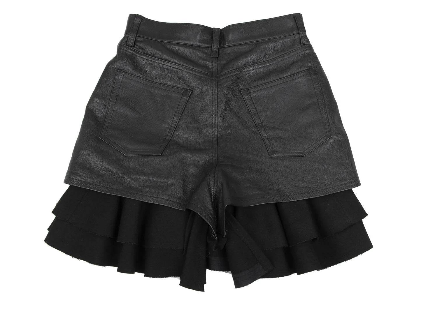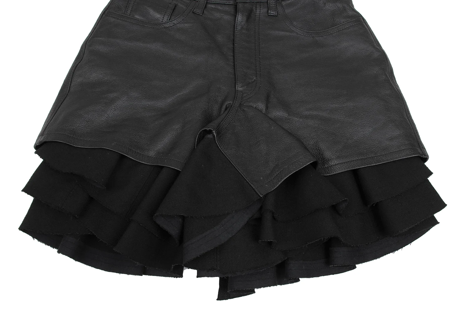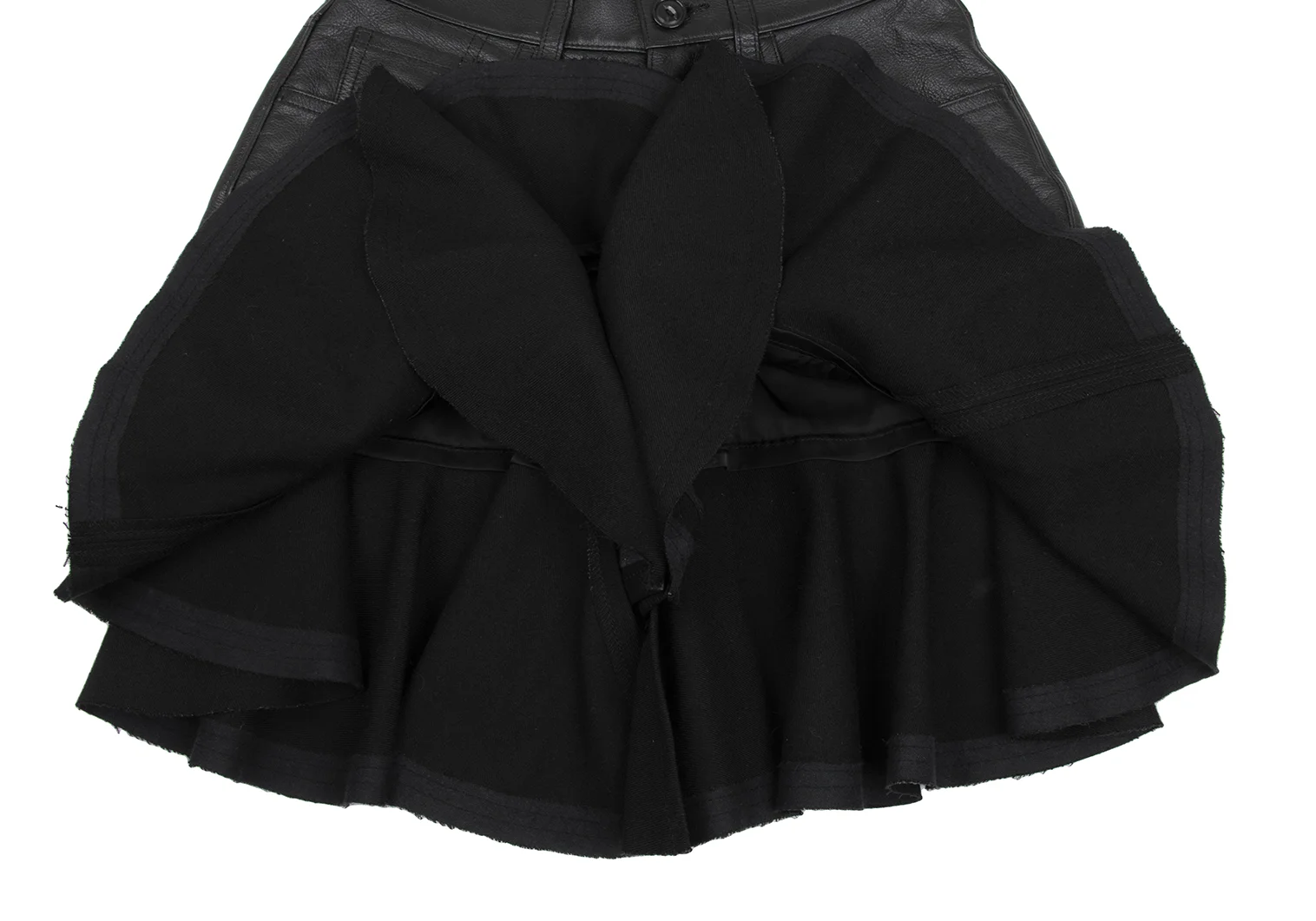 JUNYA WATANABE COMME des GARCONS Hem Frill Layered Cow Leather Skirt Pants Black XS