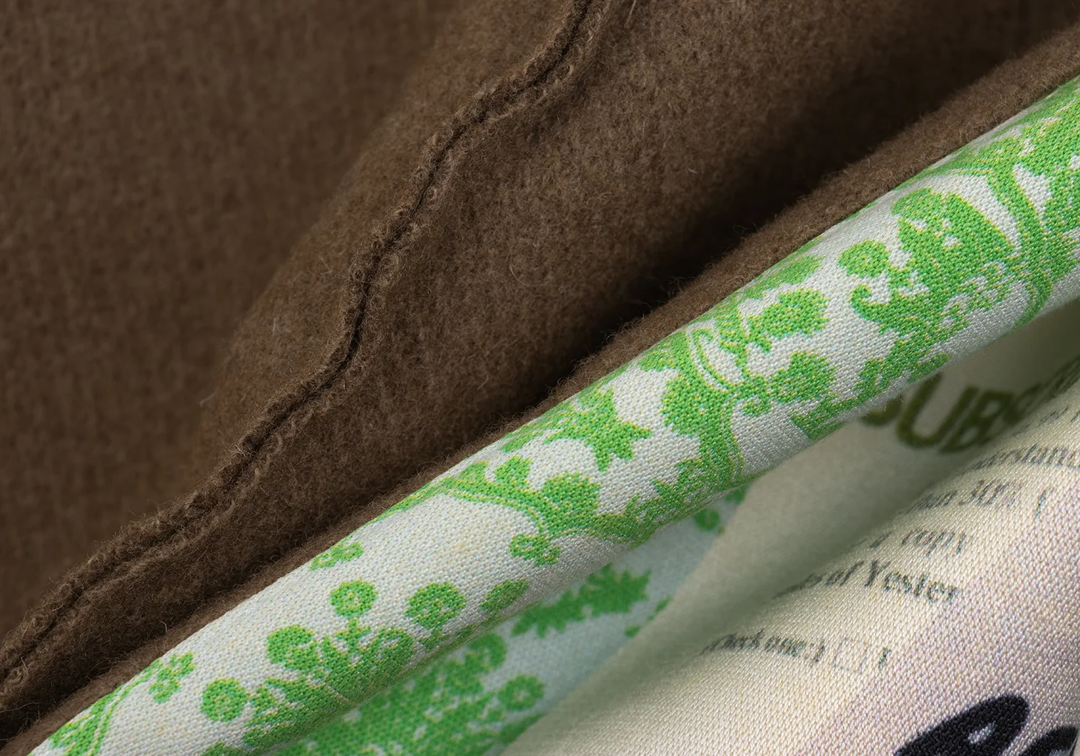 53% Silk, 47% Wool Another 70% Wool 30% Nylon Lining 100% Cupro
