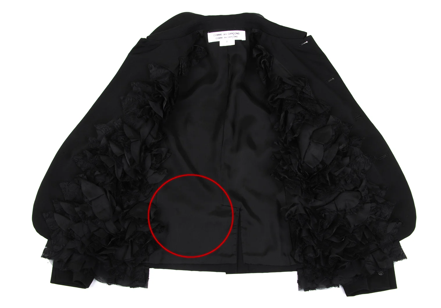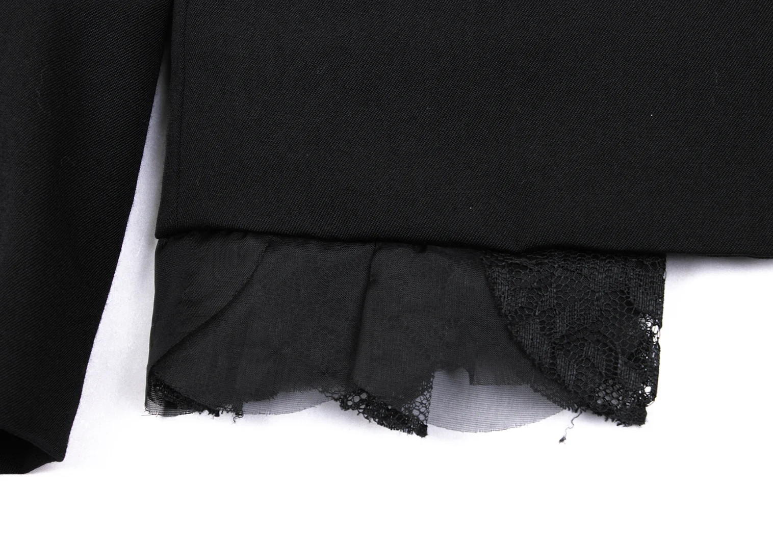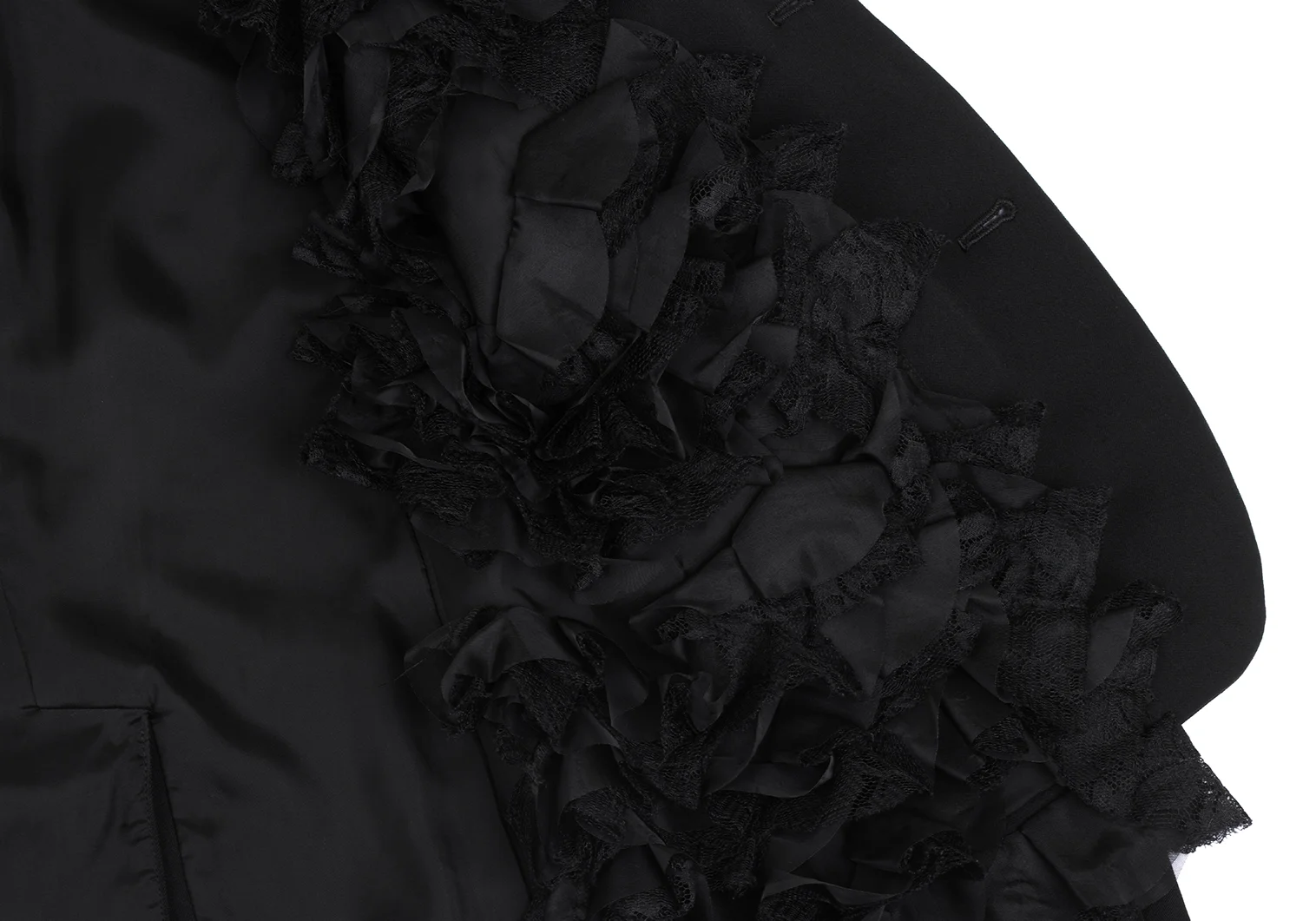 100% Wool Frill part 100% Polyester Lining 100% Cupra |