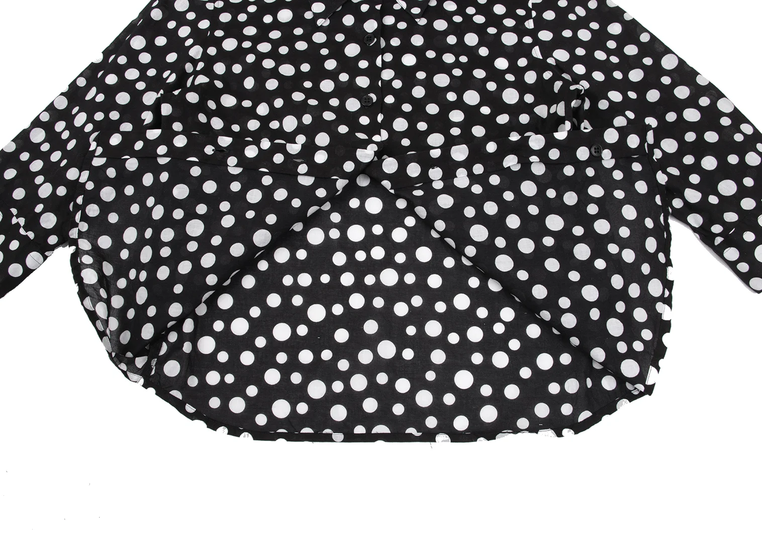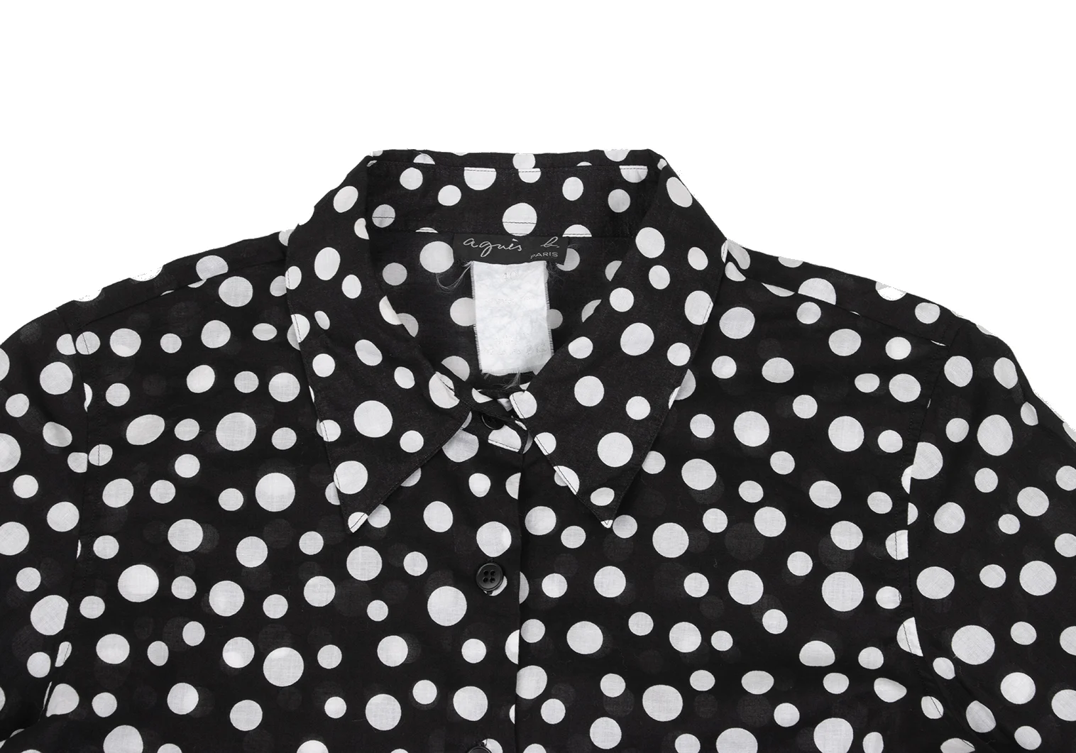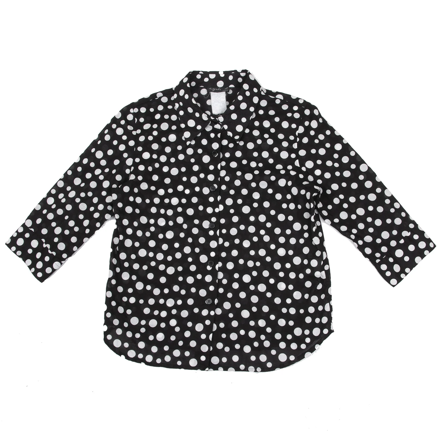 agnes b. Cotton Dot 3/4 Sleeve Sheer Blouse Black,White 40
