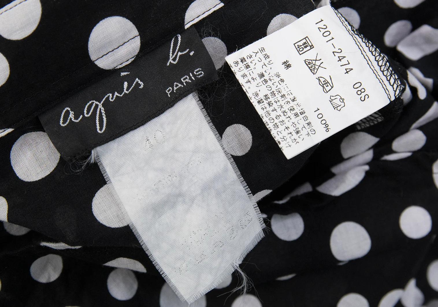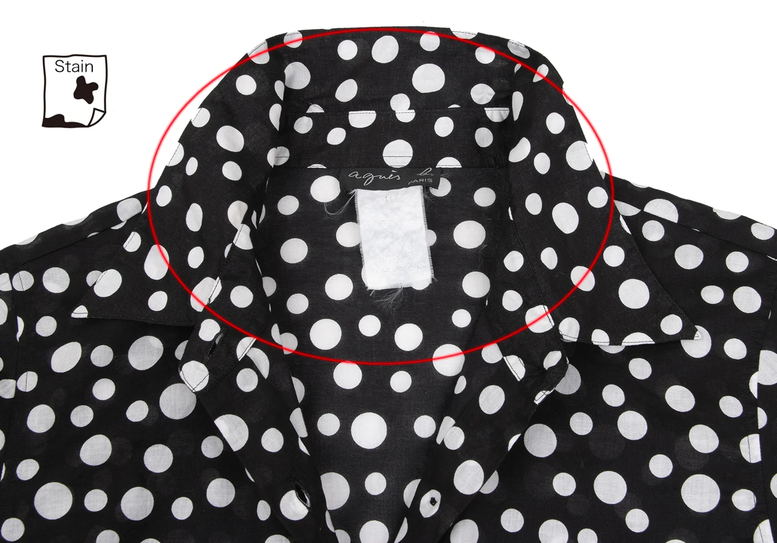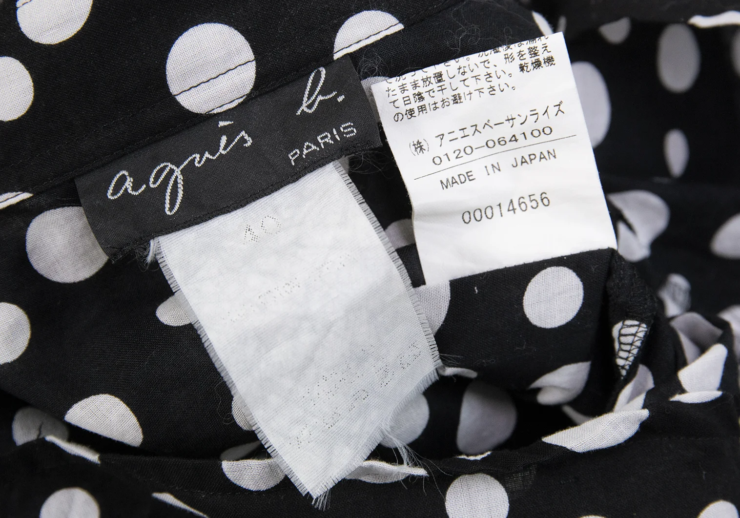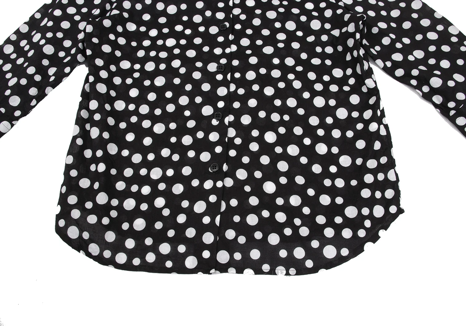 agnes b. Cotton Dot 3/4 Sleeve Sheer Blouse Black,White 40