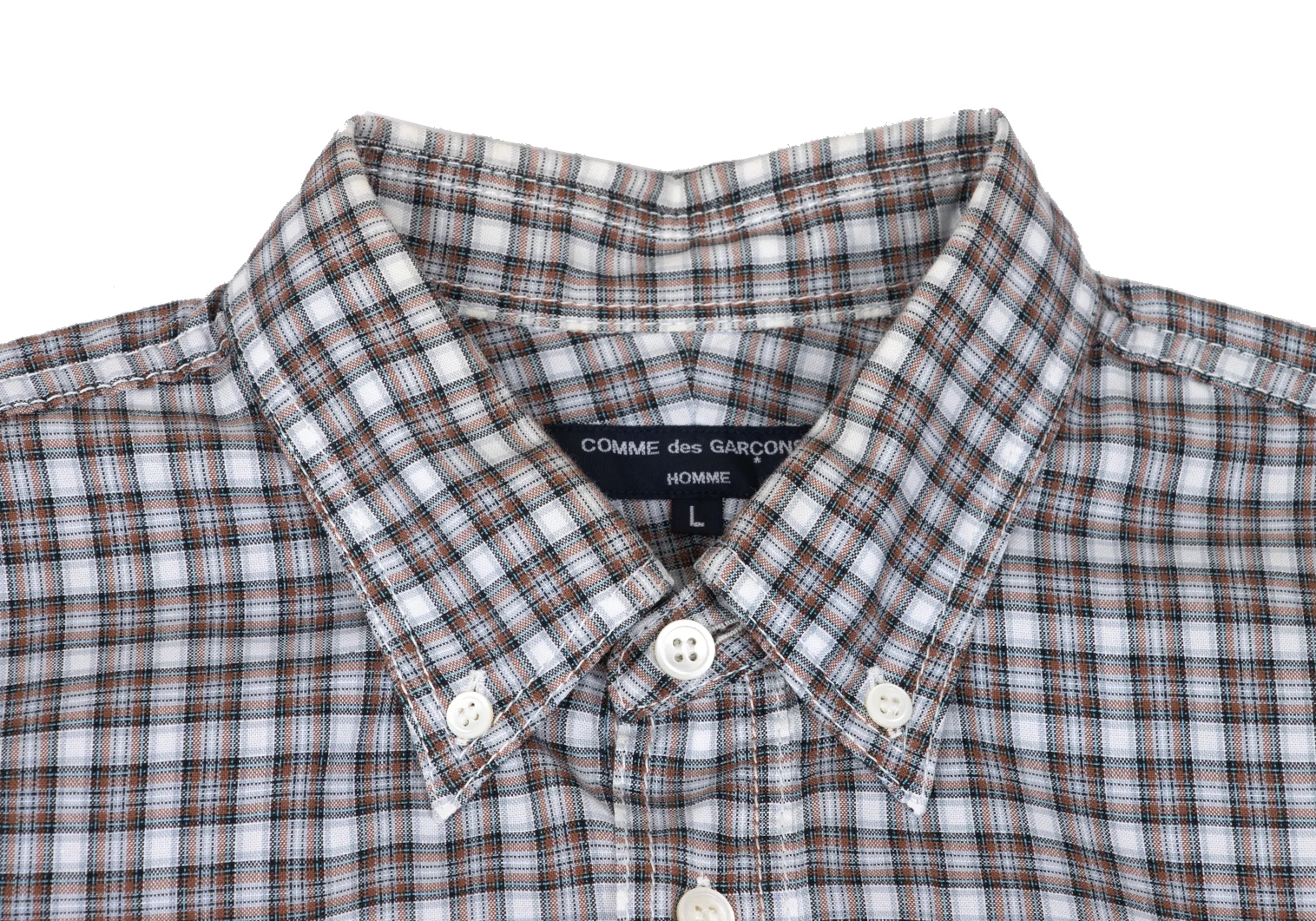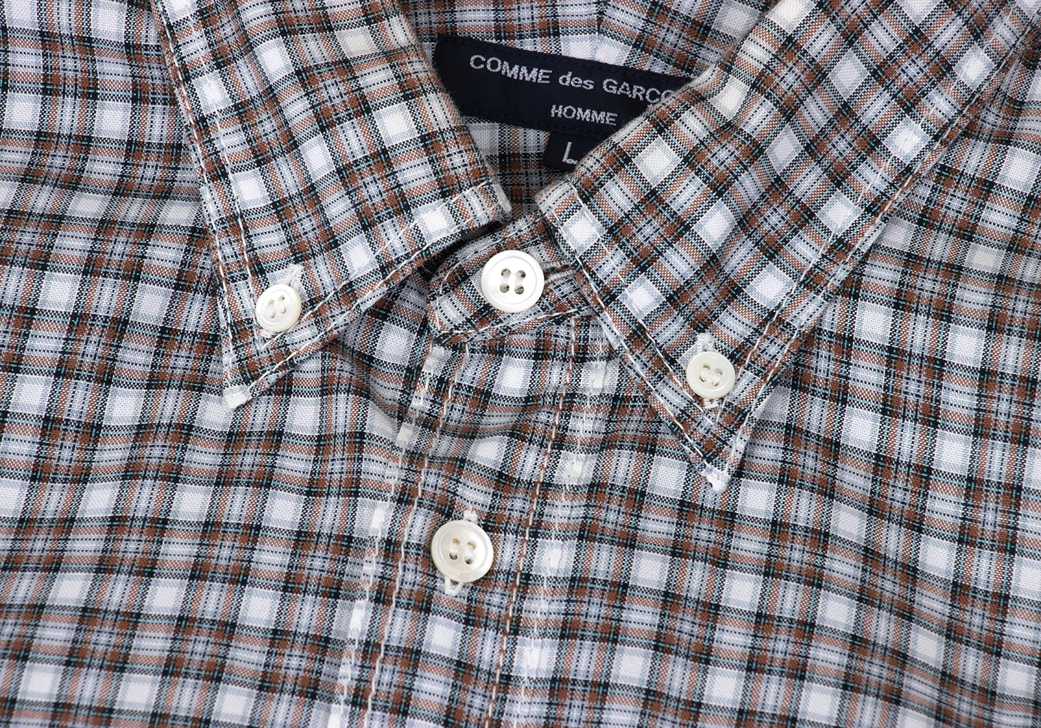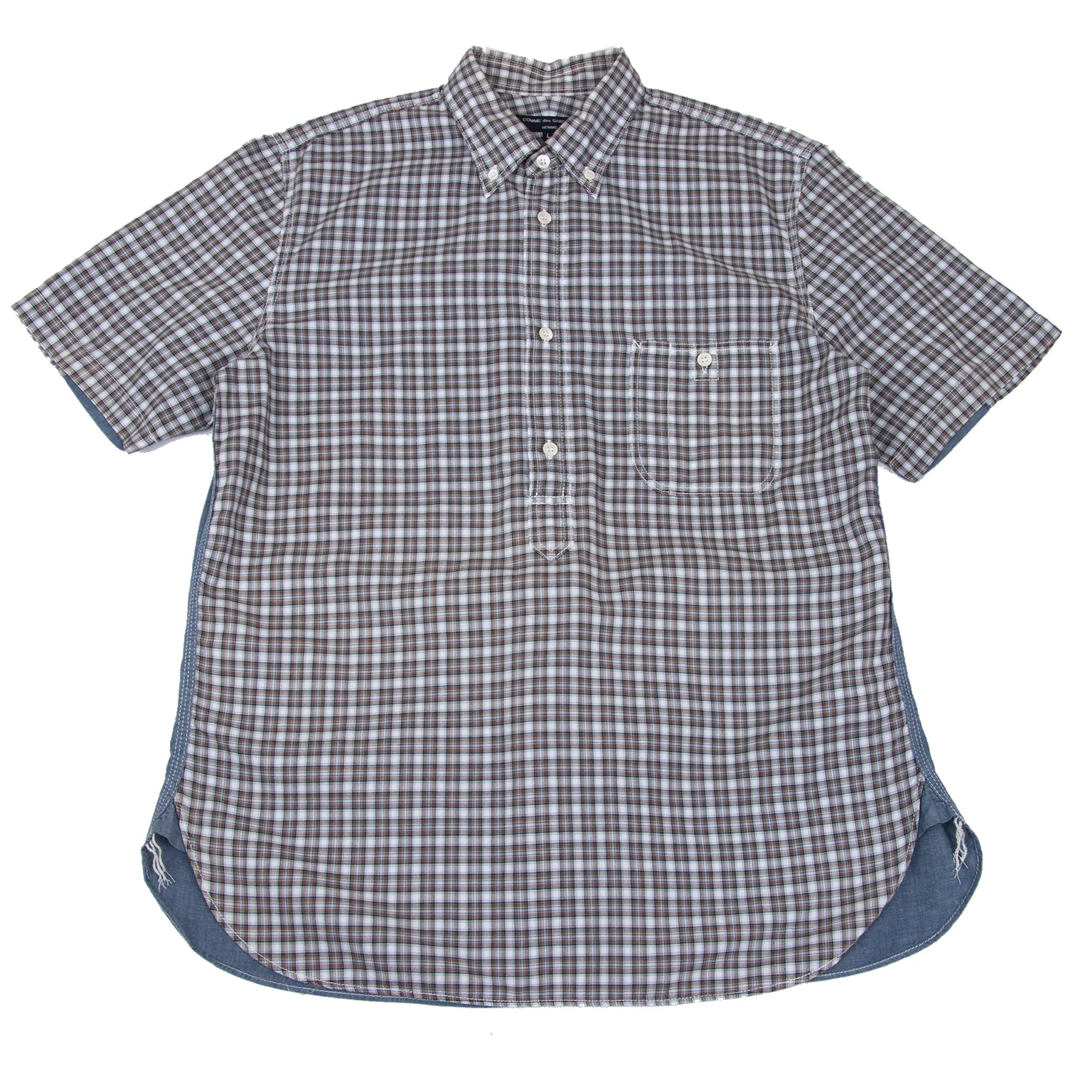 COMME des GARCONS HOMME Back Switching Check Pullover Button Down Shirt Brown,Blue L