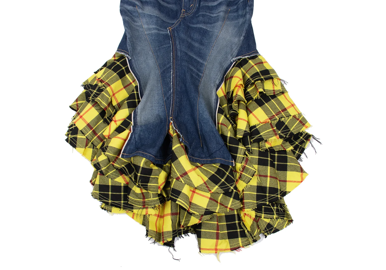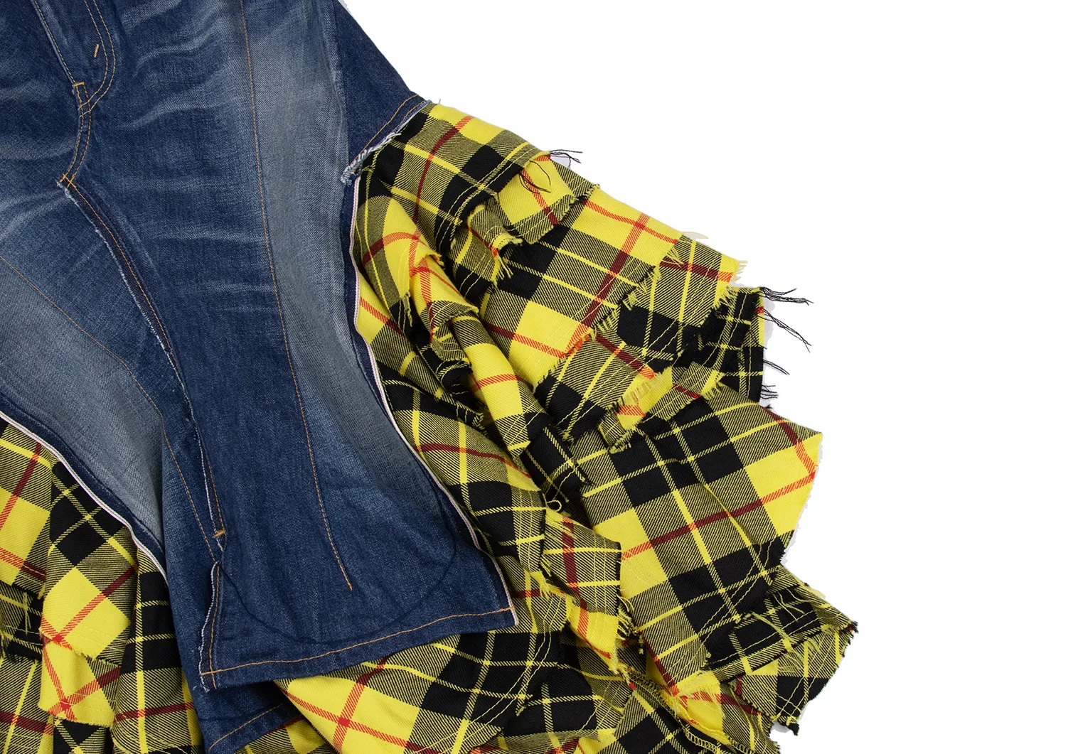 JUNYA WATANABE COMME des GARCONS denim Check Switching Rebuild Skirt Indigo,Yellow S