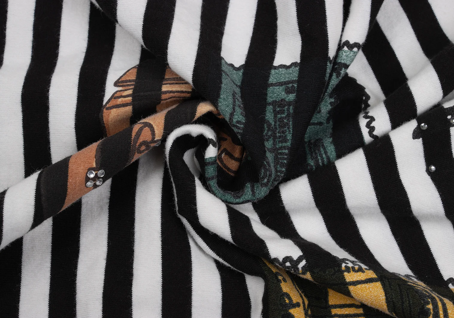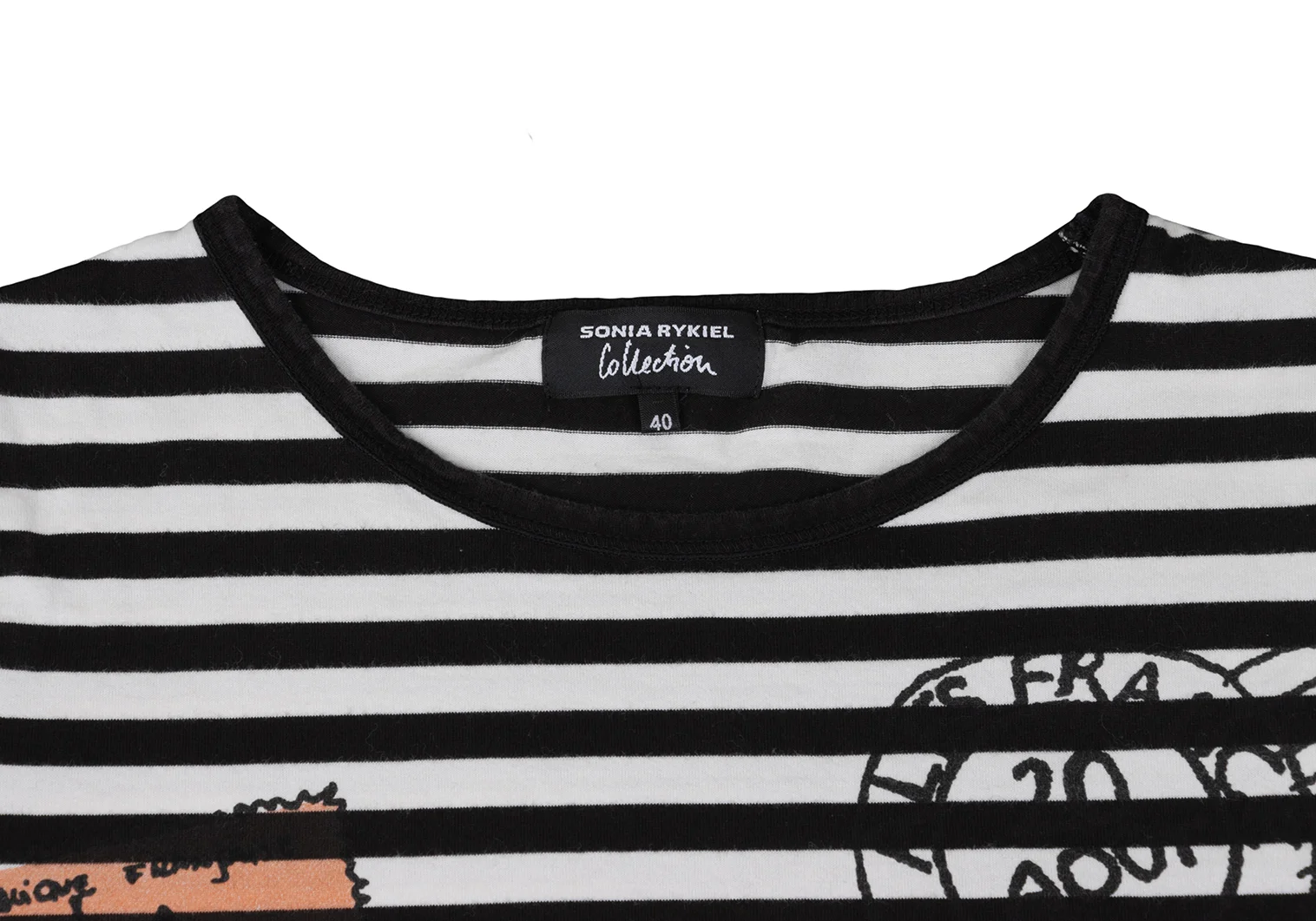 SONIA RYKIEL Rhinestone-embellished Paris Travel Print Striped T-shirt Black,White 40