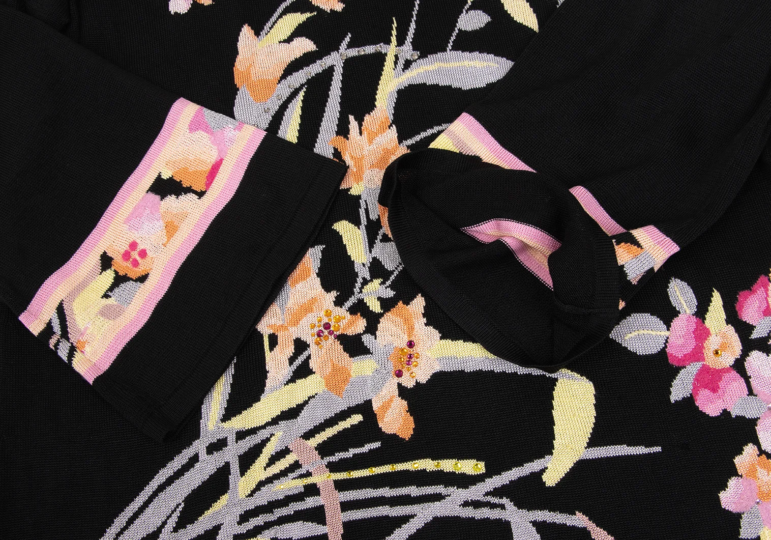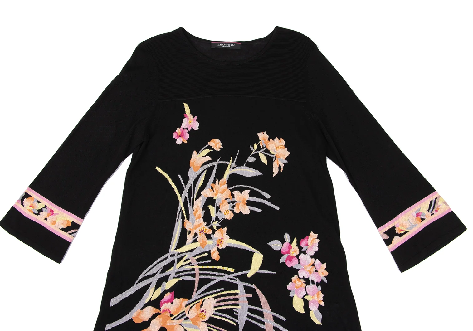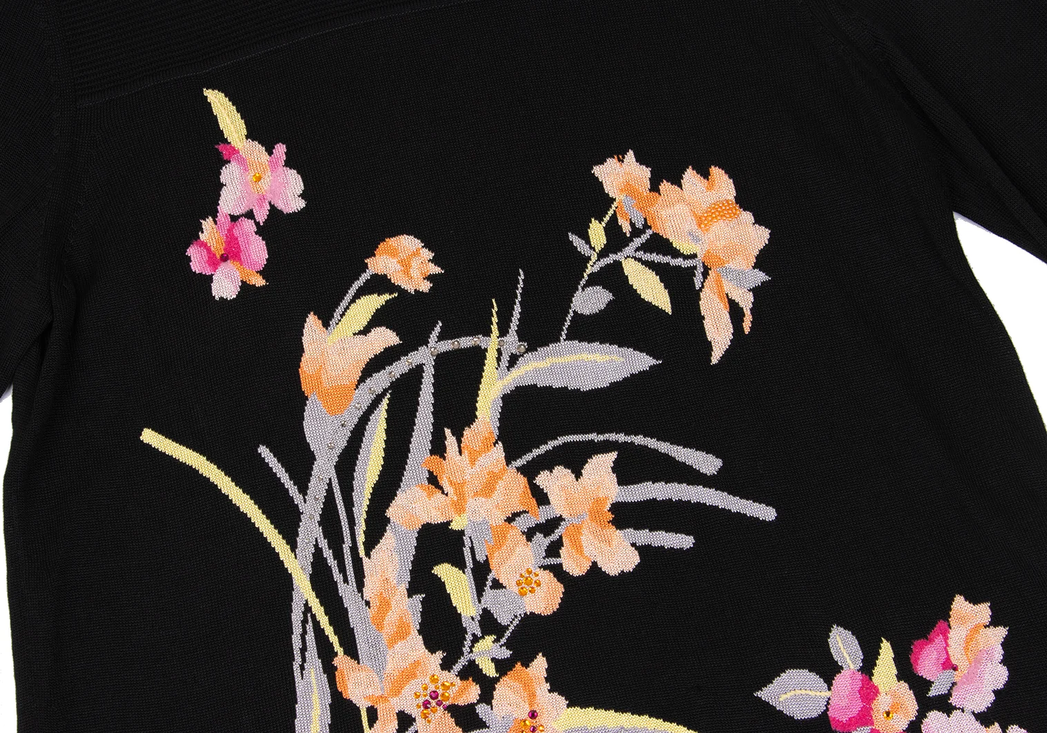 LEONARD Silk Blend Rhinestone-embellished Floral Jacquard Knit Top Black,Multi-Color 40