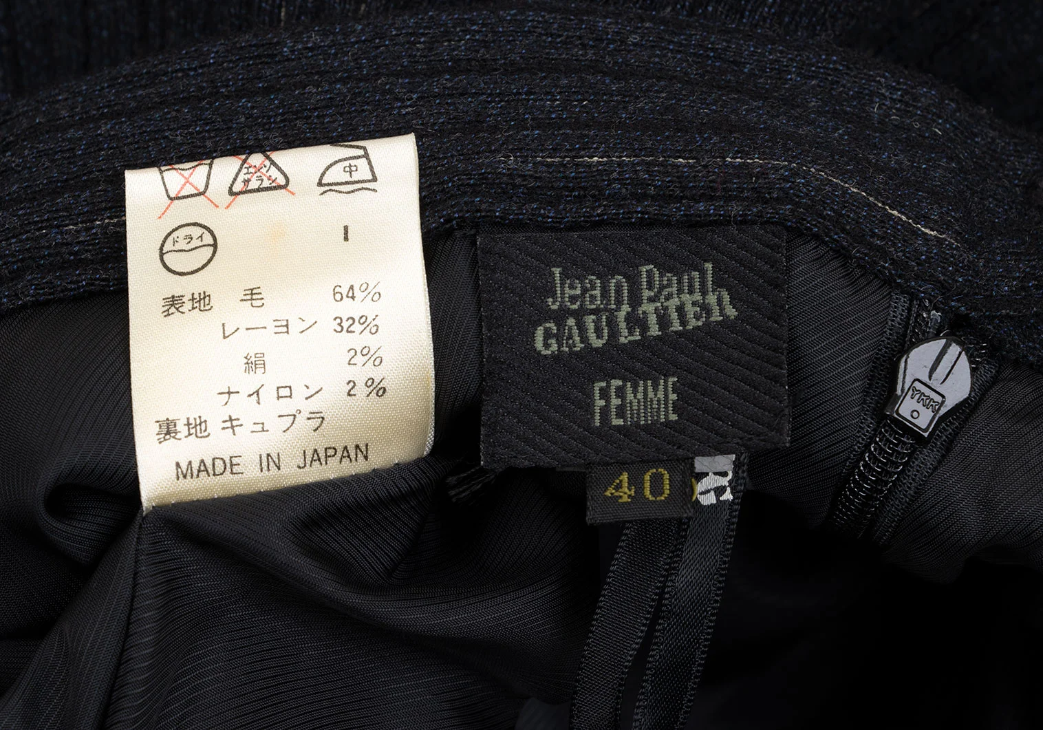 64% Wool 32% Rayon 2% Silk 2% Nylon Lining Cupra |