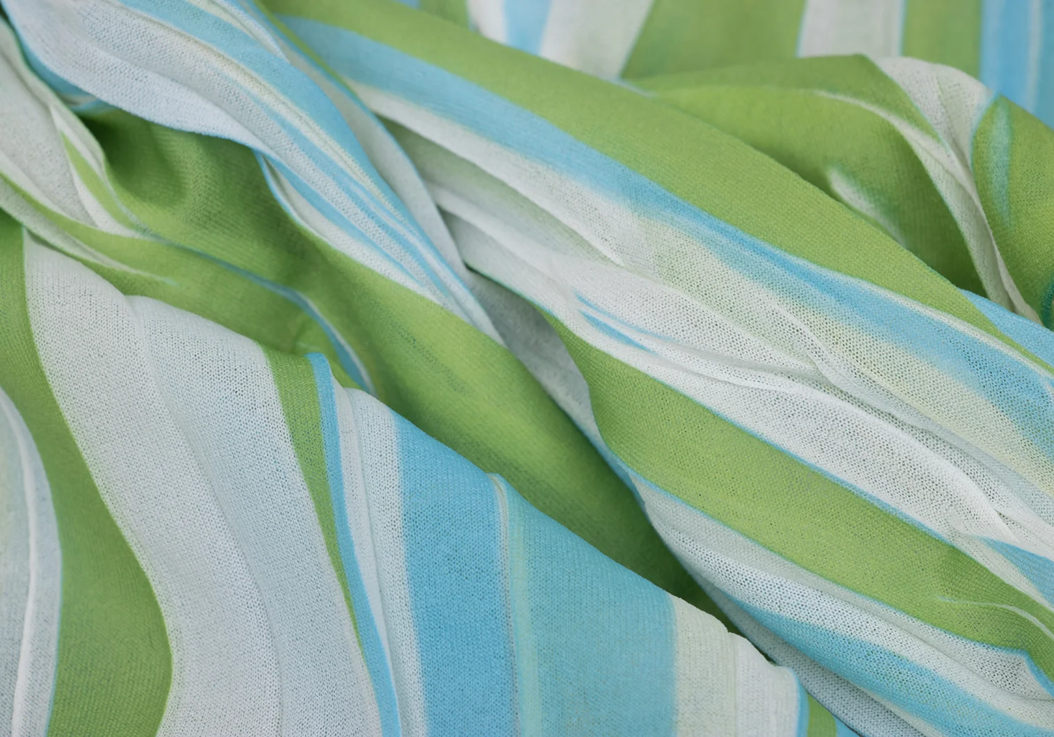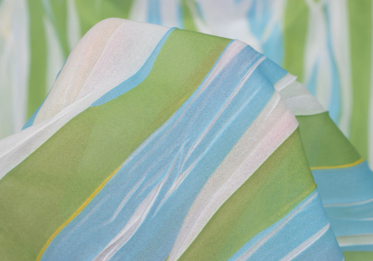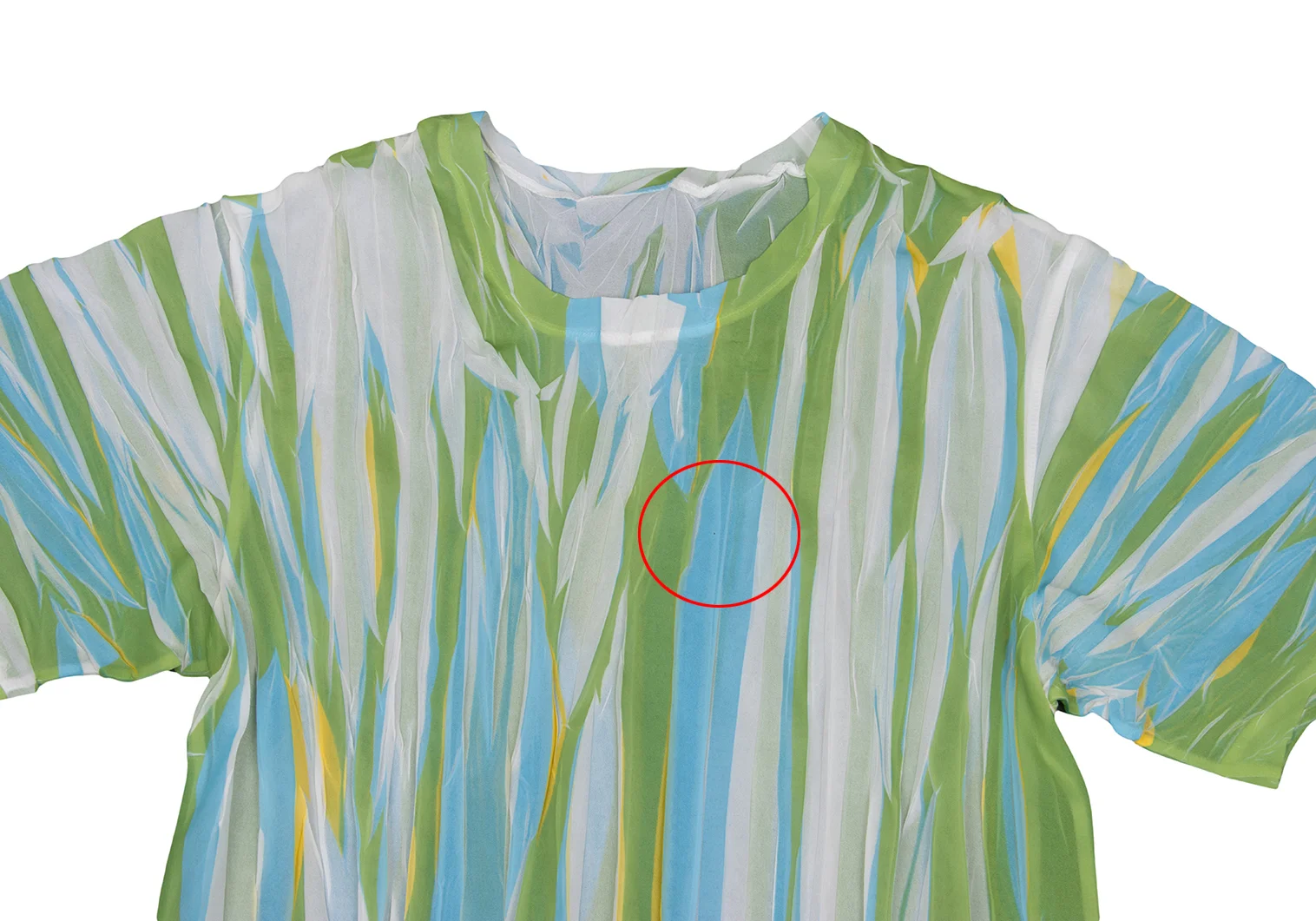 ISSEY MIYAKE Wrinkled Pleats See-through Stripe T-shirt Light Green,White,Sky blue S