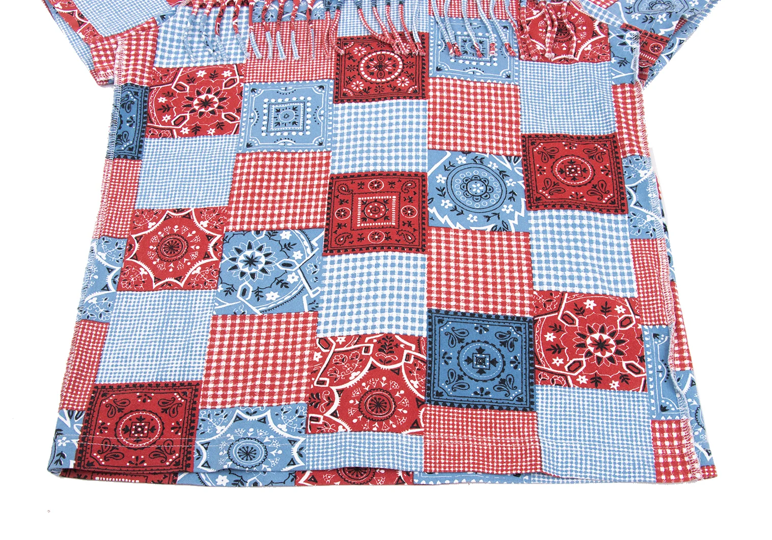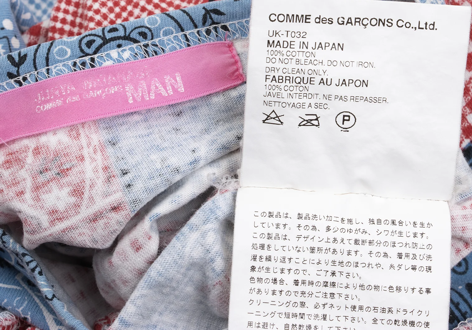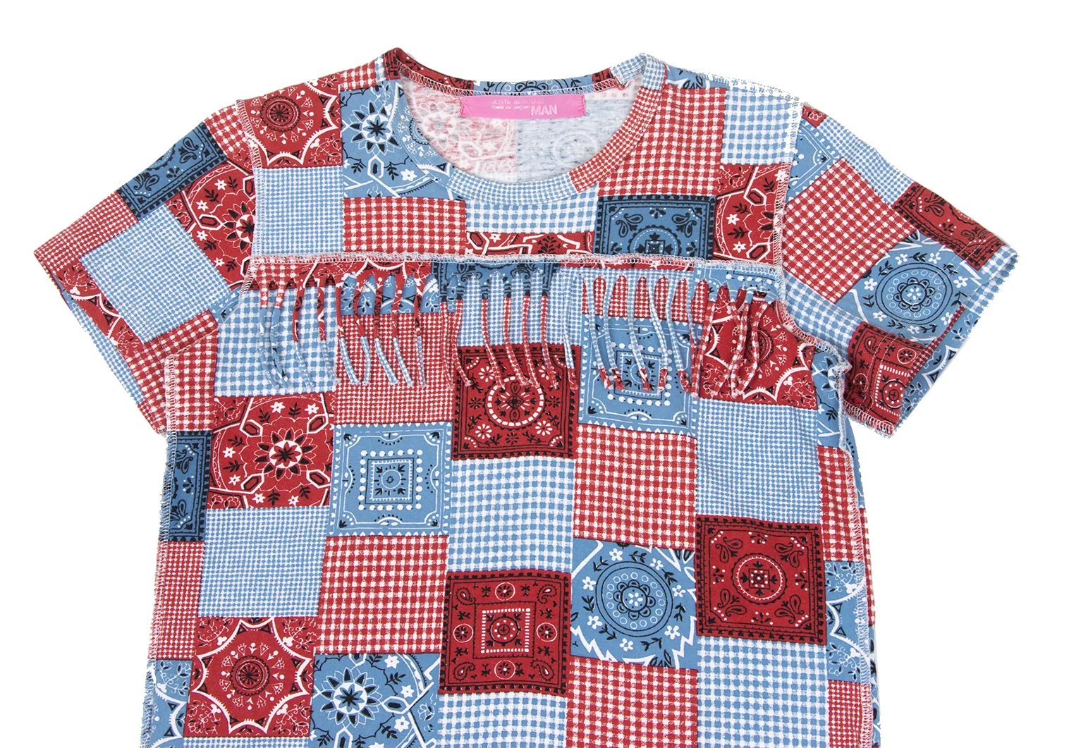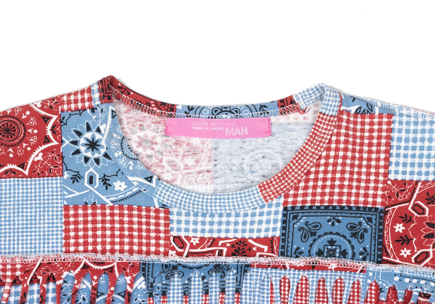 JUNYA WATANABE MAN PINK COMME des GARCONS Patchwork Print Fringe T-shirt Blue,Red XS-S