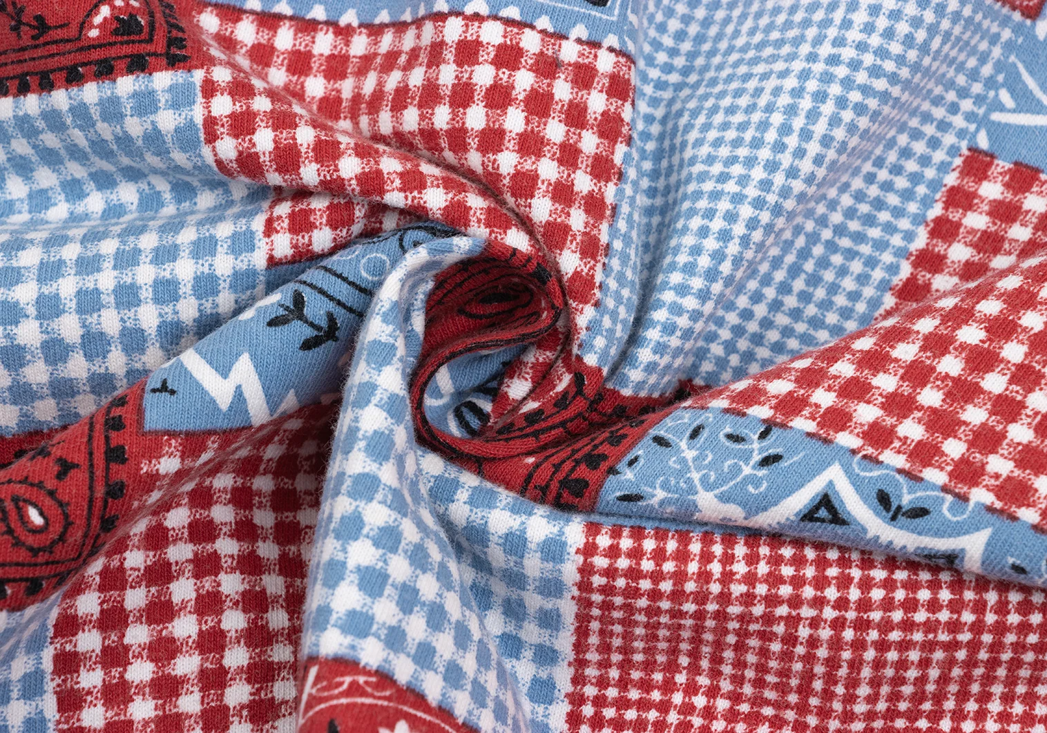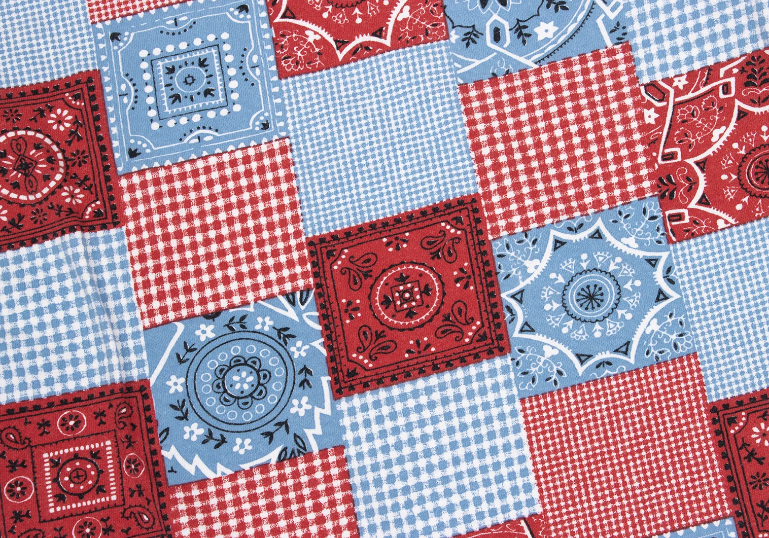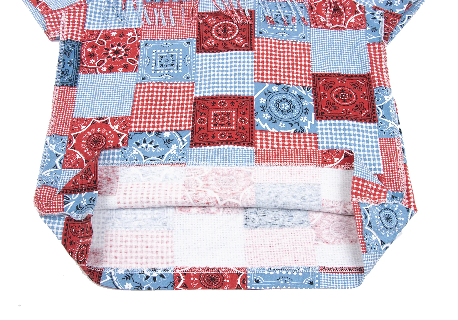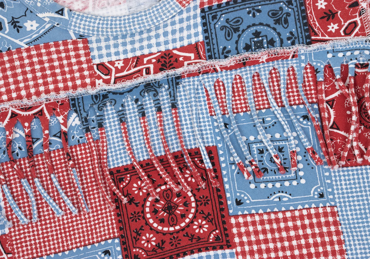 JUNYA WATANABE MAN PINK COMME des GARCONS Patchwork Print Fringe T-shirt Blue,Red XS-S