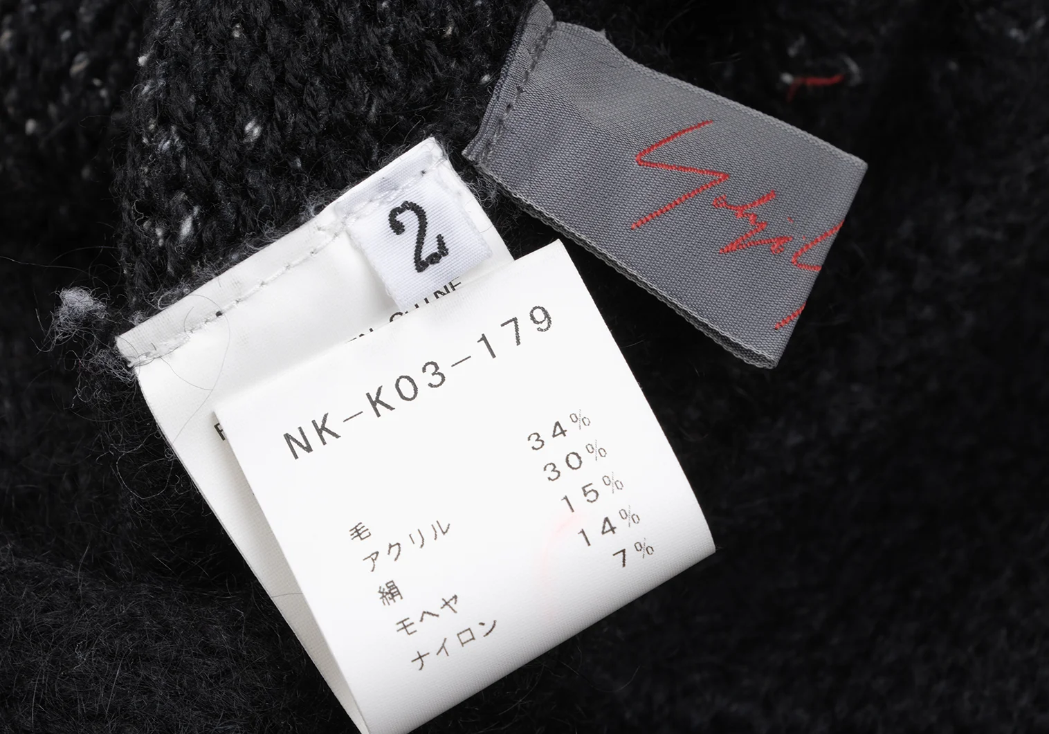 34% Wool 30% Acrylic 15% Silk 14% Mohair 7% Nylon