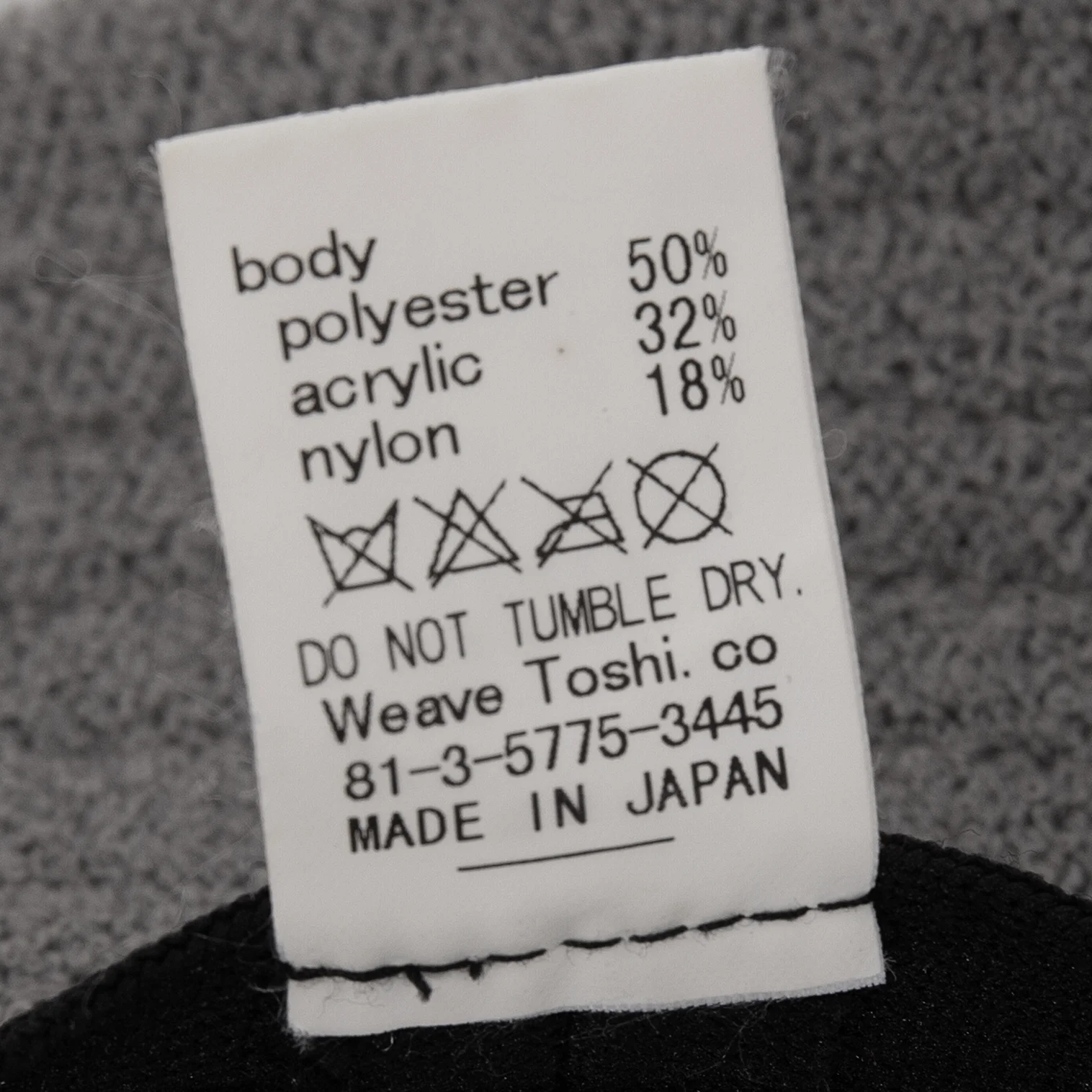 50% Polyester 32% Acrylic 18% Nylon |