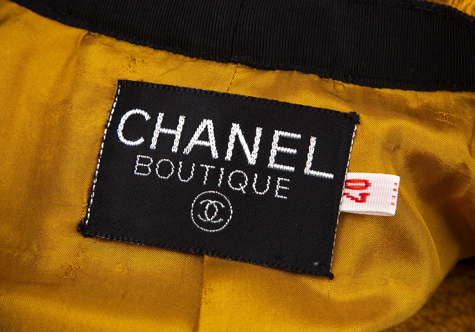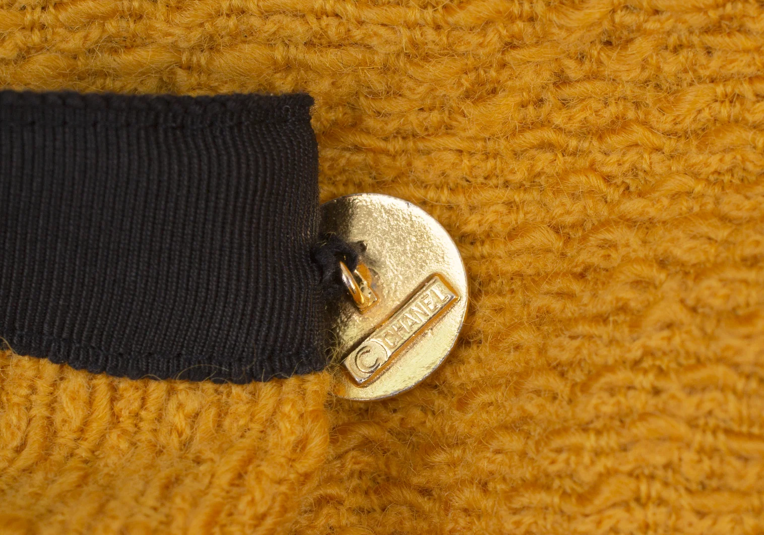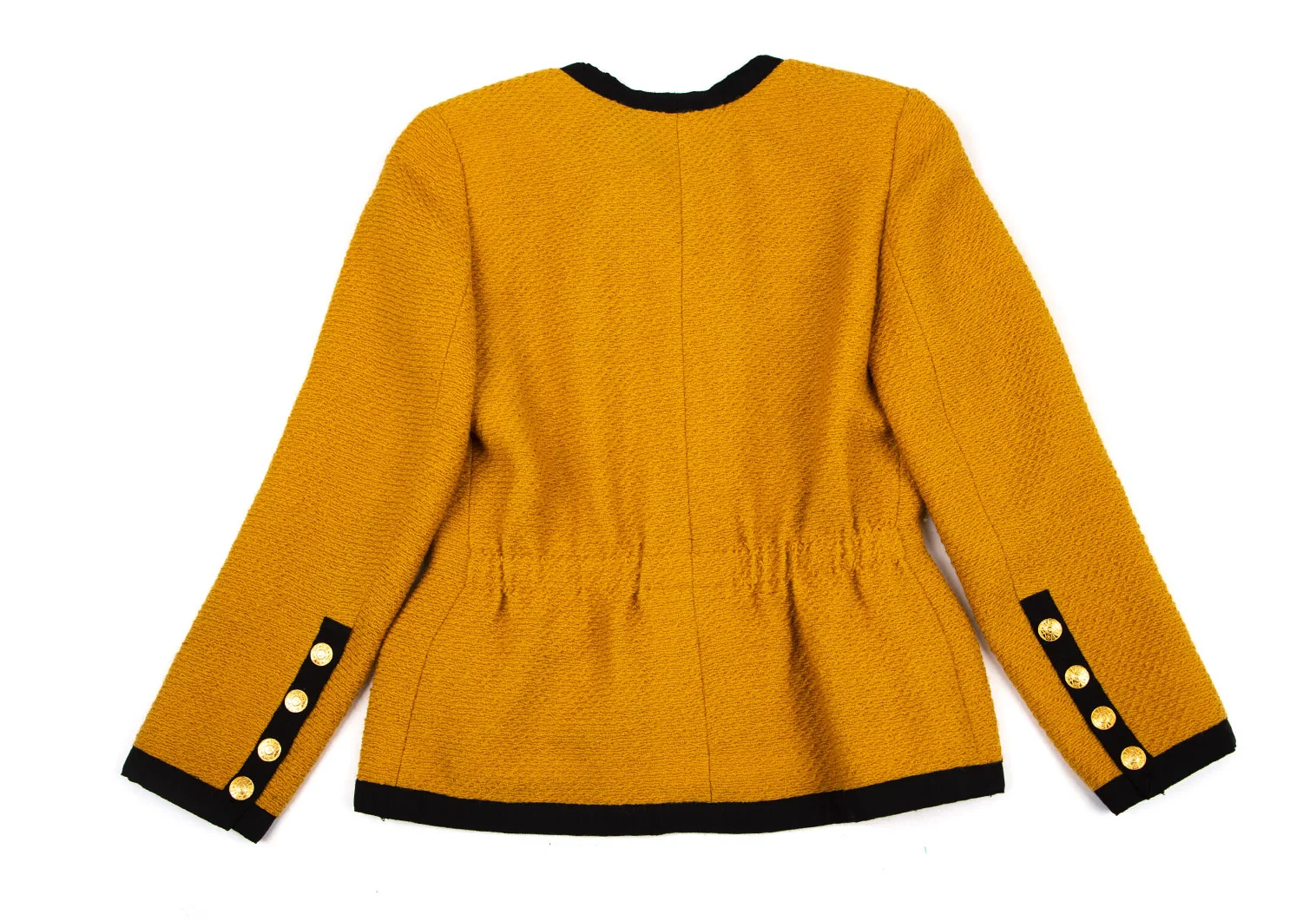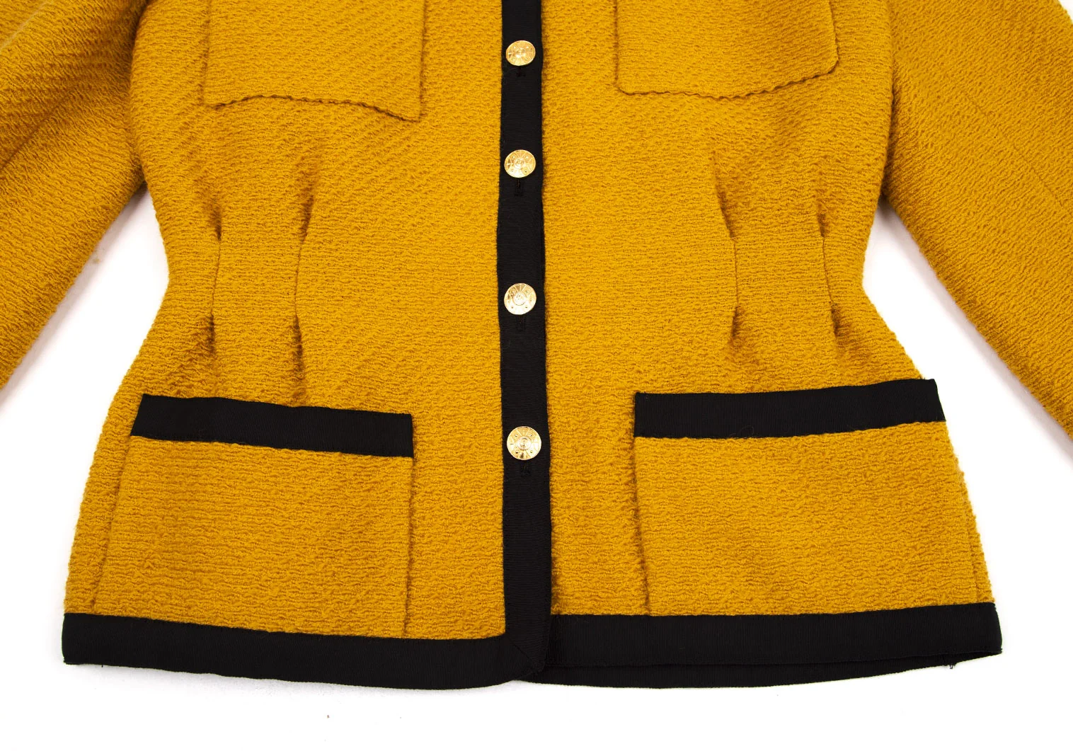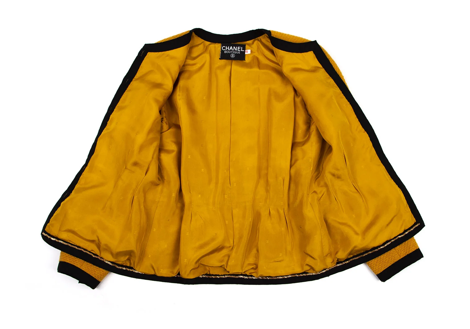 シャネルCHANEL 金ボタンノーカラートリミングツイードジャケット マスタード40