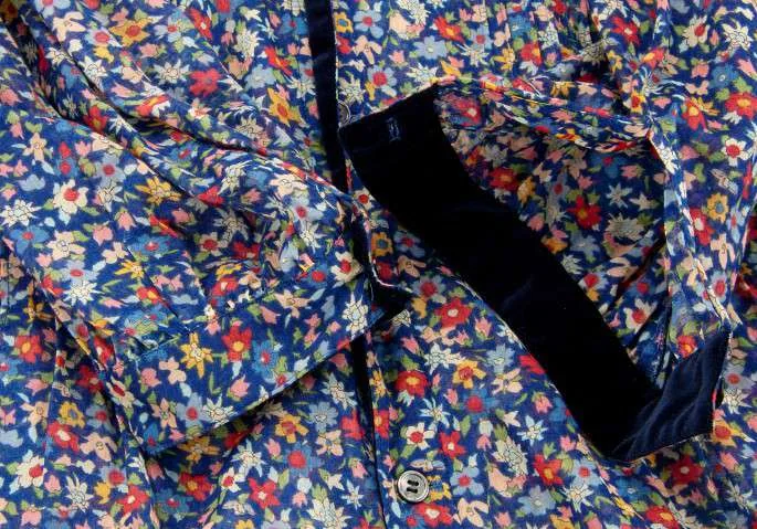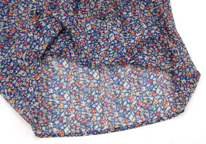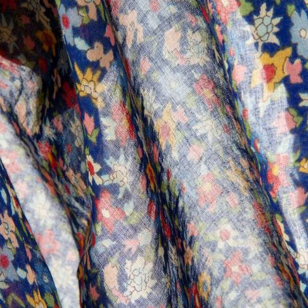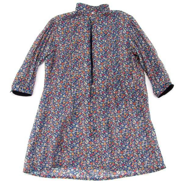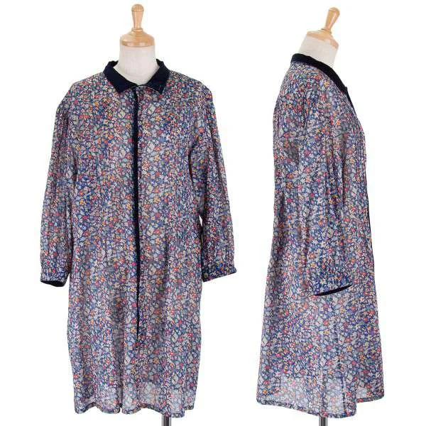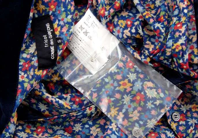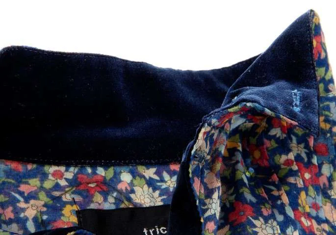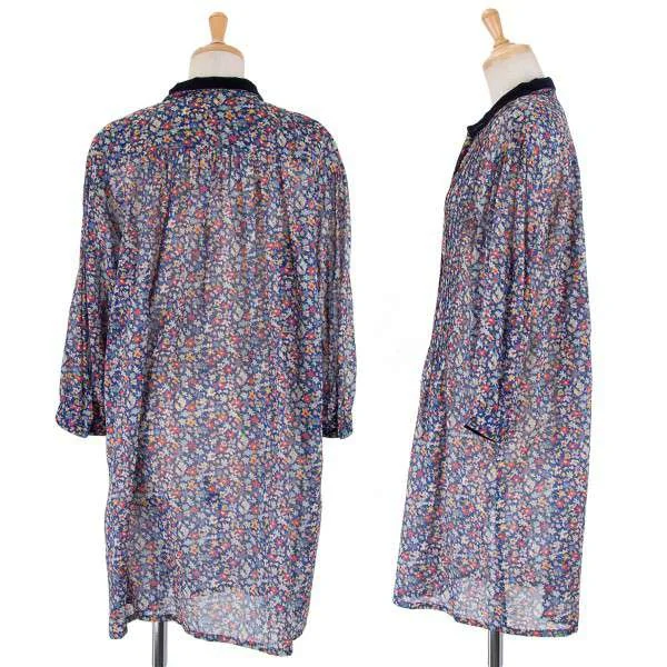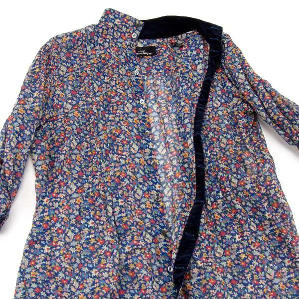 トリコ コムデギャルソンtricot COMME des GARCONS べロアテープ花柄シフォンチュニック 青系S