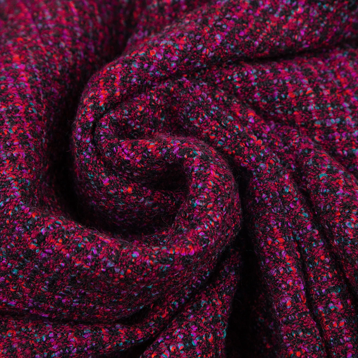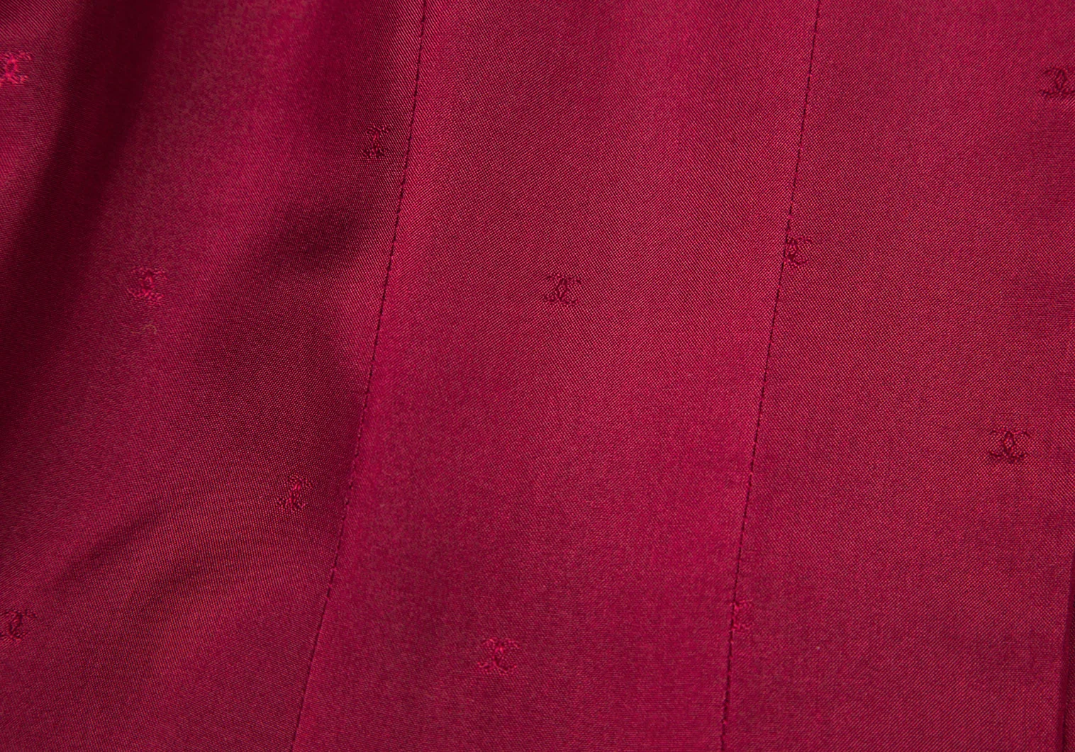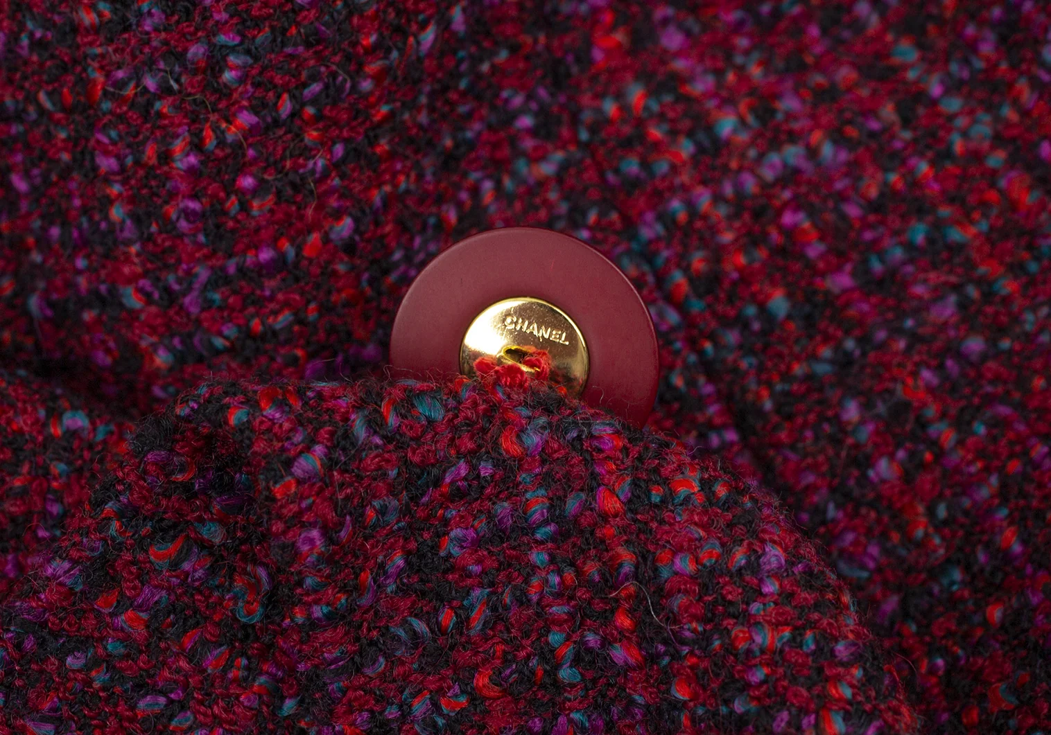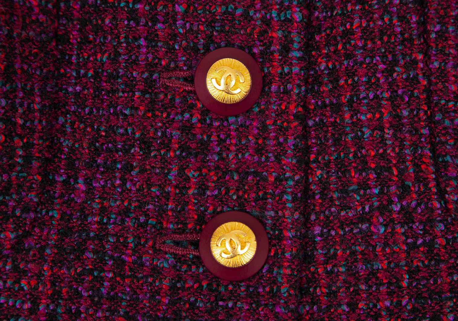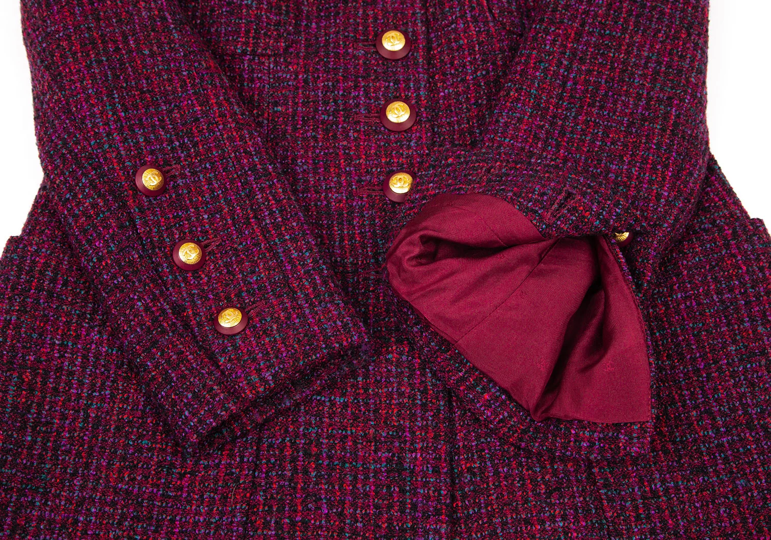 シャネルCHANEL ファンシーツイードノーカラーフレアロングジャケット 赤紫34