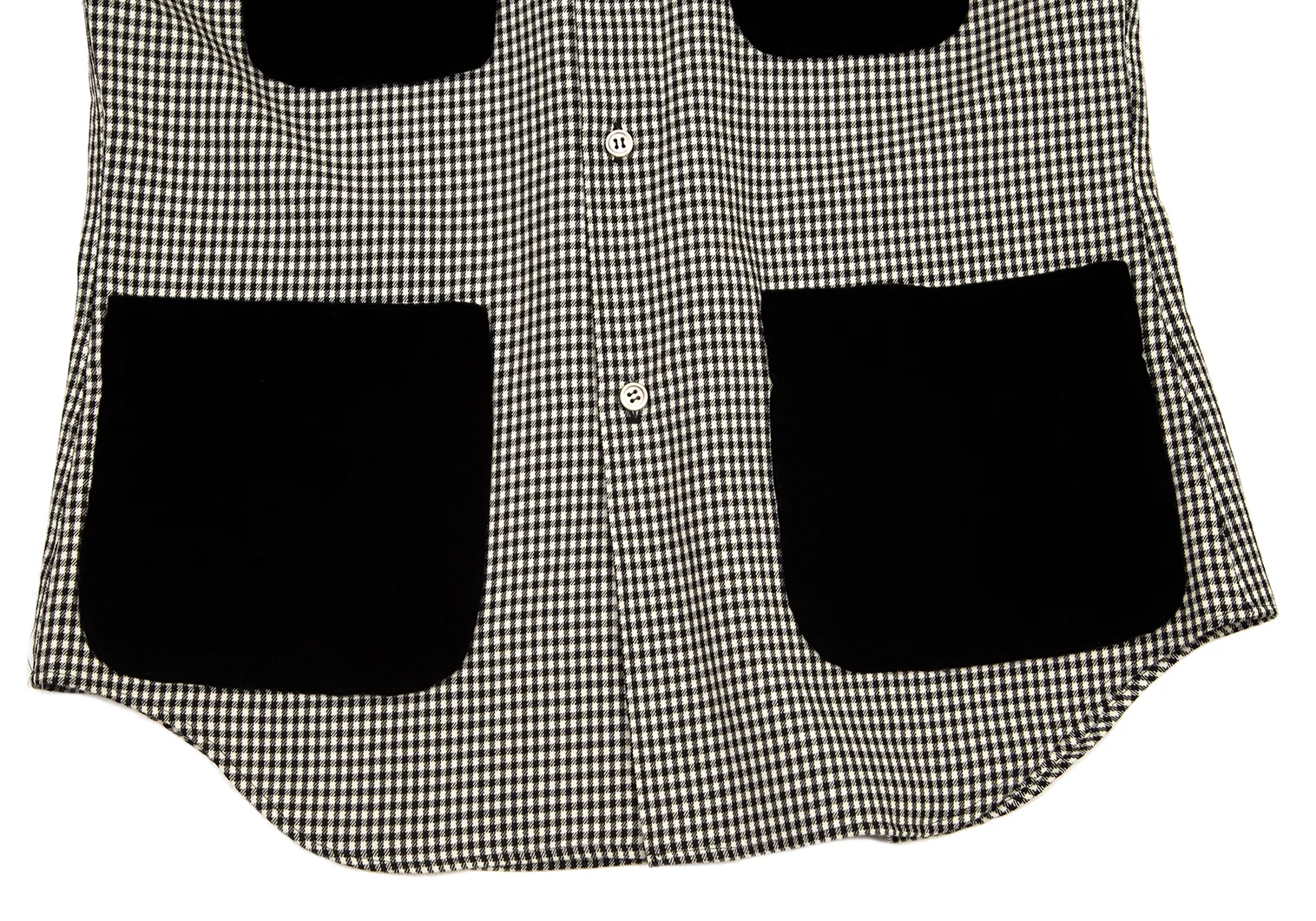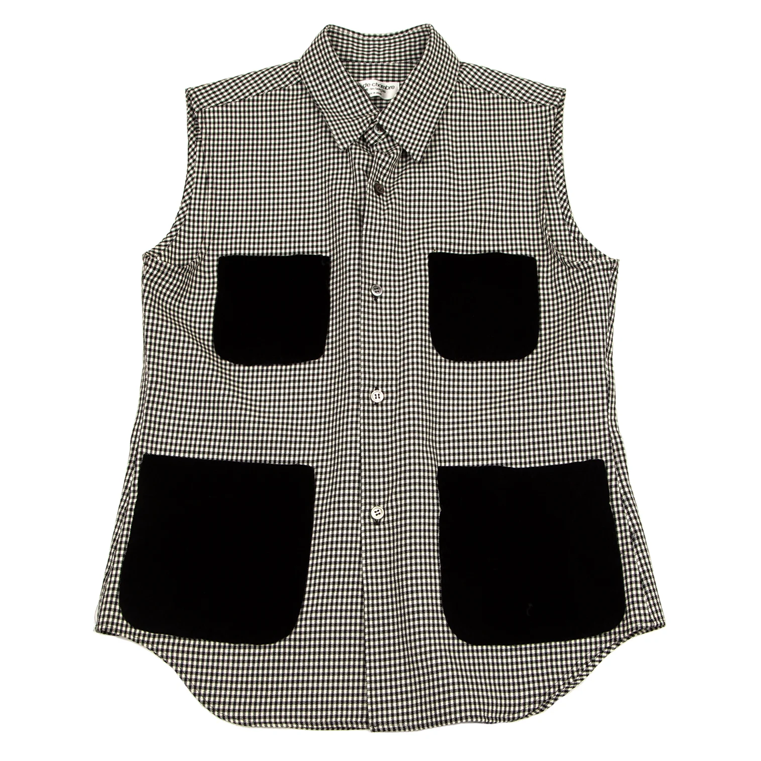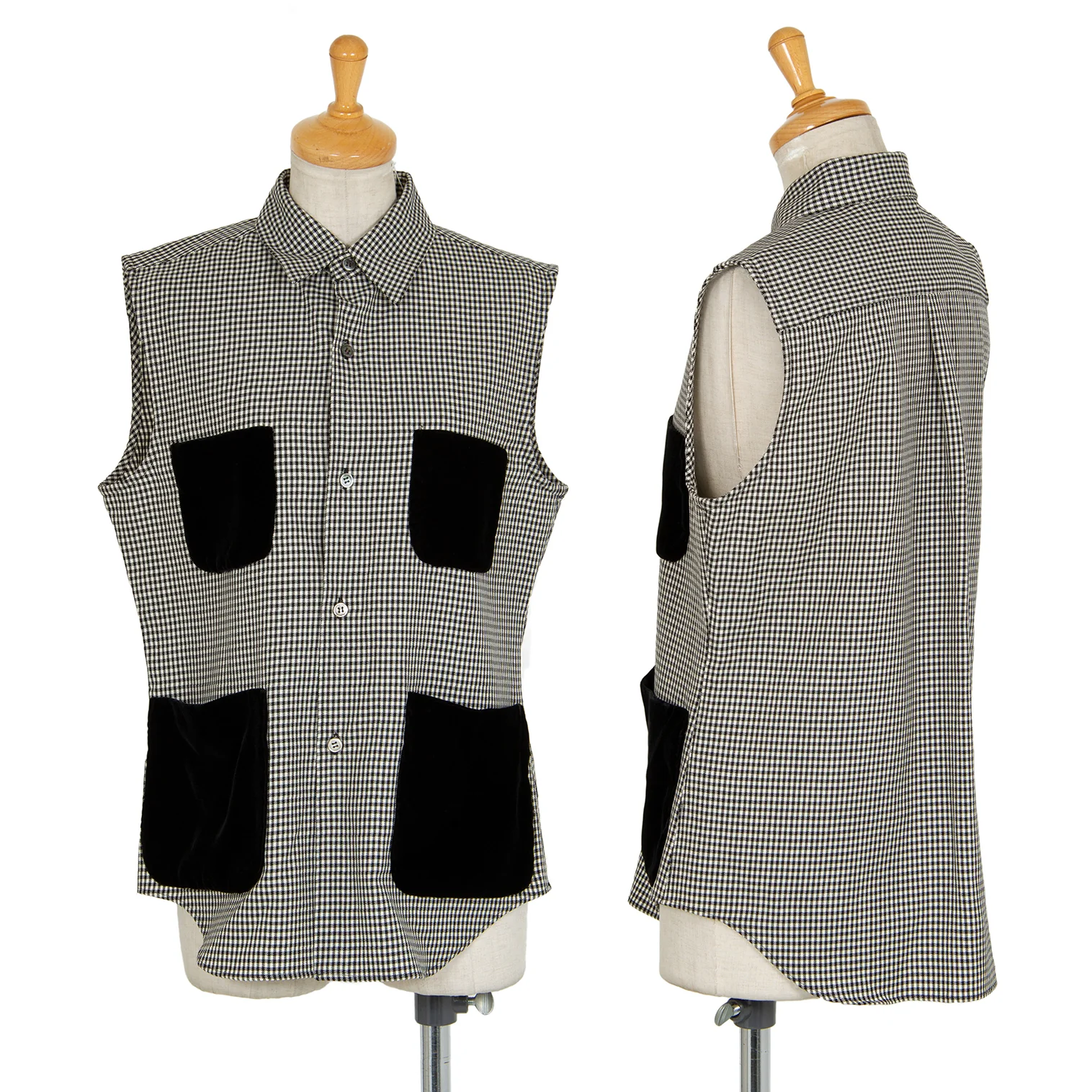 ローブドシャンブル コムデギャルソンrobe de chambre COMME des GARCONS ベロアポケットギンガムチェックノースリーブシャツ 白黒M位