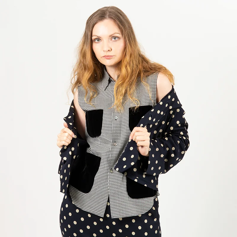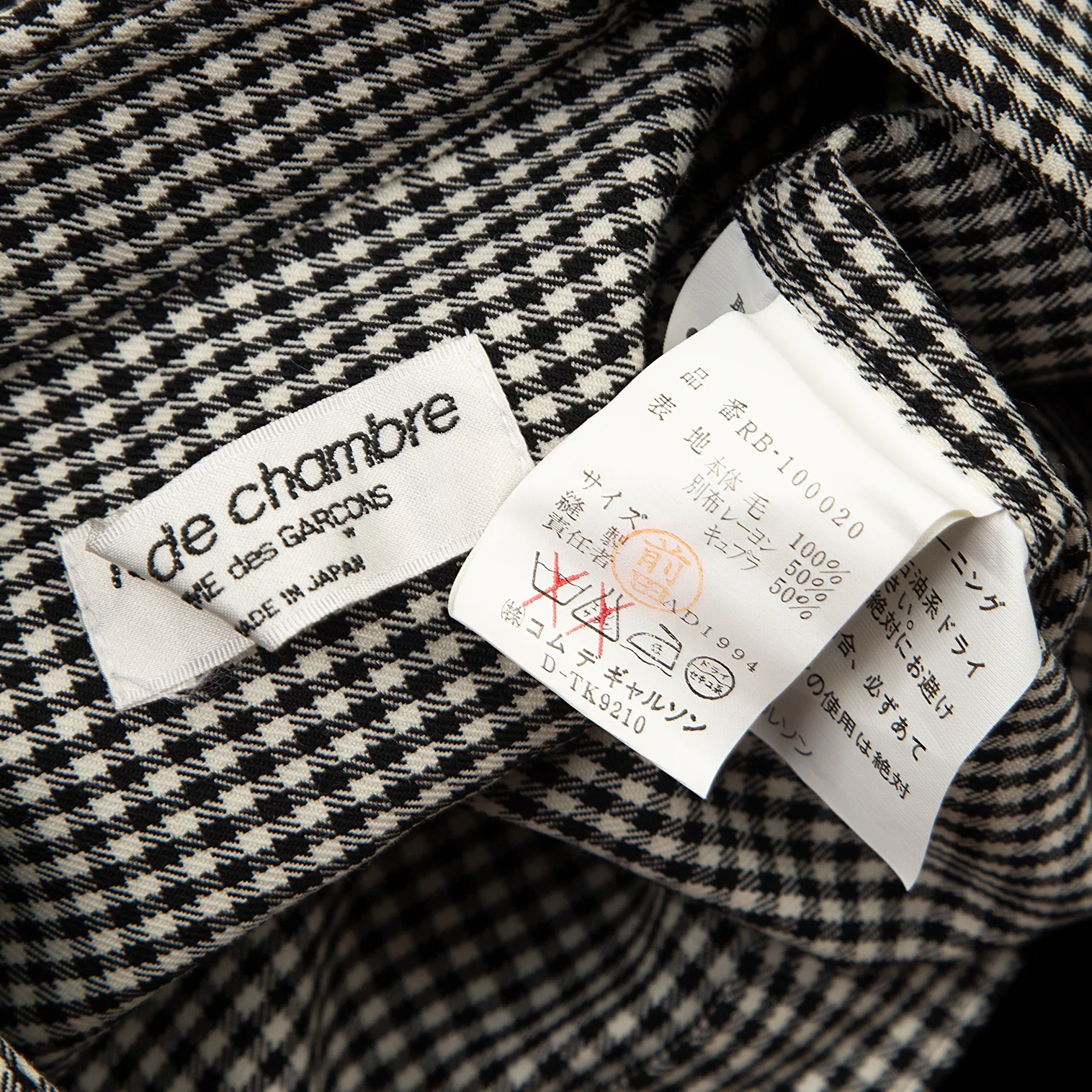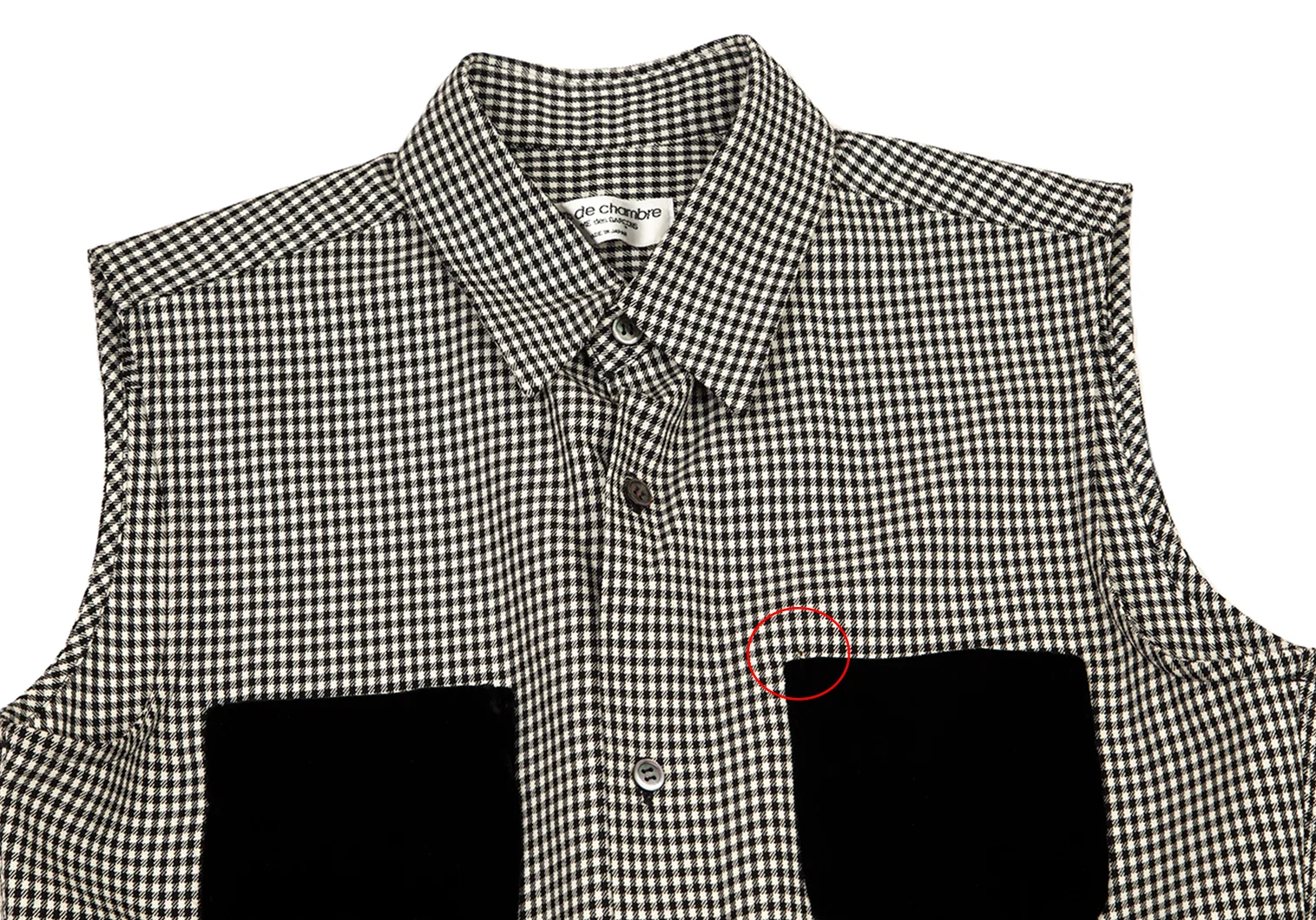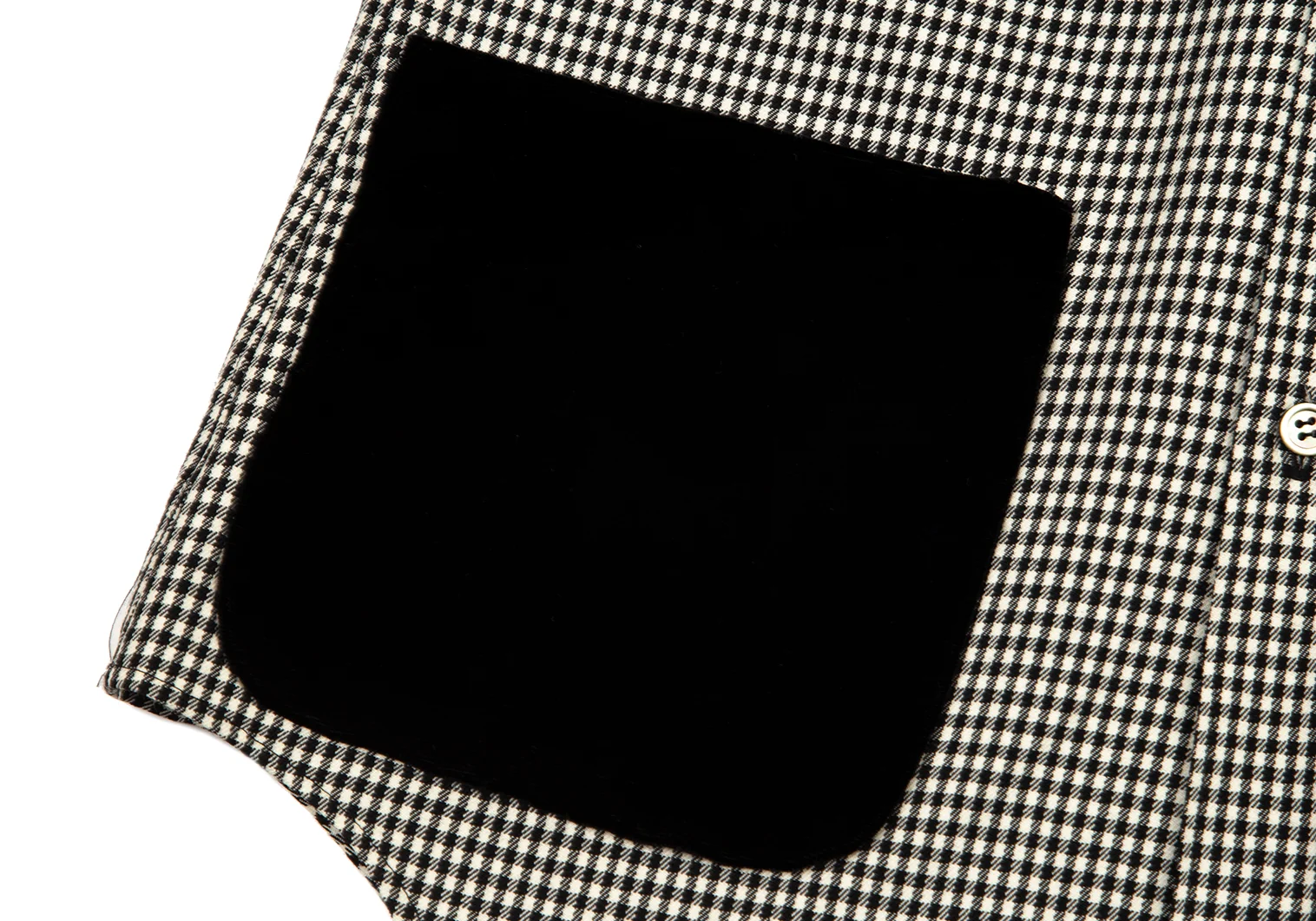 ローブドシャンブル コムデギャルソンrobe de chambre COMME des GARCONS ベロアポケットギンガムチェックノースリーブシャツ 白黒M位
