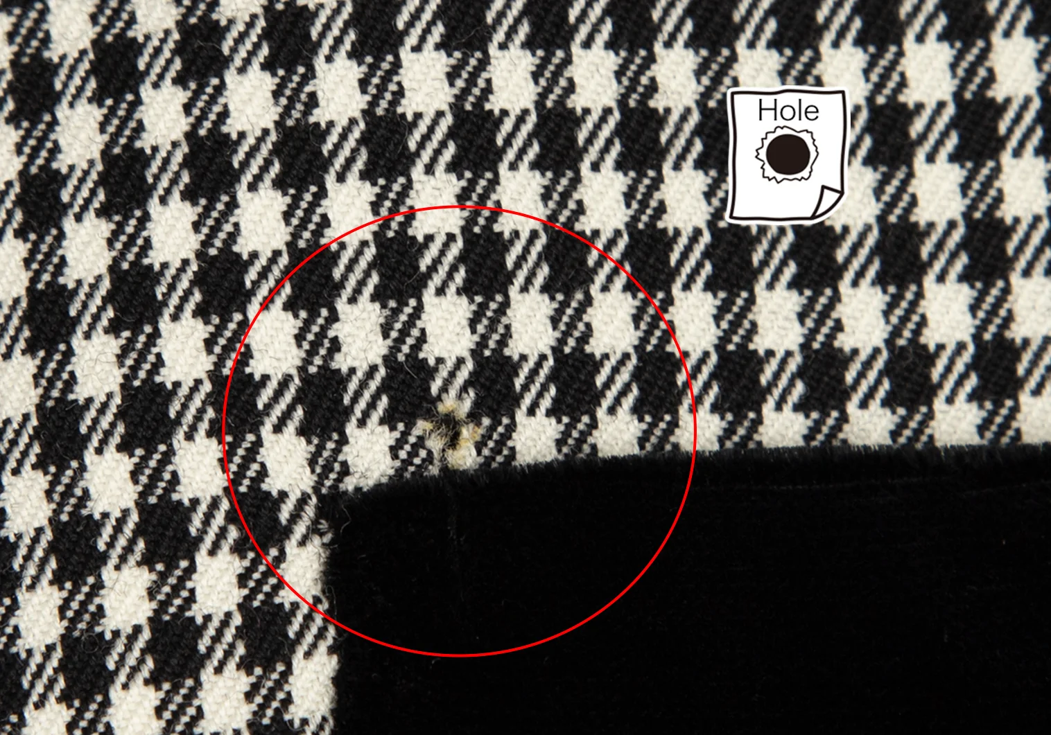 前身頃上部に小穴があります。(画像参照)その他目立ったシミ、汚れ、ほつれ等ありません。クリーニング済み