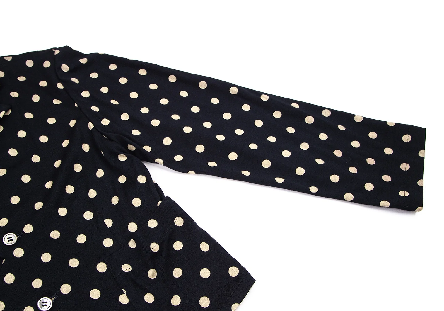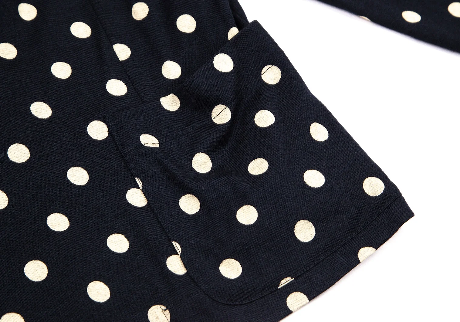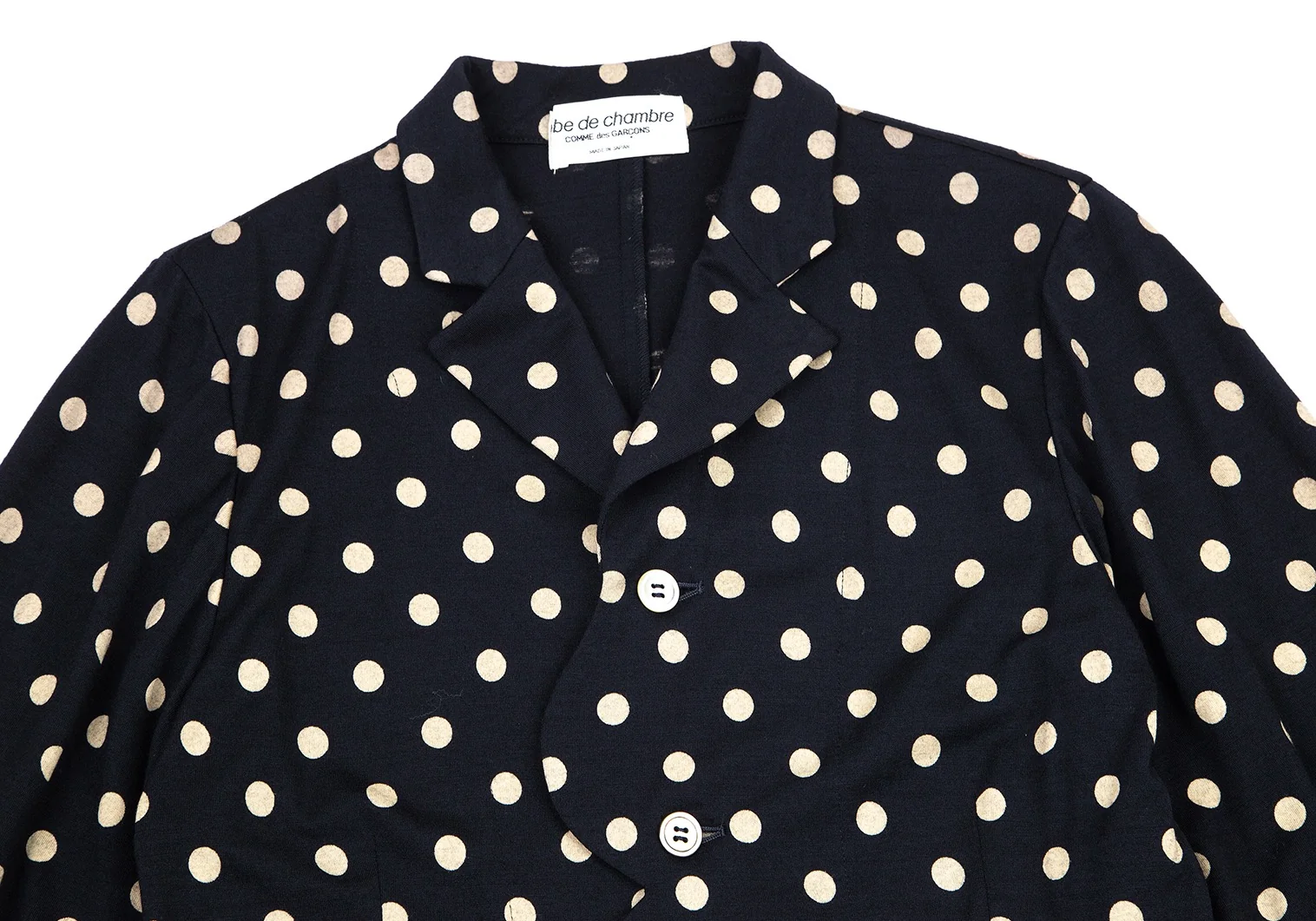ローブドシャンブル コムデギャルソンrobe de chambre COMME des GARCONS ウール天竺フロント波カットドット抜染ジャケット ネイビーM位