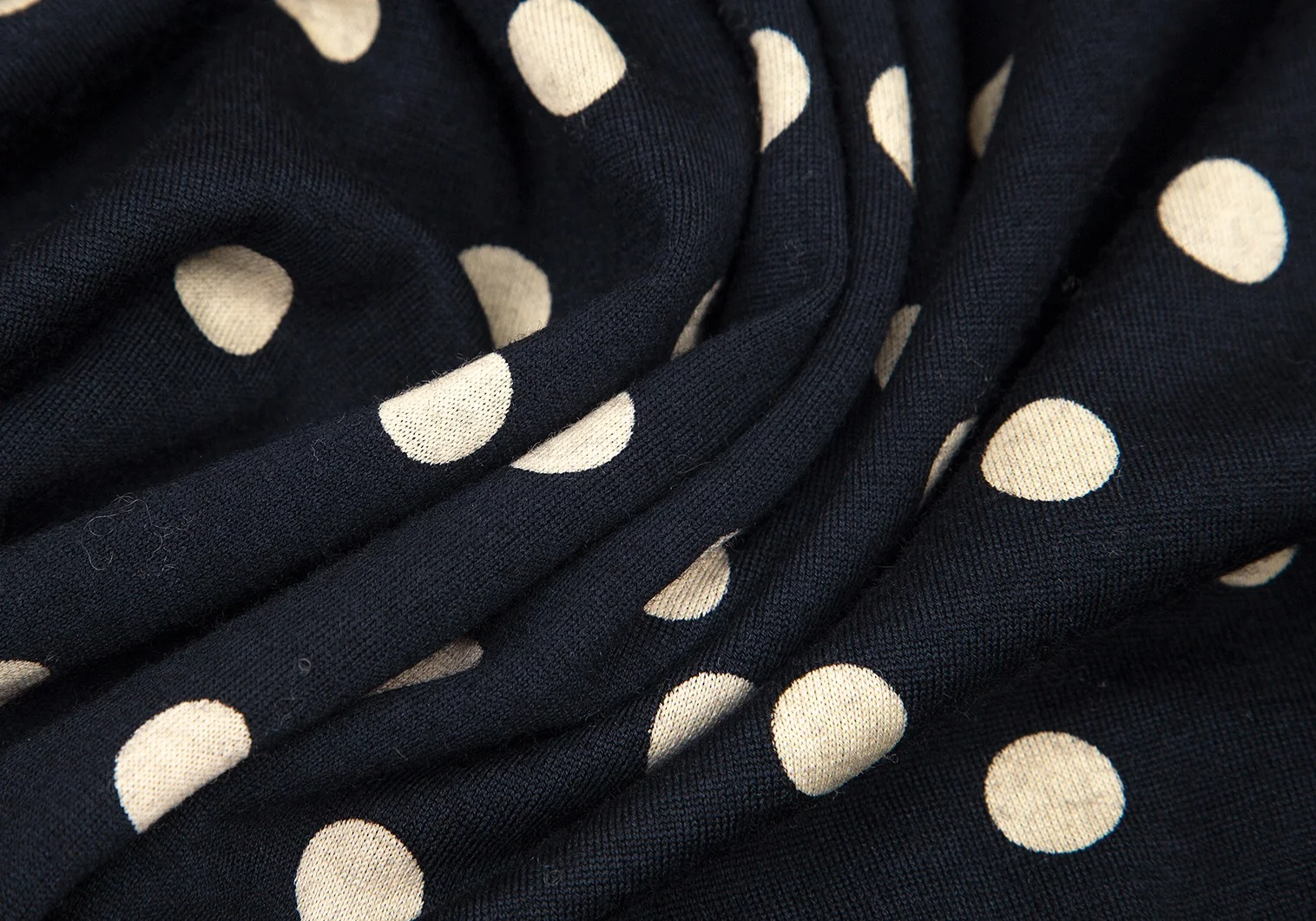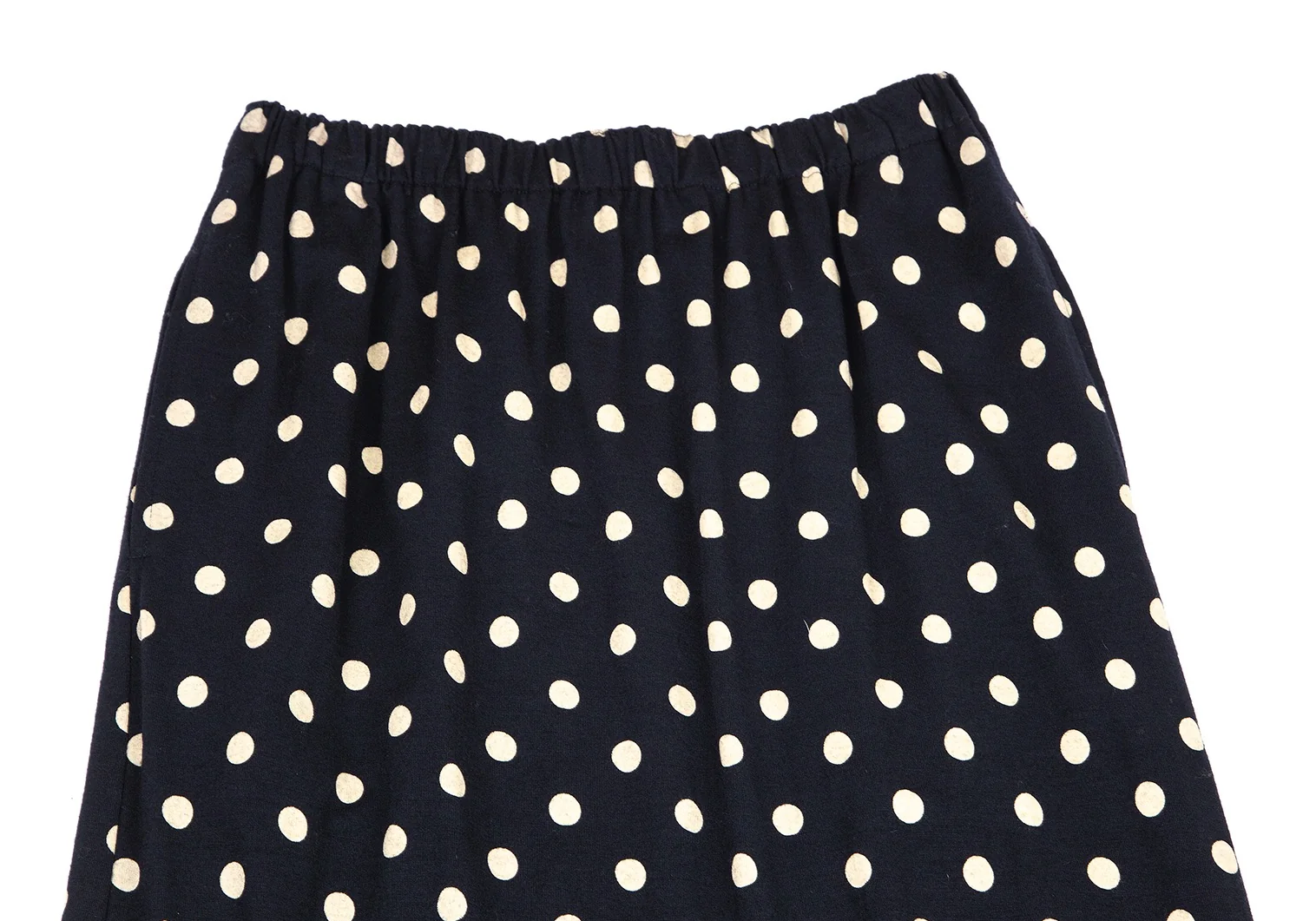 ローブドシャンブル コムデギャルソンrobe de chambre COMME des GARCONS ウール天竺ドット抜染スカート ネイビーM位