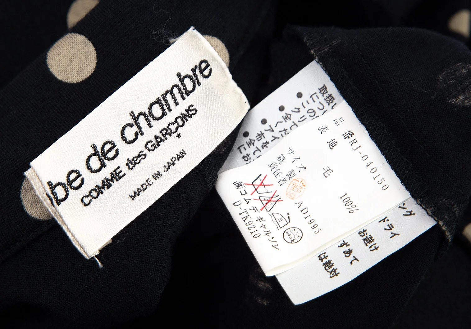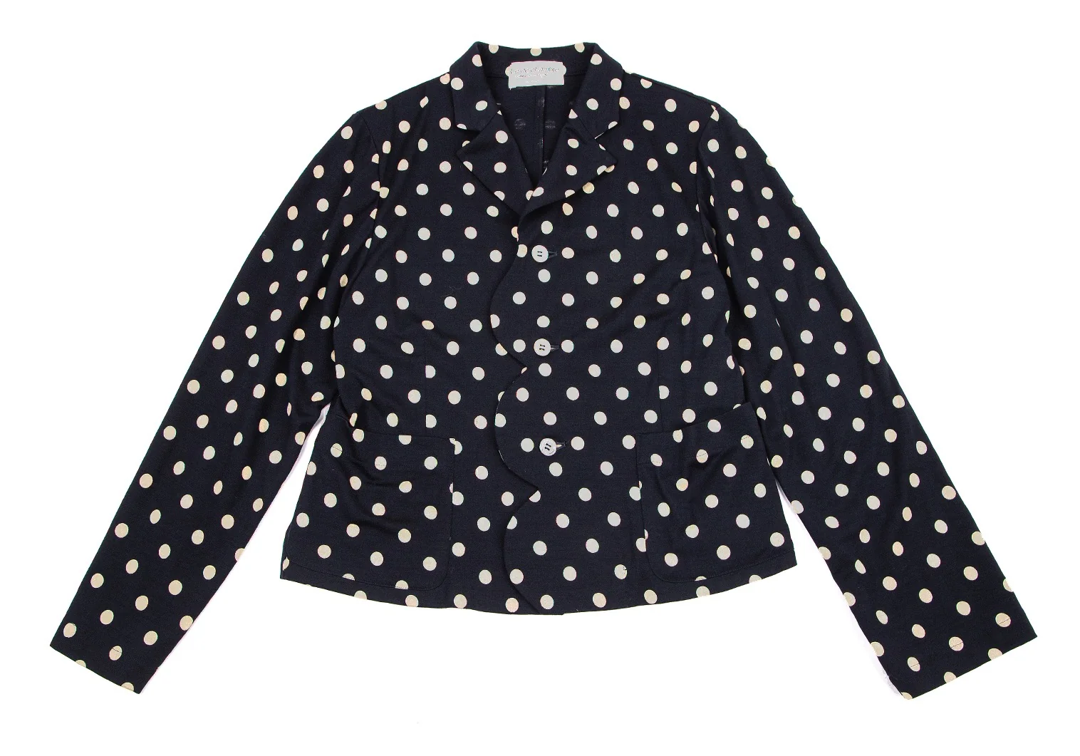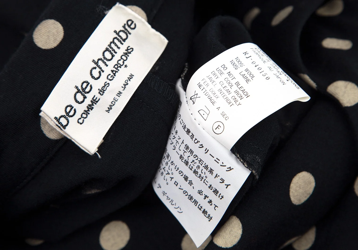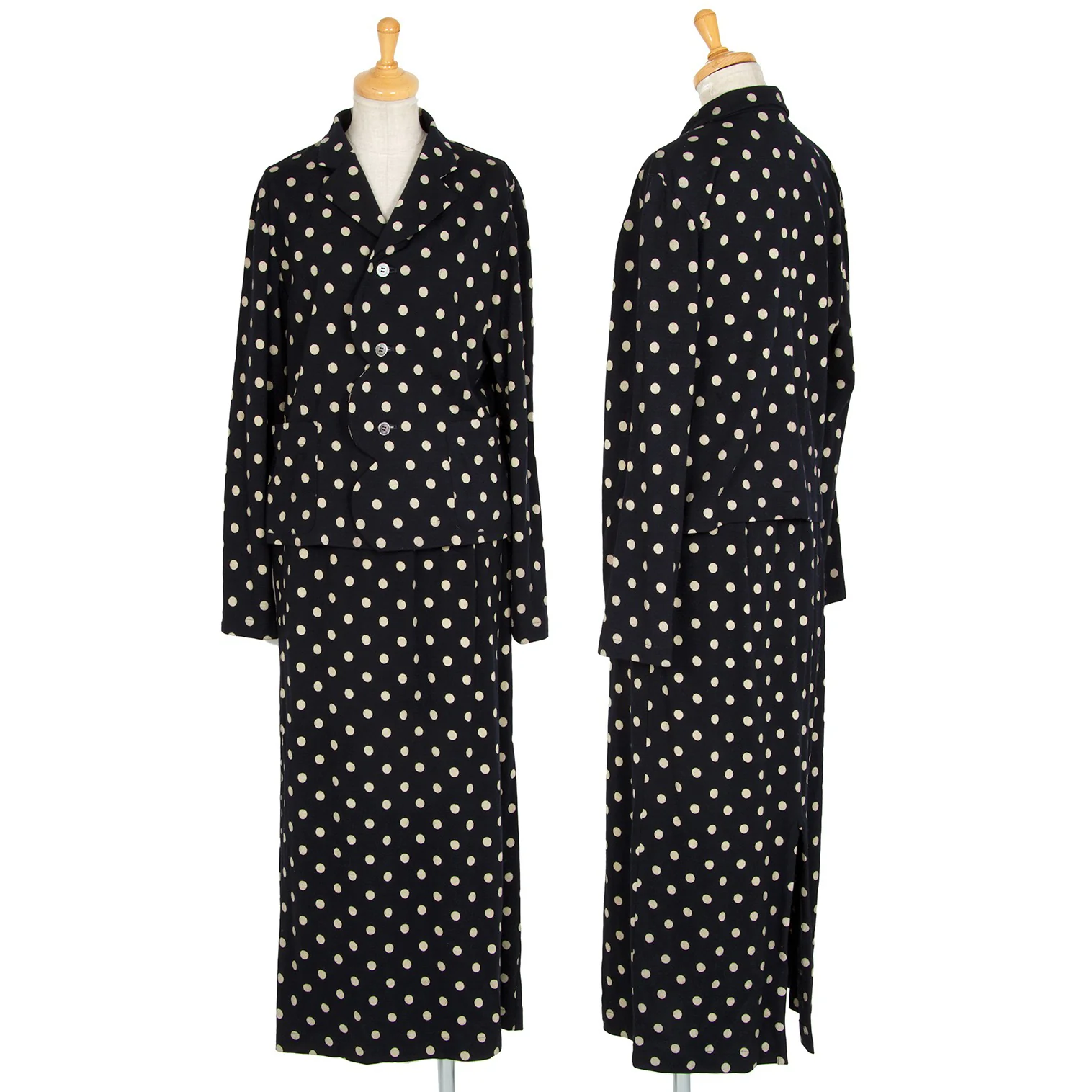 ローブドシャンブル コムデギャルソンrobe de chambre COMME des GARCONS ウール天竺ドット抜染セットアップスーツ ネイビーM位