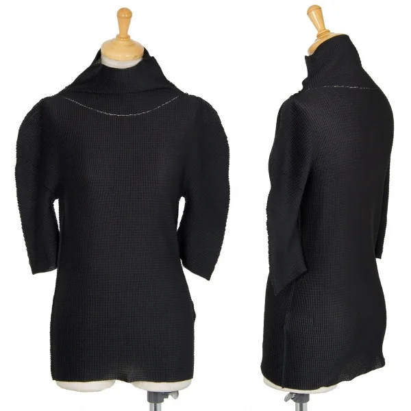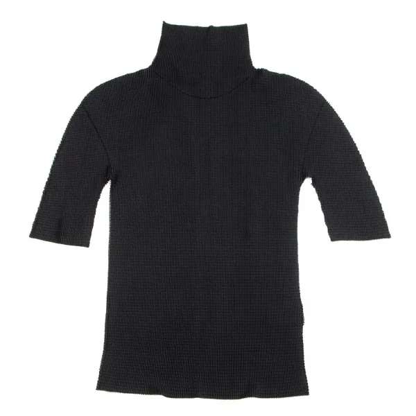 イッセイミヤケ ミーISSEY MIYAKE me A-POC メッシュニットプリーツハイネックTシャツ 黒M位