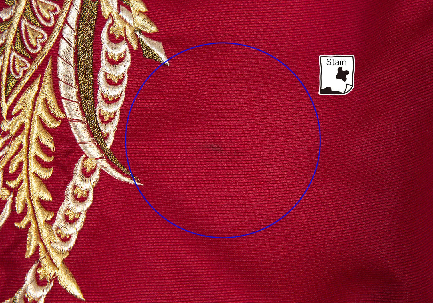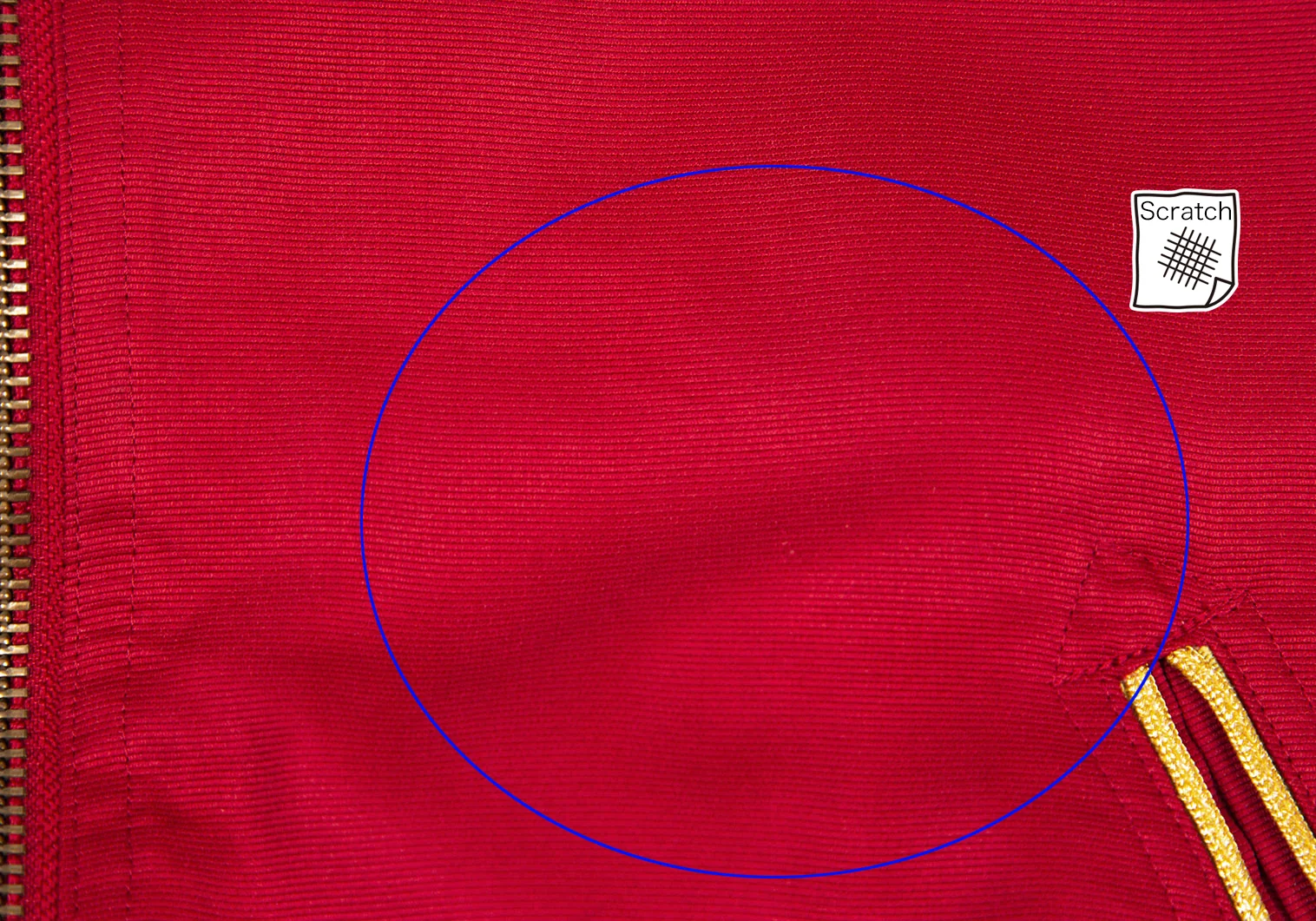 後ろに汚れ、左ポケット上部に毛羽立ちがあります(写真参照)。その他に目立ったシミ、汚れ、ほつれ等はありません。クリーニング済み