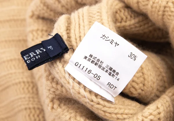 バーバリーBURBERRY LONDON カシミヤ混ウールタートルリブニットセーター ベージュF