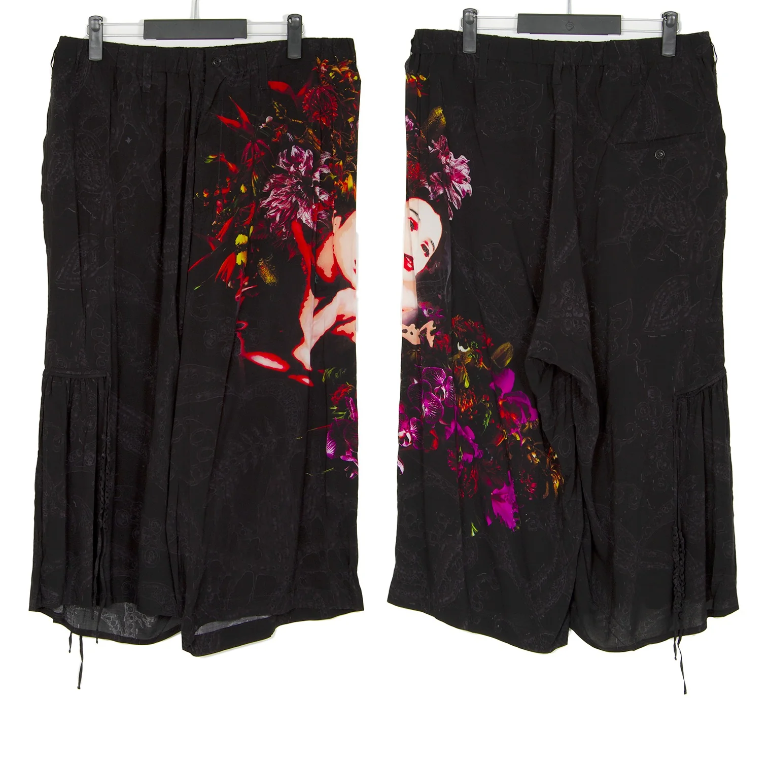 ブラックスキャンダル ヨウジヤマモトBLACK Scandal Yohji Yamamoto レーヨンフラワープリントクロップドワイドパンツ 黒他3