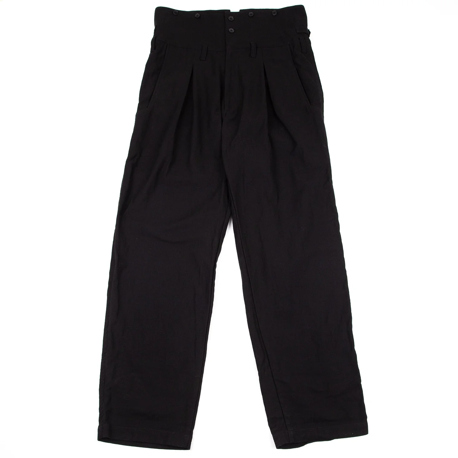 ヨウジヤマモト プールオムYohji Yamamoto POUR HOMME コットンハイウエストサスペンダーボタンパンツ 黒4