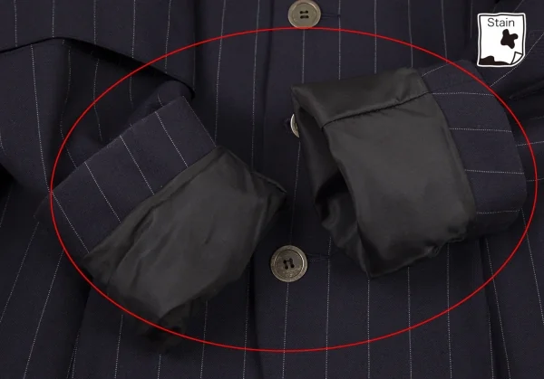 ジャケット:右袖先に小穴、袖裏に薄汚れがあります(写真参照)。その他に目立ったシミ、汚れ、ほつれ等なくいい状態です。クリーニング済み