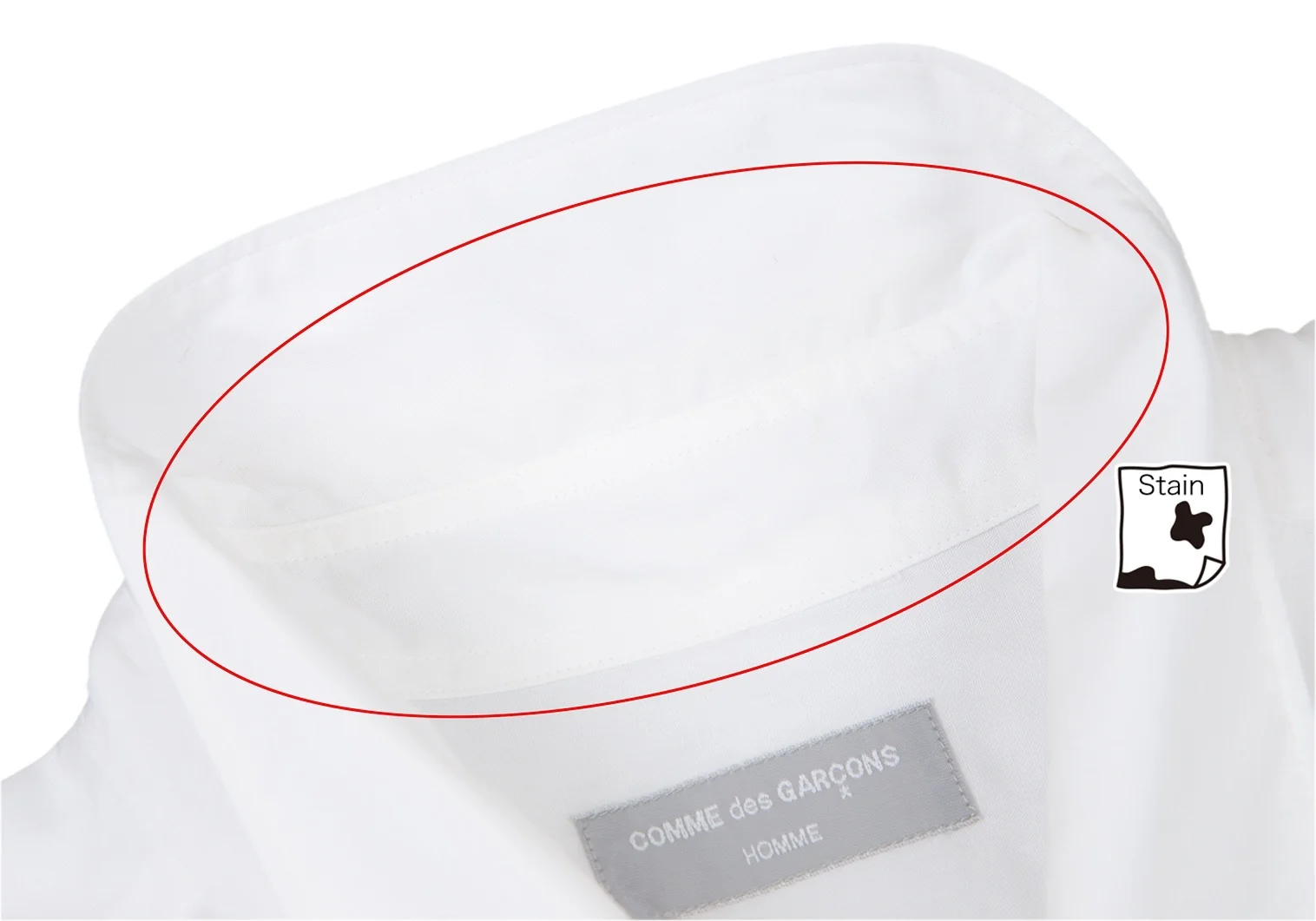 少し透け感のある生地です。右脇・首裏に薄シミがあります(画像参照)。その他目立ったシミ、汚れ、ほつれ等ありません。クリーニング済み