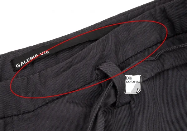 ウエストに色褪せ、裾にスレ・アタリがあります(写真参照)。その他、目立ったシミ、汚れ、ほつれ等はありません。クリーニング済み