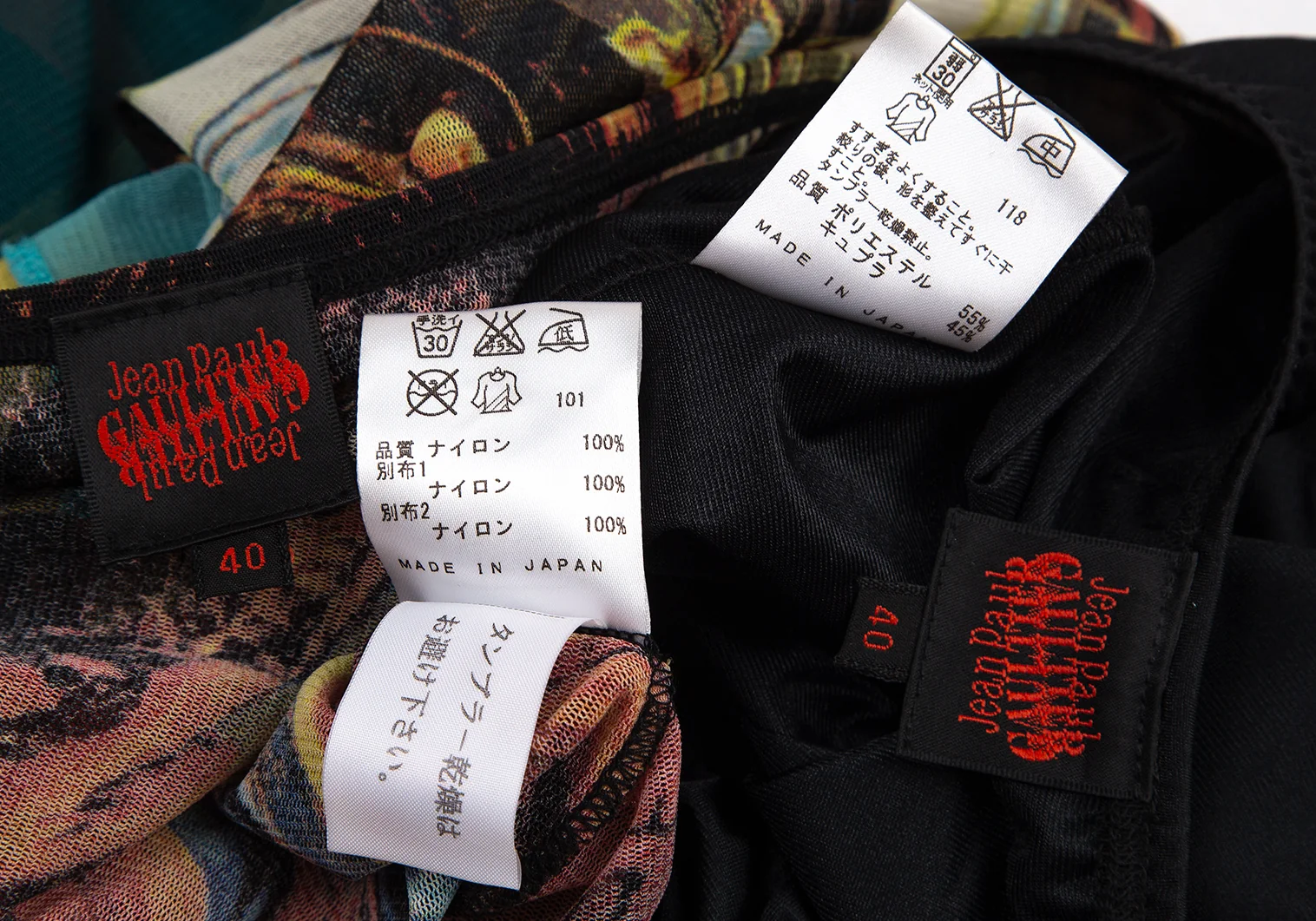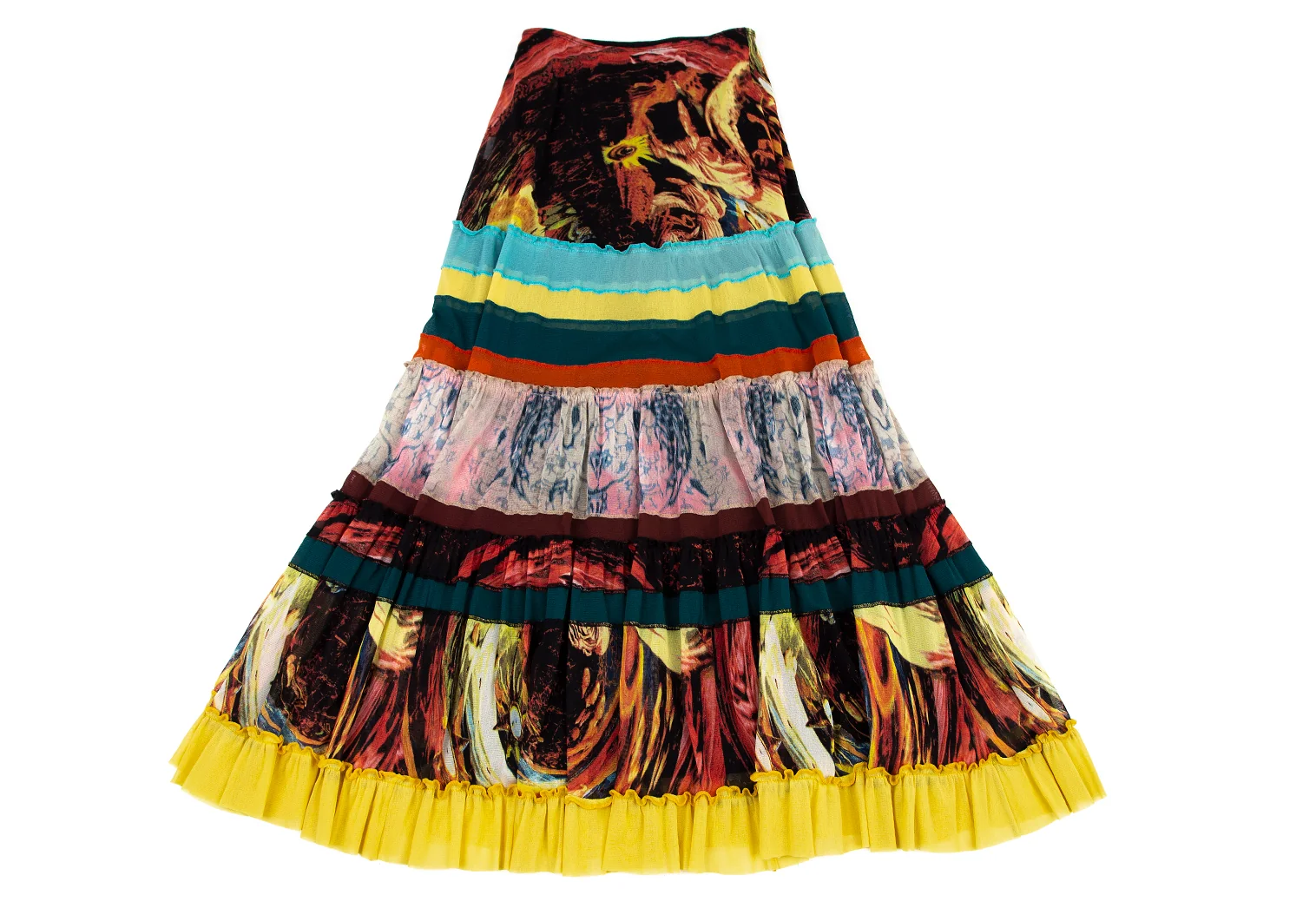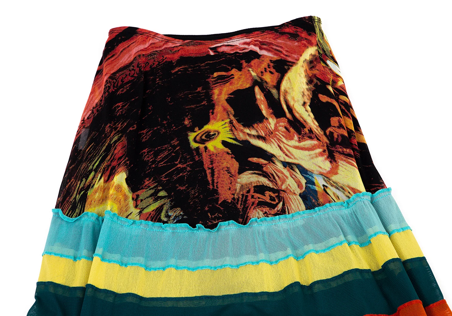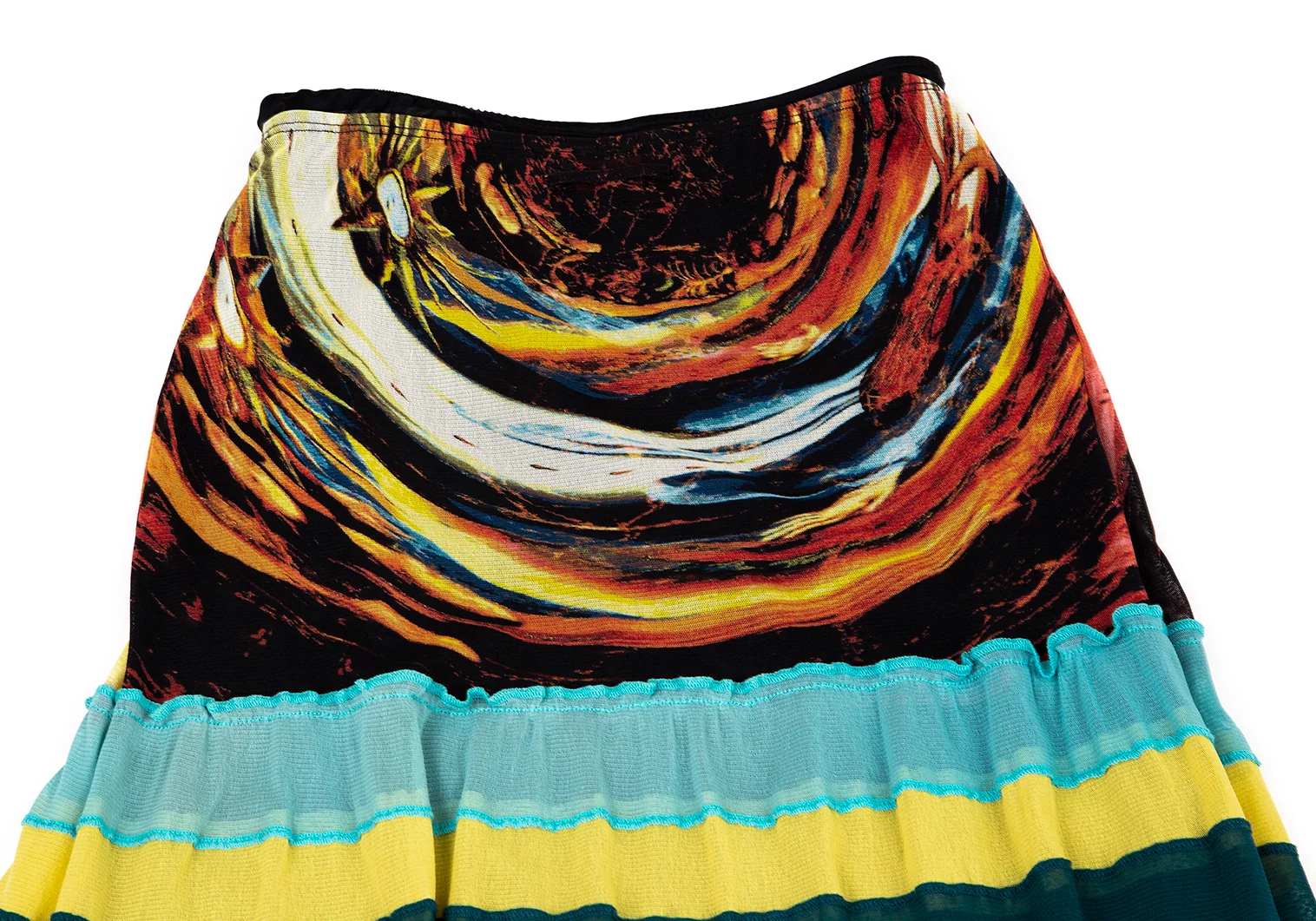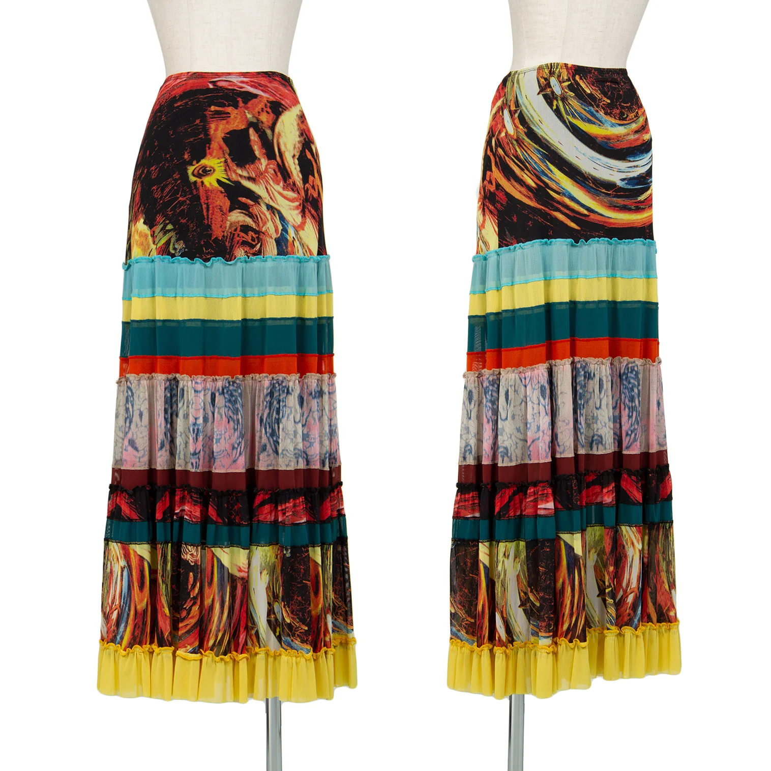 ジャンポールゴルチエJean Paul GAULTIER グラフィックプリントパワーネットボーダー切替スカート マルチ40