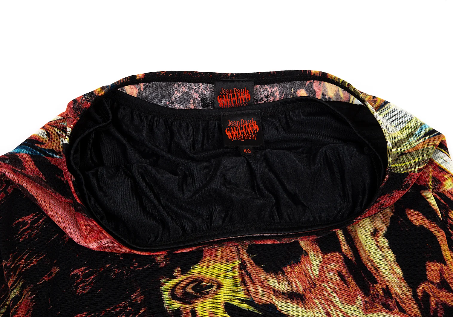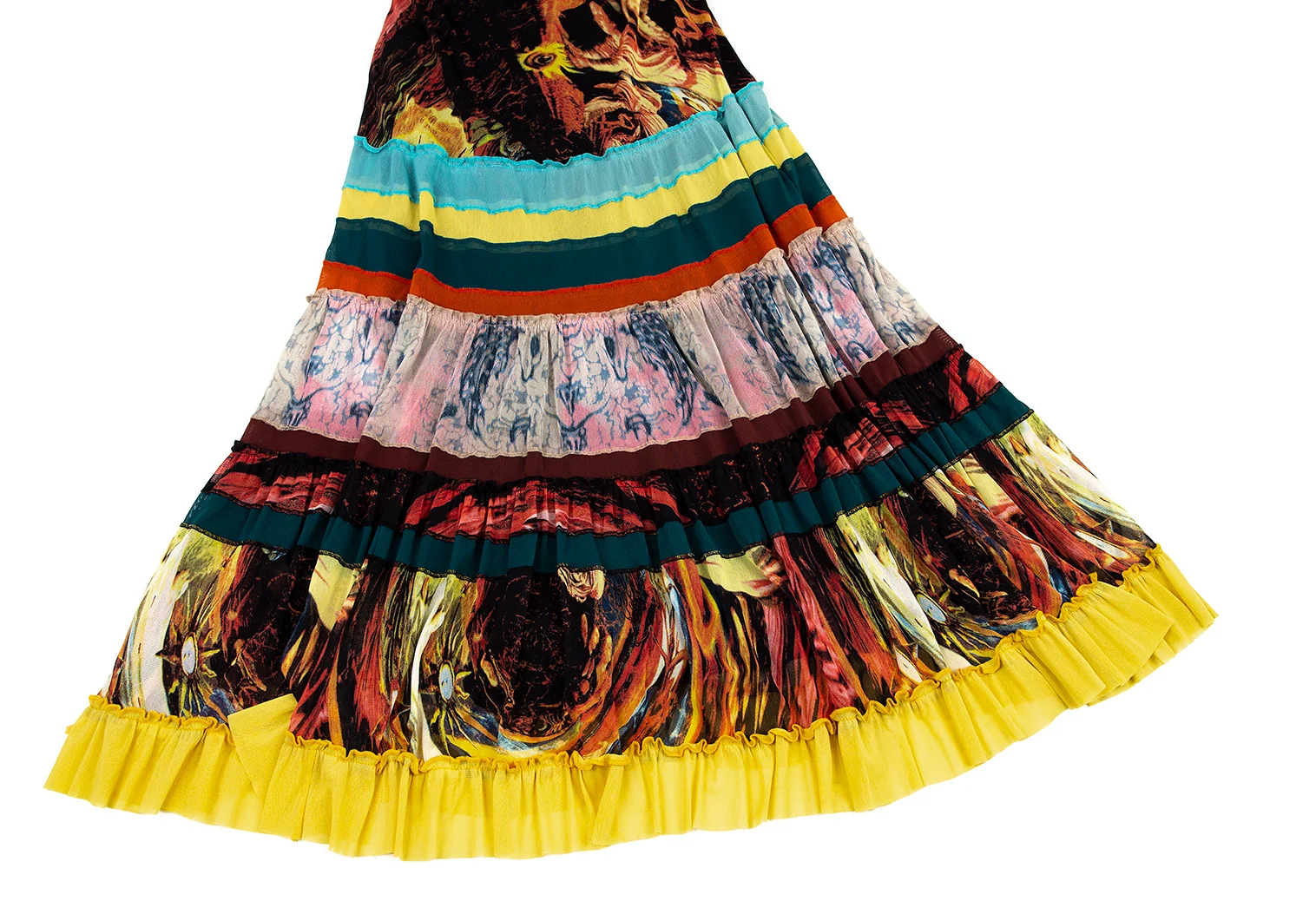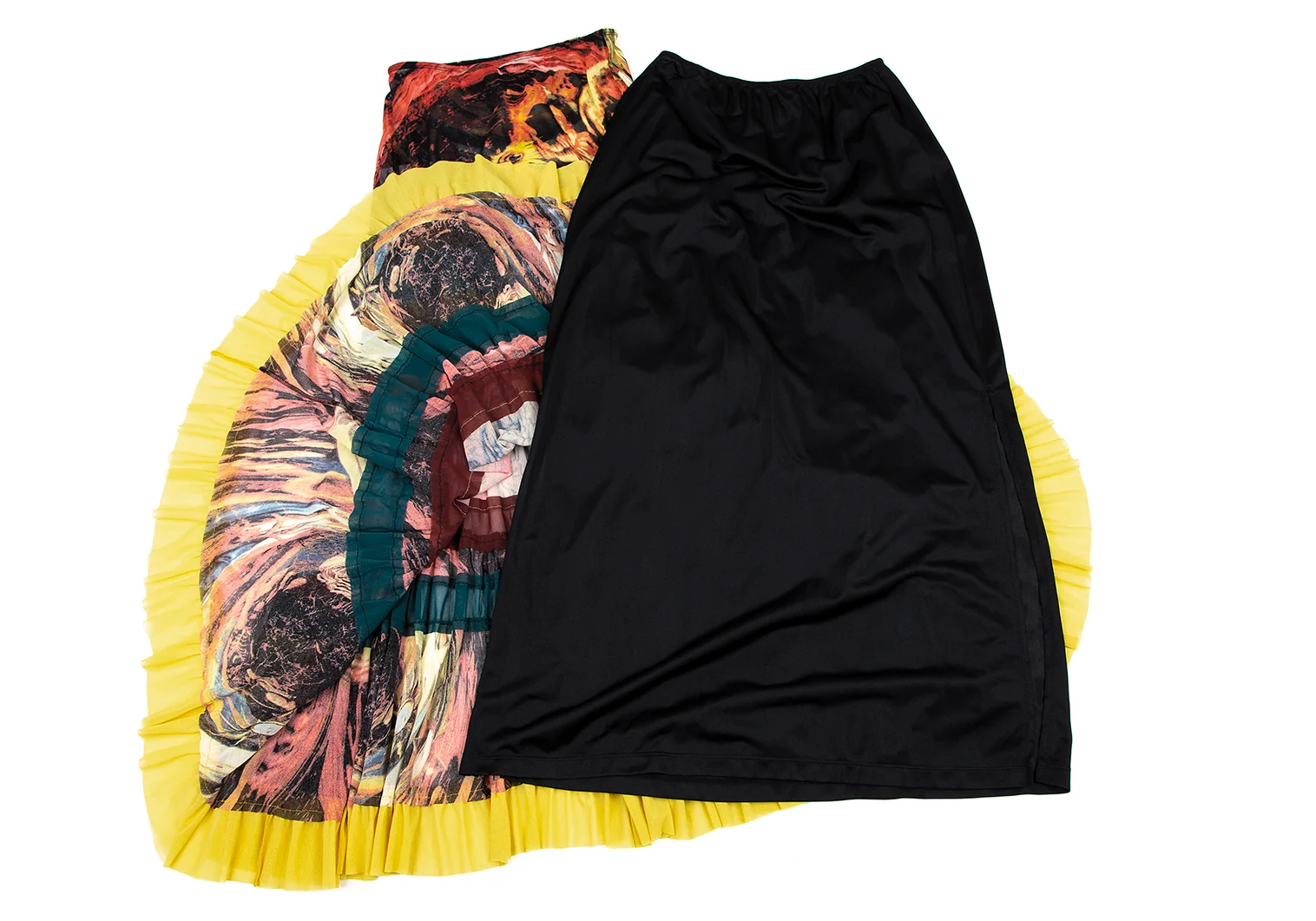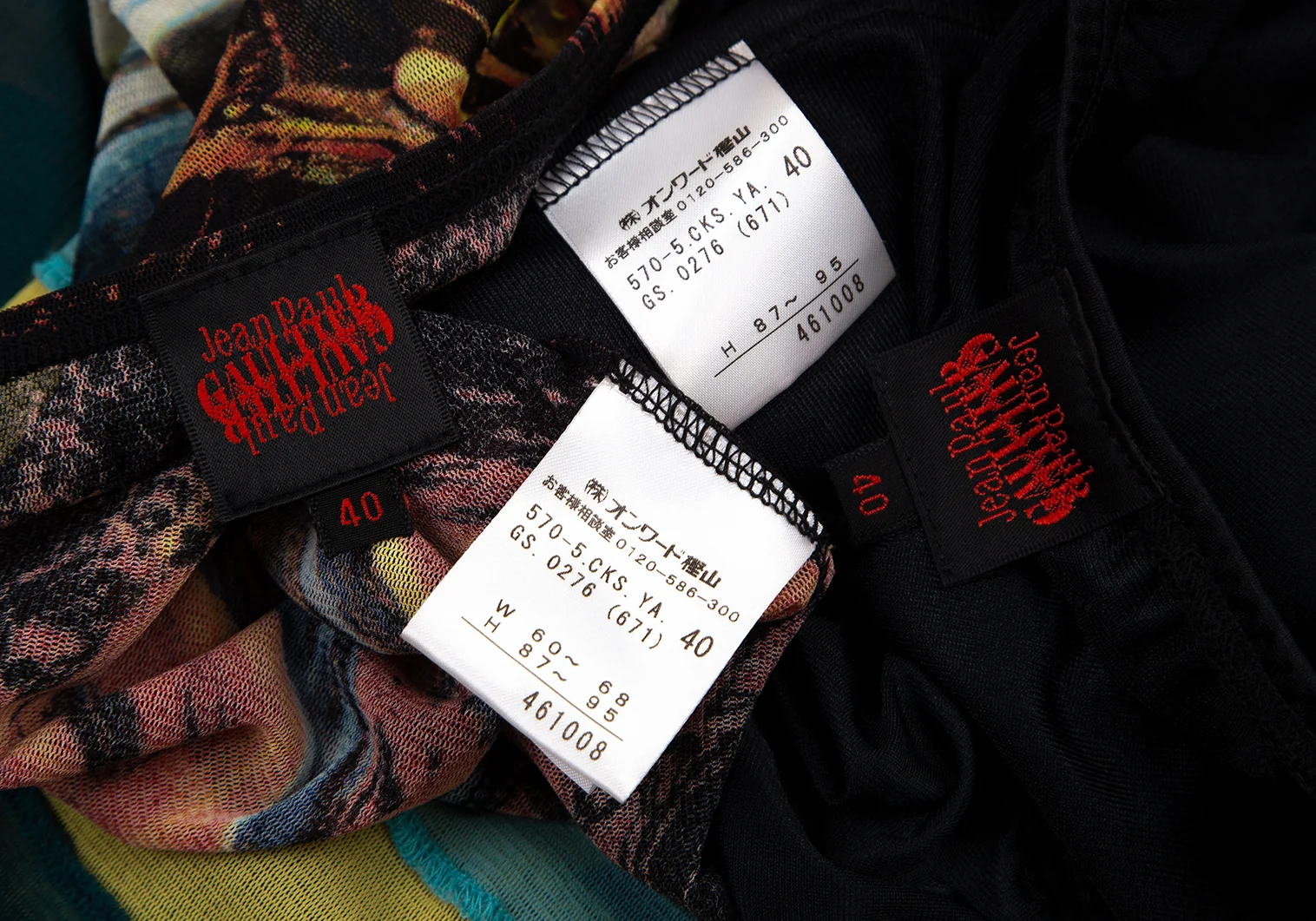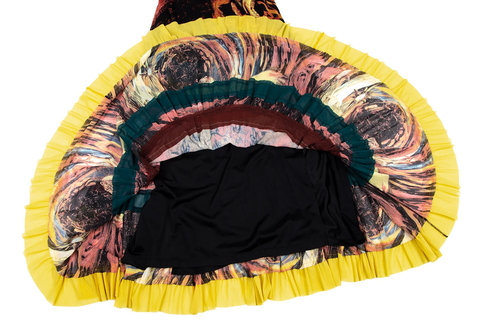 ジャンポールゴルチエJean Paul GAULTIER グラフィックプリントパワーネットボーダー切替スカート マルチ40