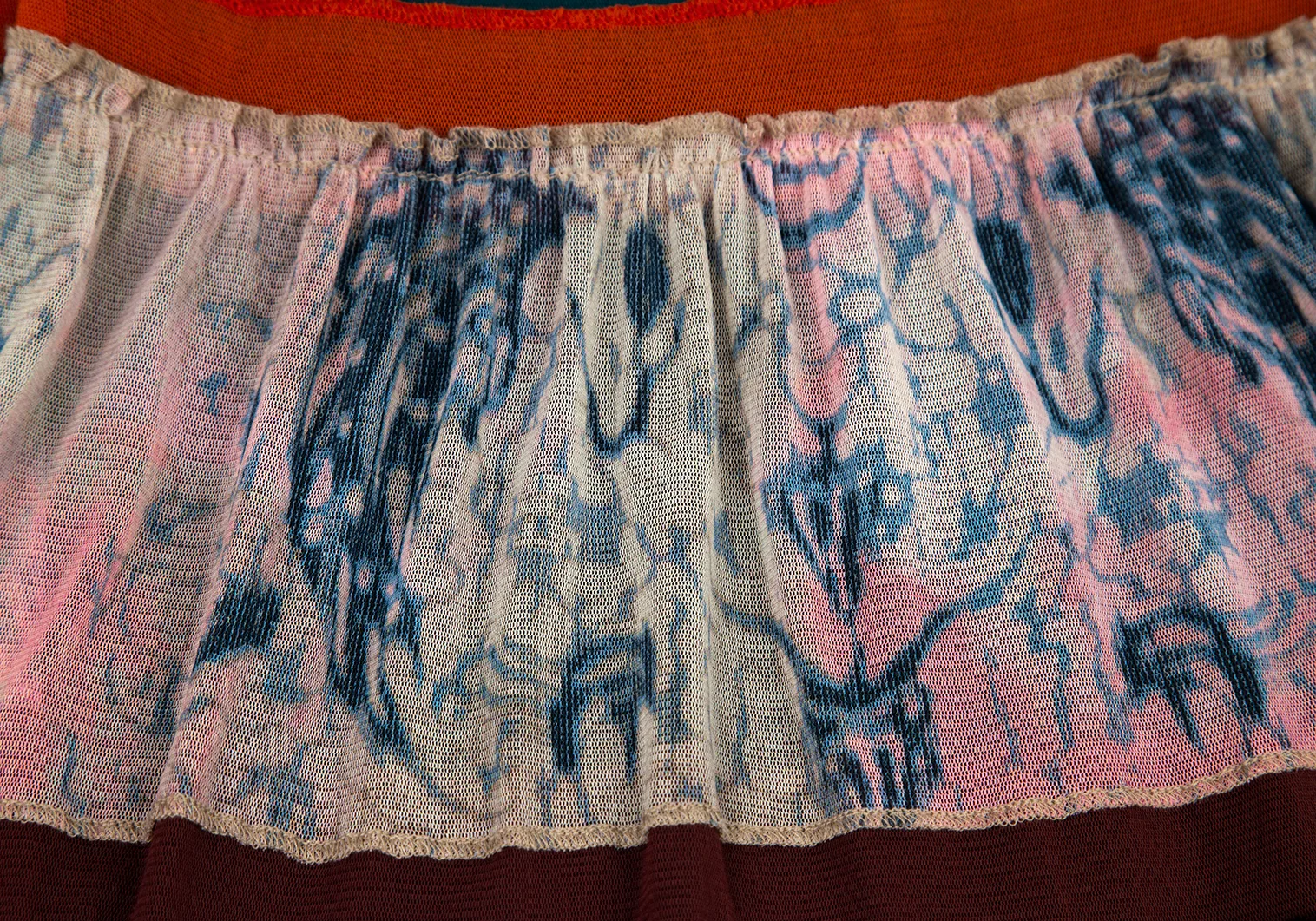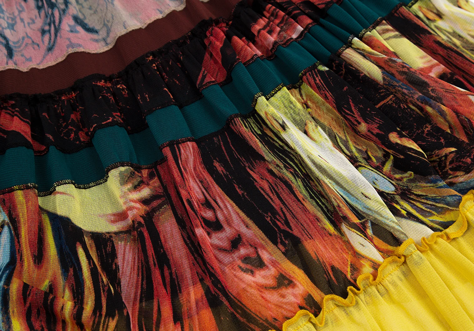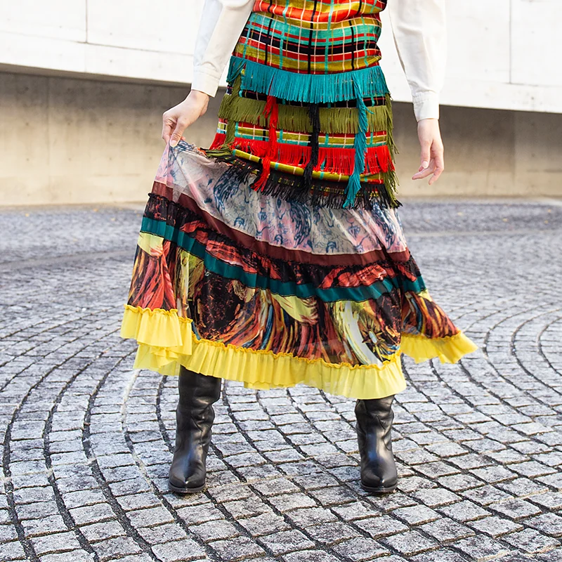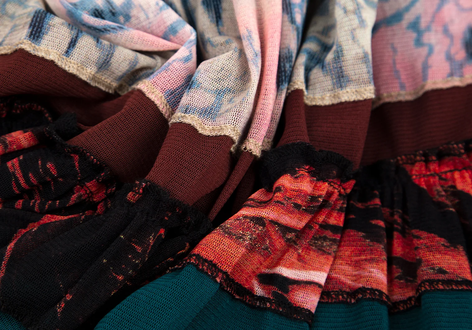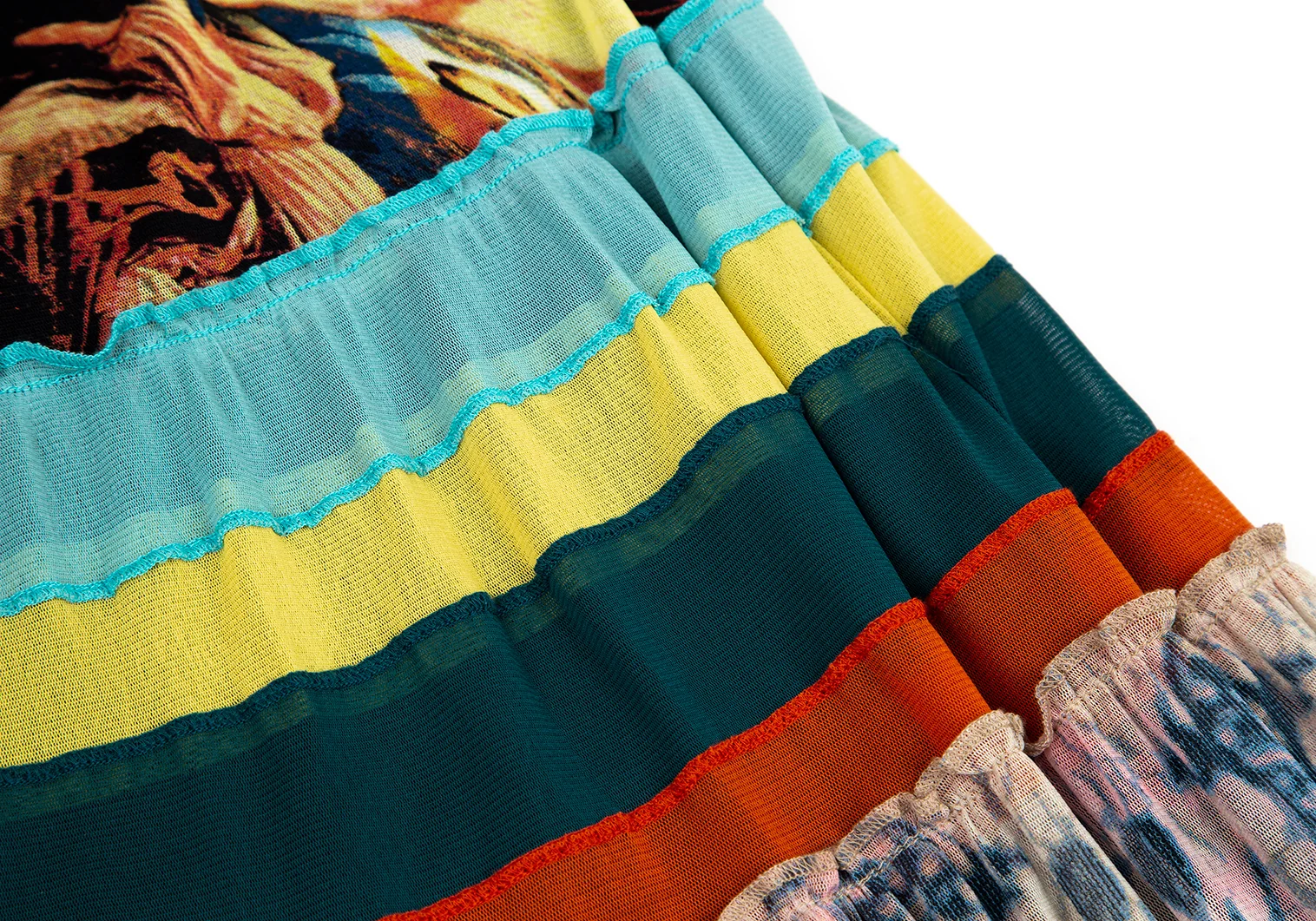 ジャンポールゴルチエJean Paul GAULTIER グラフィックプリントパワーネットボーダー切替スカート マルチ40