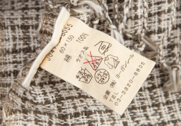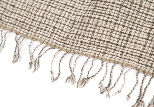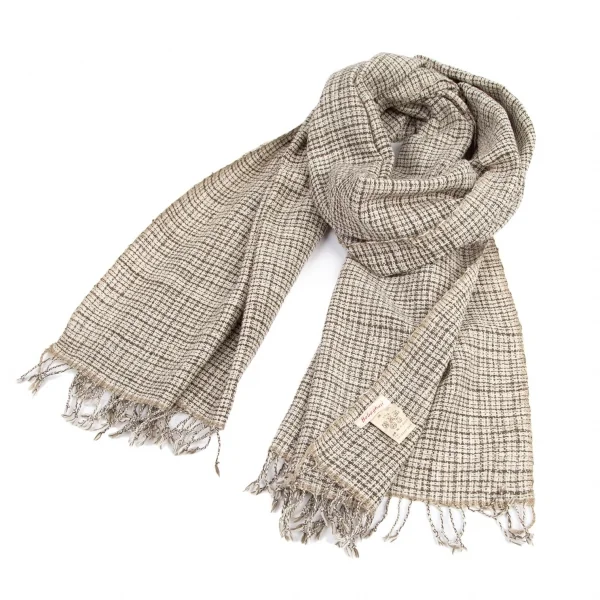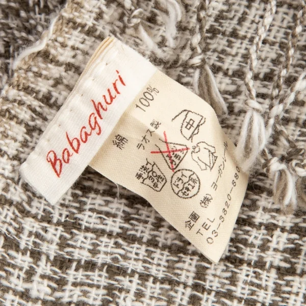 ヨーガンレール ババグーリJURGEN LEHL Babaghuri チェック織りフリンジコットンストール カーキオフ60×150