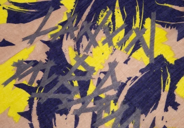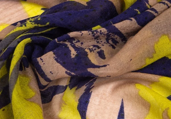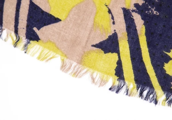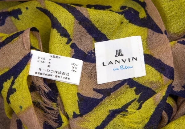 ランバンオンブルーLANVIN en Bleu グラフィックプリントストール モカ紺イエロー