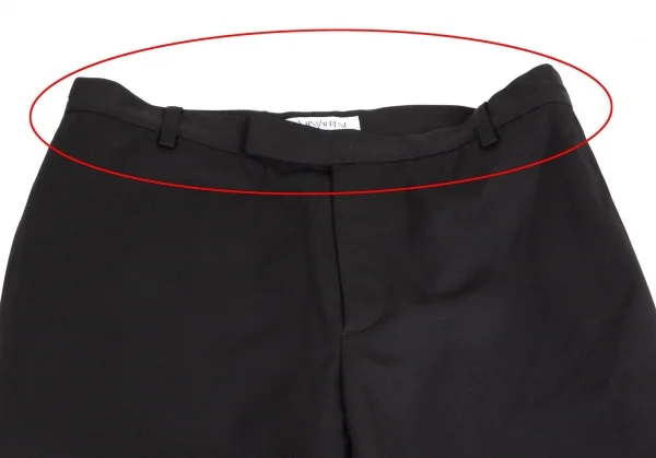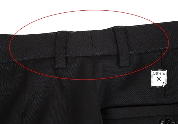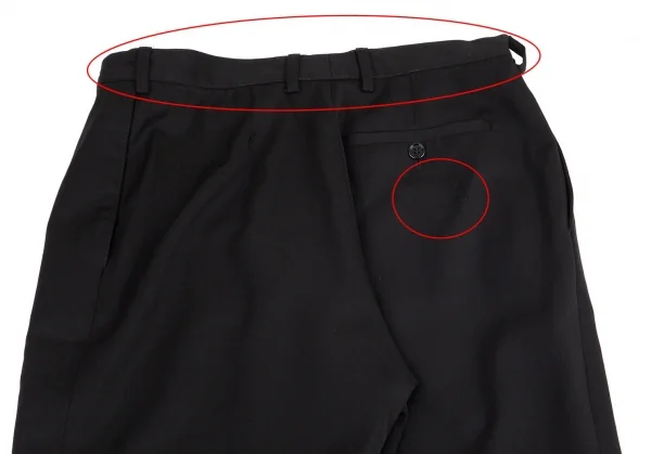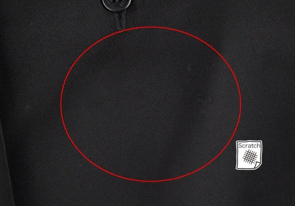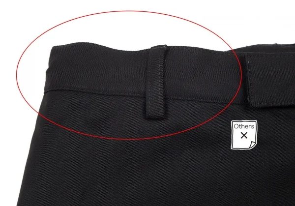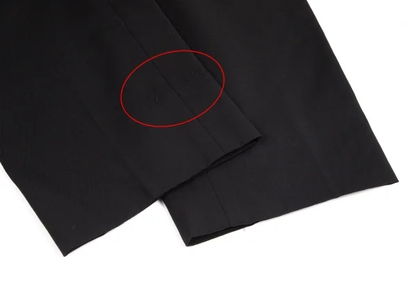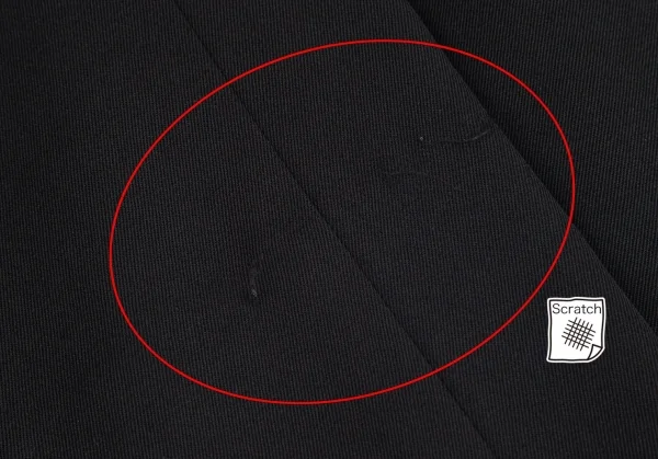 ウエスト周りにテカリ、右裾先に引っ掛け、ヒップスレがあります(画像参照)。その他目立ったシミ、汚れ、ほつれ等ありません。クリーニング済み